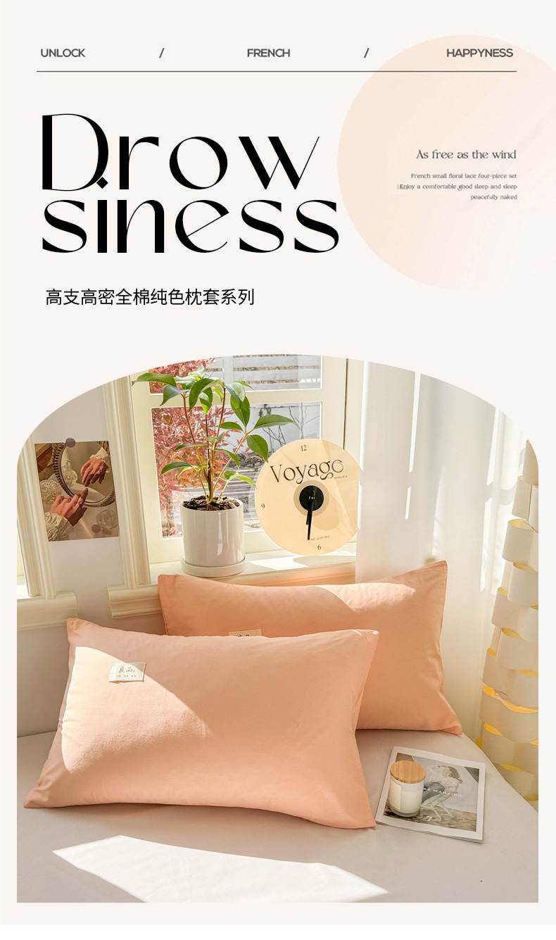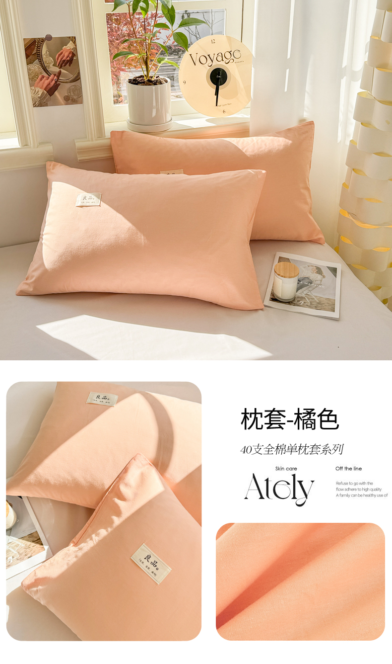 商品名称:眠博士 2025新款高支高密全棉纯色枕套系列 40支枕套-橘色