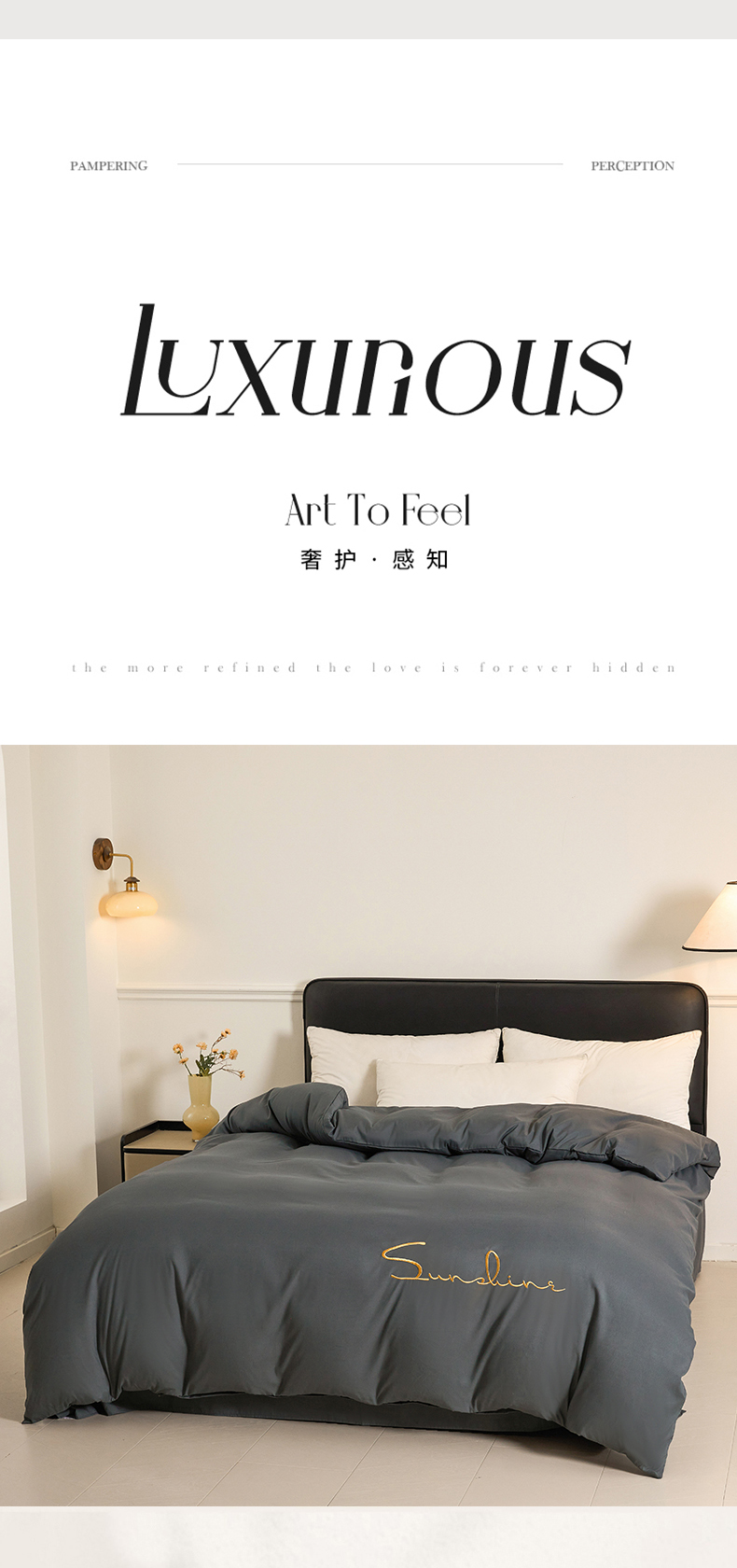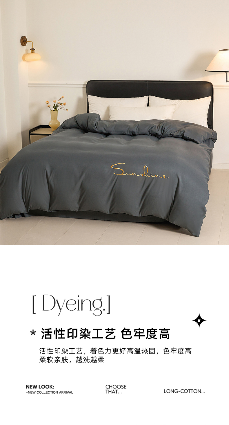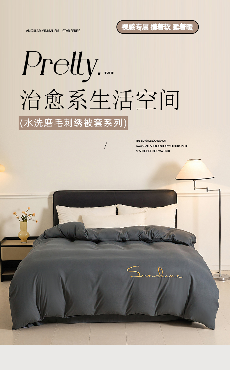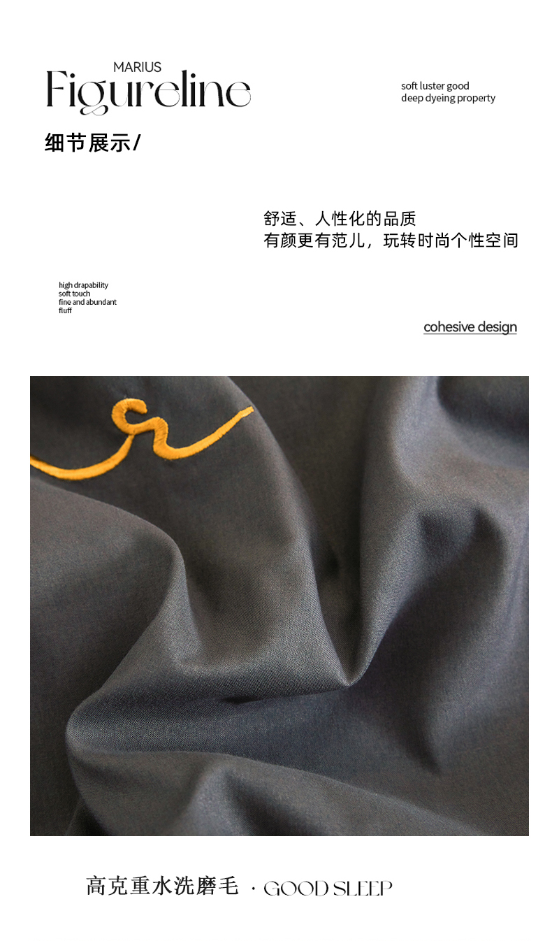 七仙女家纺 2025新款水洗磨毛刺绣轻奢简约系列单被套单品被套被套单件 深灰
