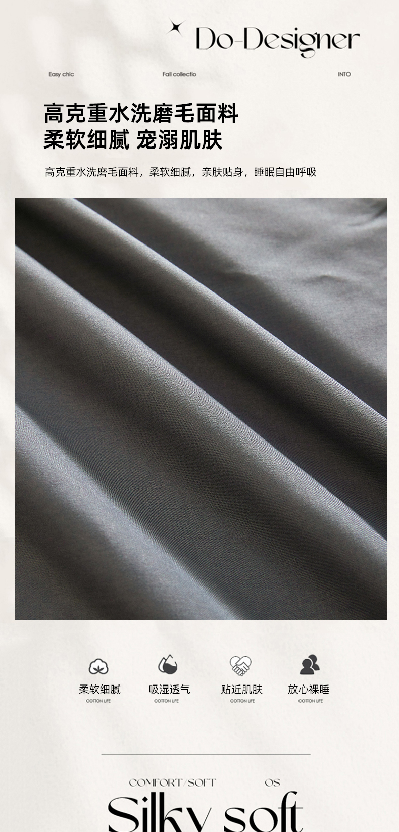 商品名称:七仙女家纺 2025新款水洗磨毛刺绣轻奢简约系列单被套单品被套被套单件 深灰