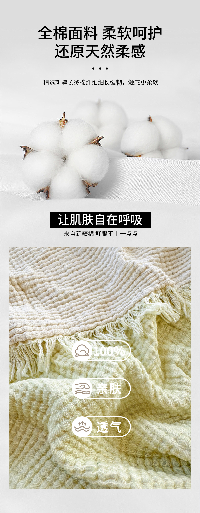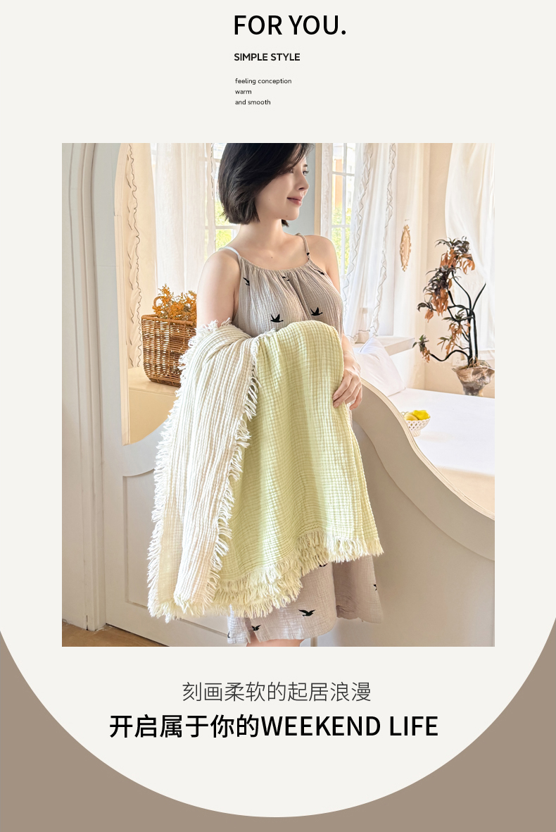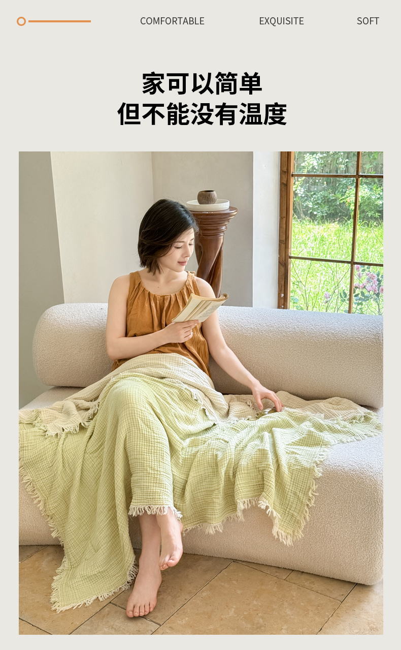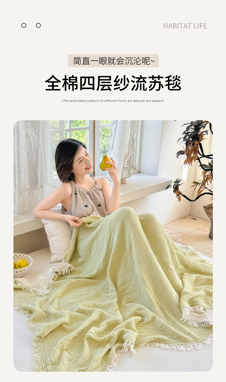 商品名称:丹本家纺 2025新款双层纱流苏全棉纯棉毯纯棉流苏款盖毯夏被夏凉被空调被 浅绿色