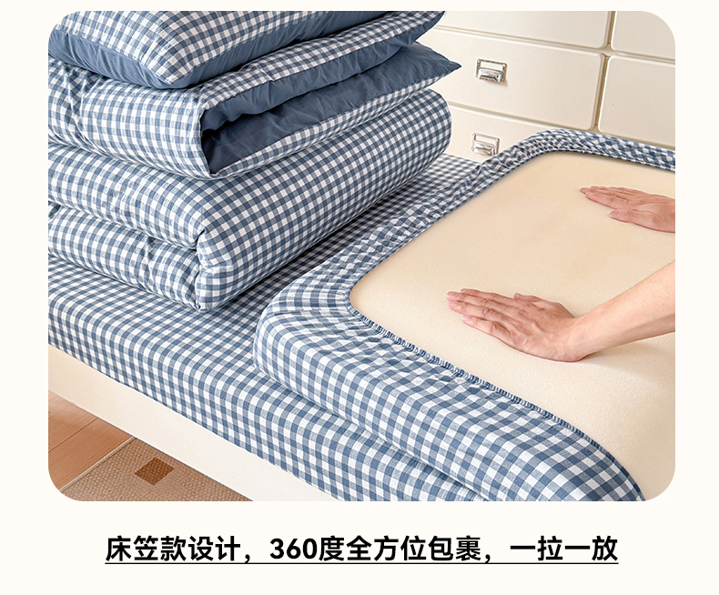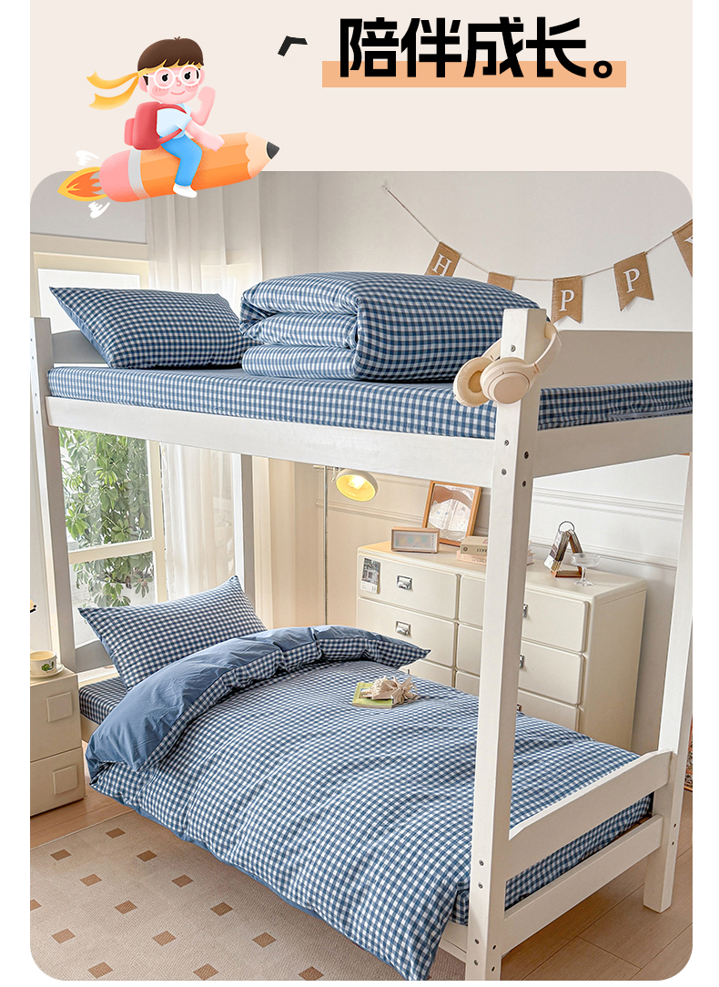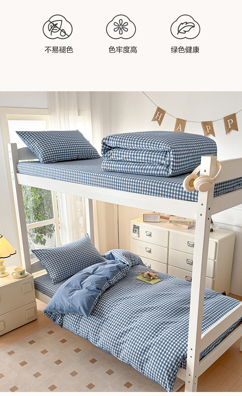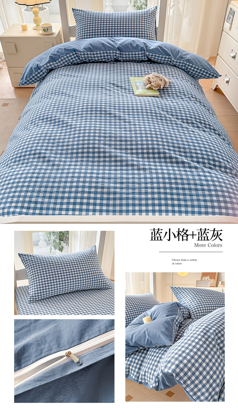 当前位置: 91家纺网 > 商品网购 > 床品套件 > 三件套 > 盛秋家纺 2025新款水洗棉格子学生小三套套件 蓝小格+蓝灰