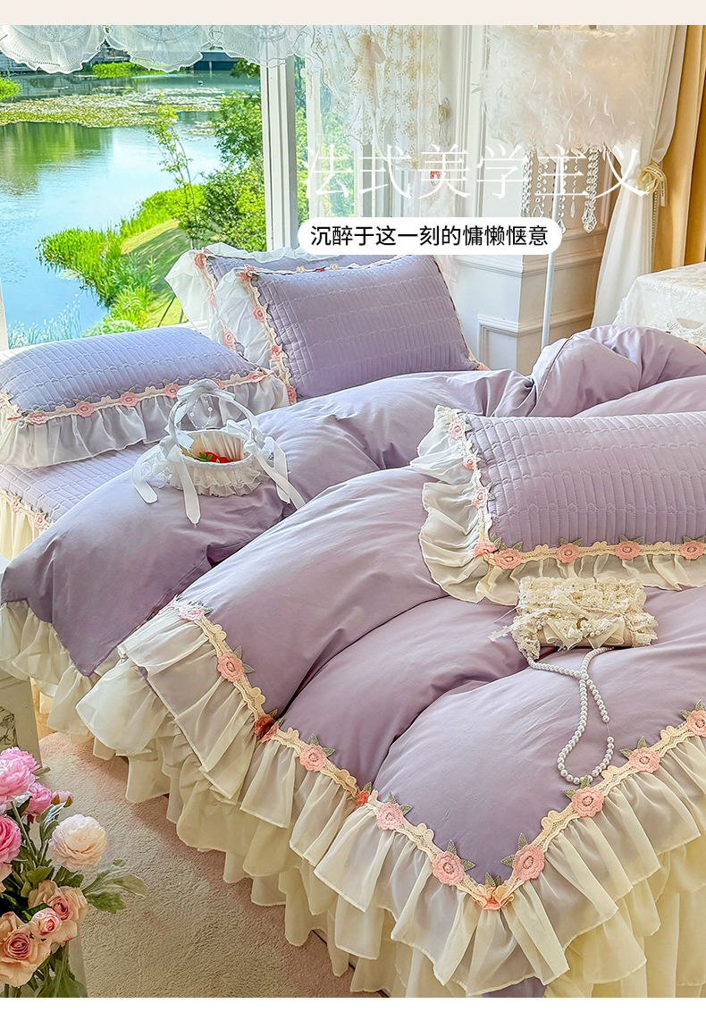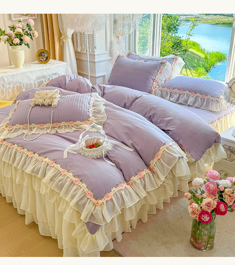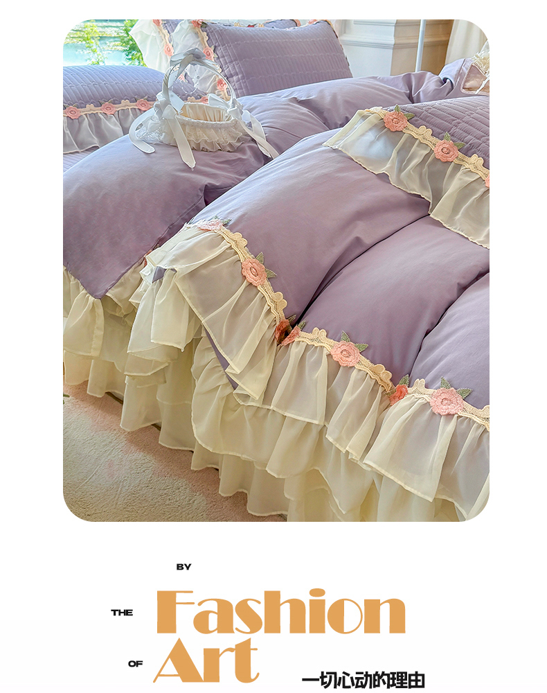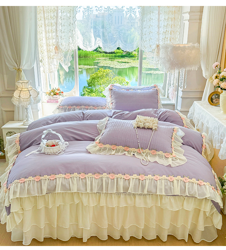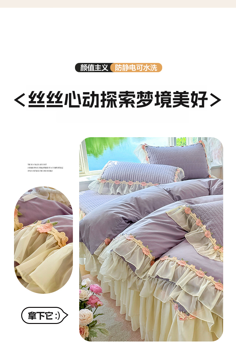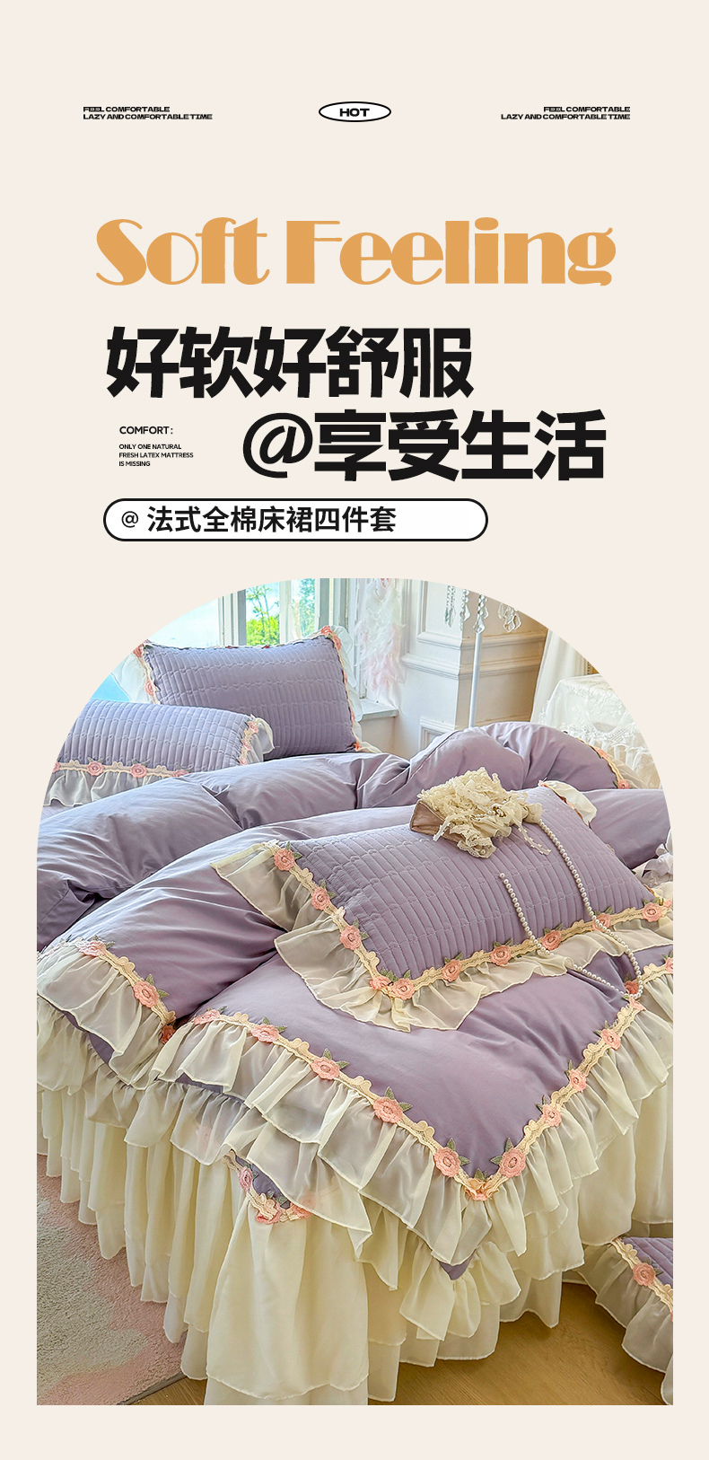 当前位置: 91家纺网 > 商品网购 > 床品套件 > 四件套 > 全棉普通四件套 > 虹星家纺 2025新款玫瑰花语全棉纯棉床裙款四件套 玫瑰花语-紫罗兰