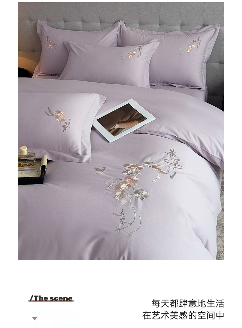 (总)曼秀琳家纺 2025新款50s双股长绒棉刺绣款四件套(静雅系列),静雅-海岸绿,静雅-岚紫,静雅-舒芙蕾,静雅-松柏绿,静雅-星空蓝,静雅-英伦灰