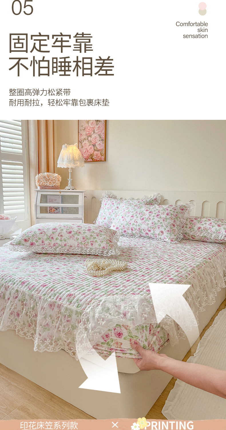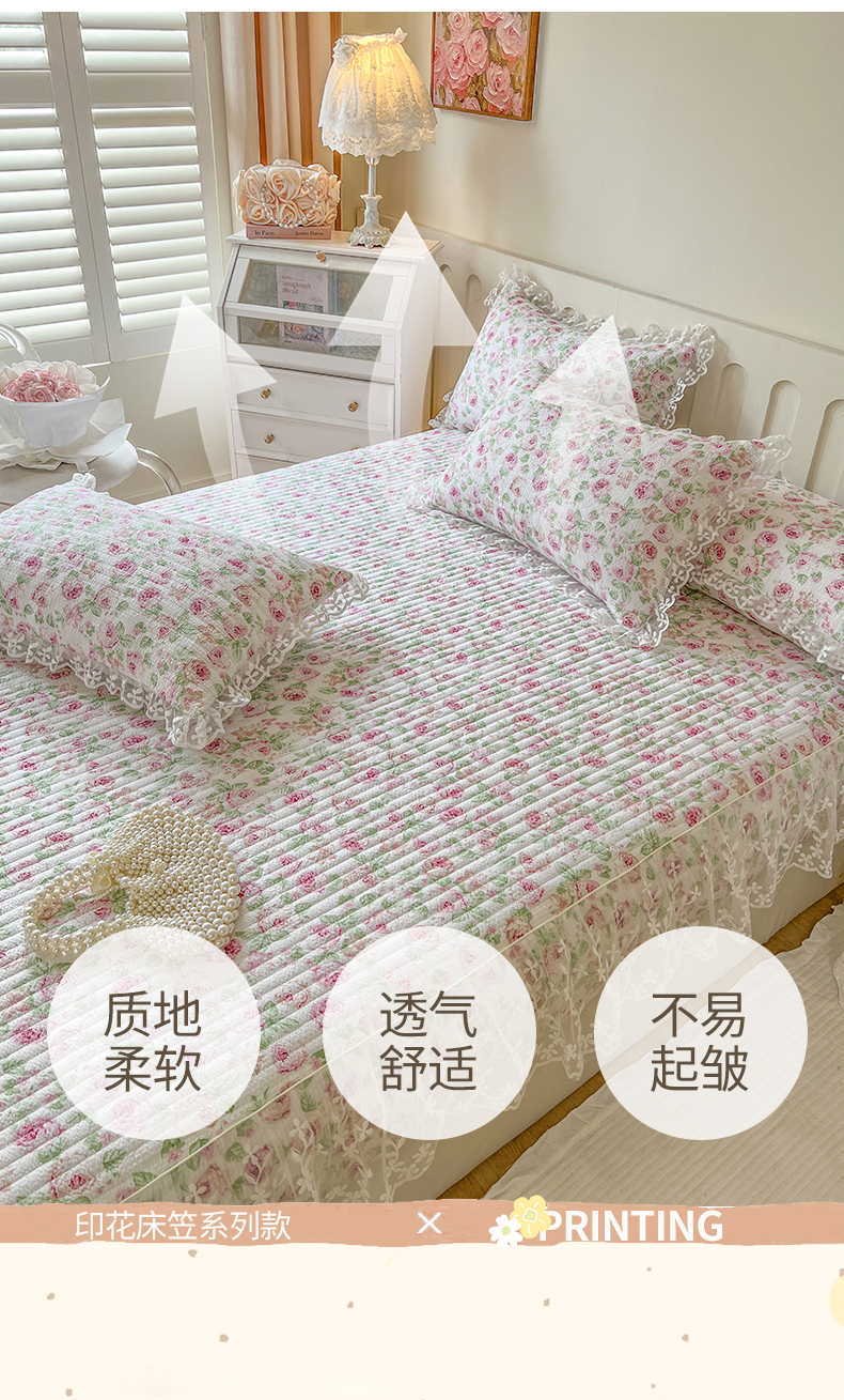 麒豆豆 2025新款泡泡棉印花床笠 悠悠花海