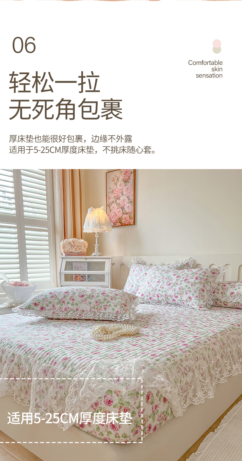 (总)麒豆豆 2025新款全棉蕾丝边床裙款床笠-晨暮花间,晨暮花间-绯红,晨暮花间-粉色,晨暮花间-麦绿,晨暮花间-米色,晨暮花间-浅紫,晨暮花间-雾蓝