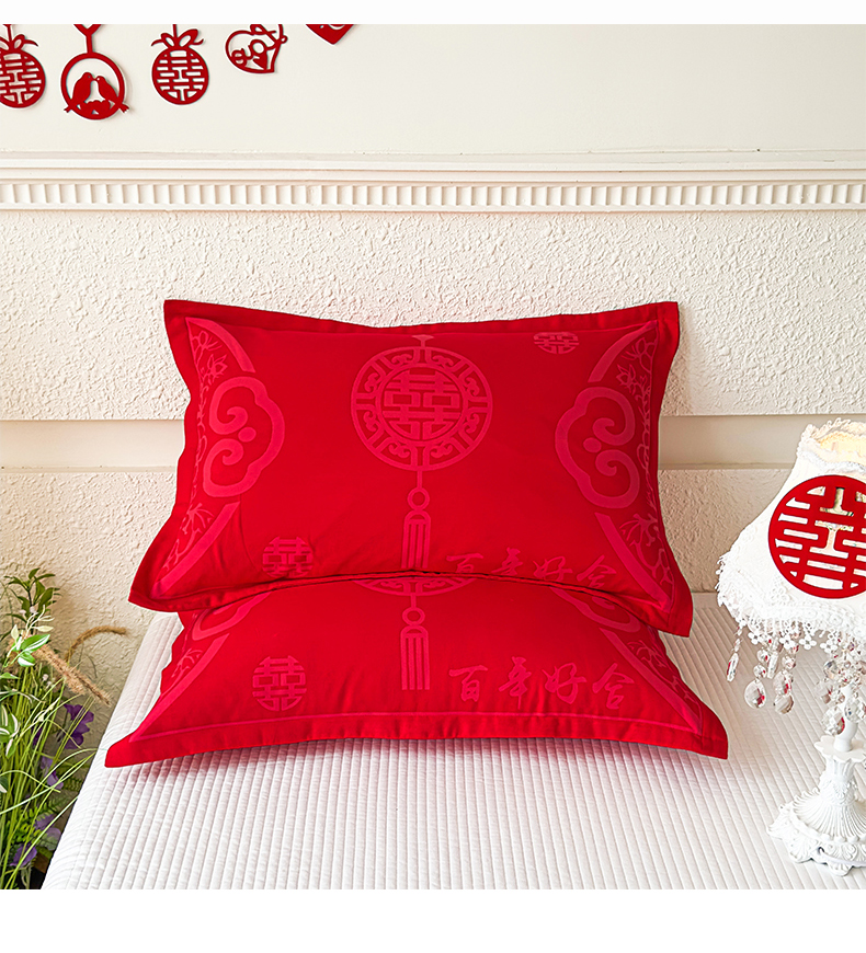 (总)悦然毛巾被 2025新款婚庆大红三层全棉纱布枕套