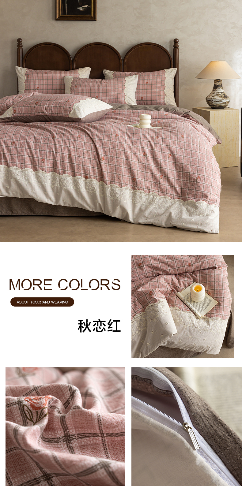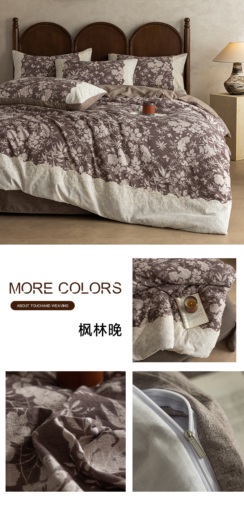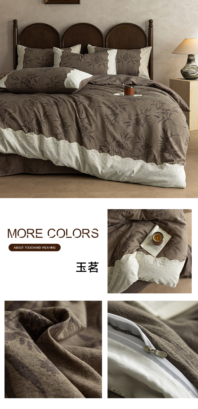 (总)迷尚家居 2025新款复古色织仿棉麻全棉花边四件套,迪奥咖-棉麻,风木槿咖-棉麻,枫林晚-棉麻,古奈绿-棉麻,锦瑟-棉麻,可颂灰-棉麻,俏颜-棉麻,秋恋红-棉麻,颂青时-棉麻,砚秋紫-棉麻,玉环-棉麻,玉茗-棉麻