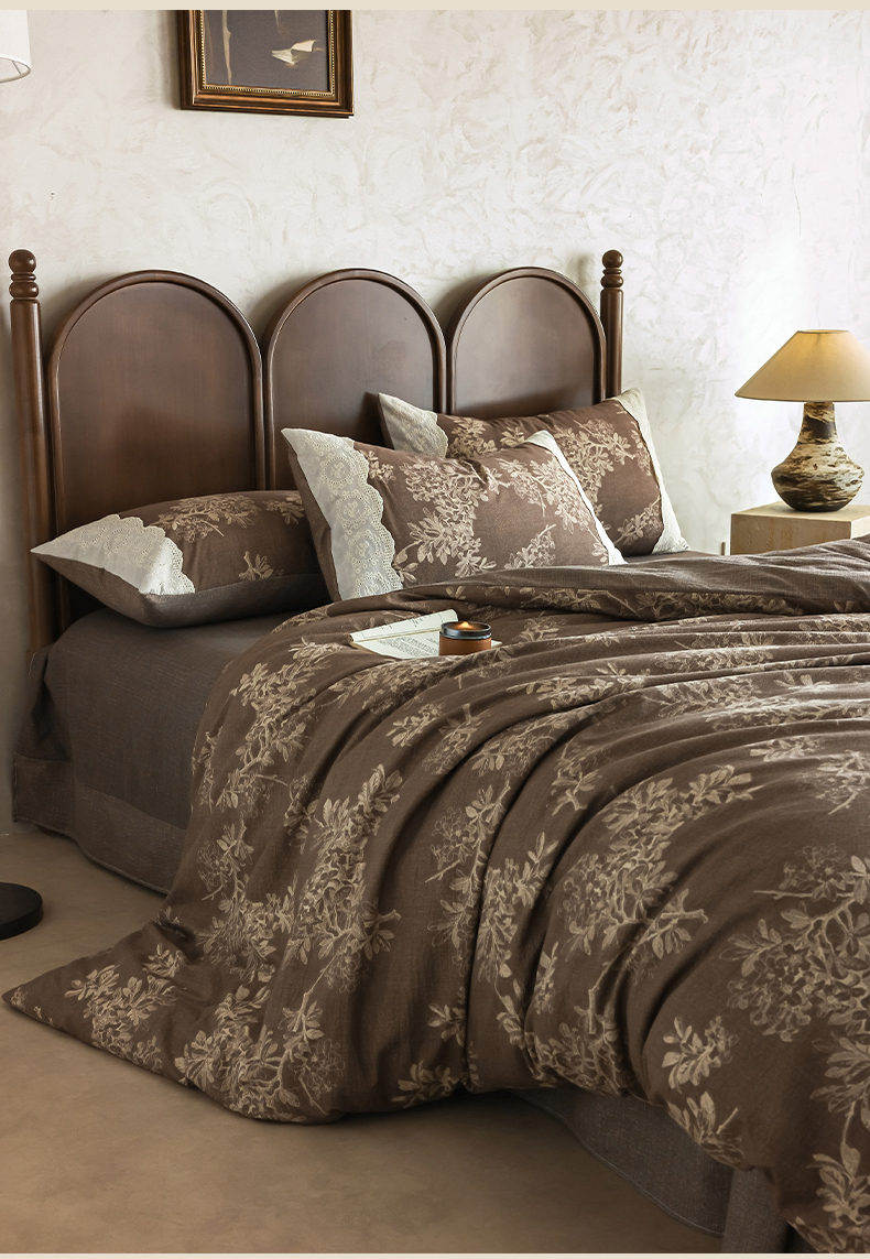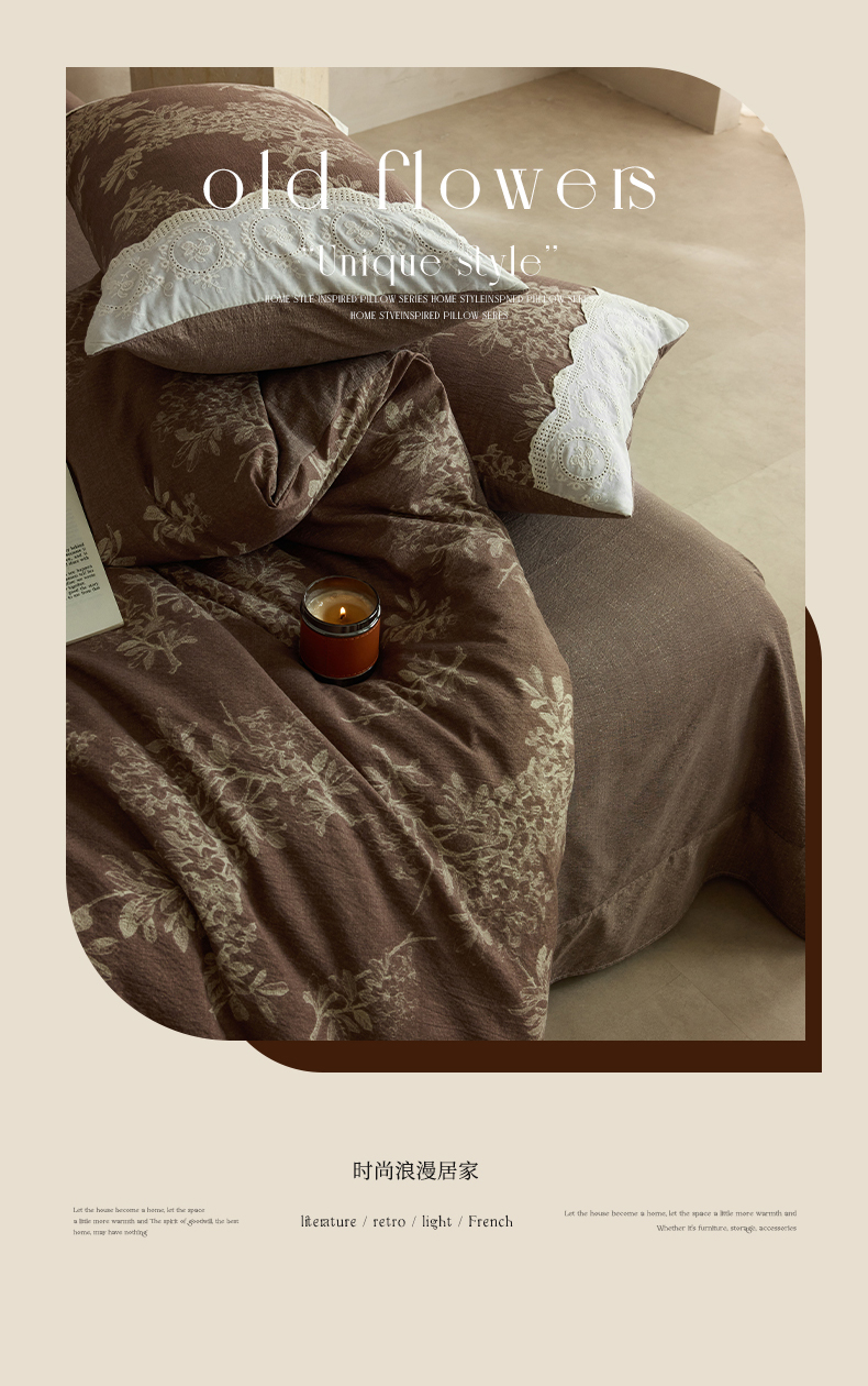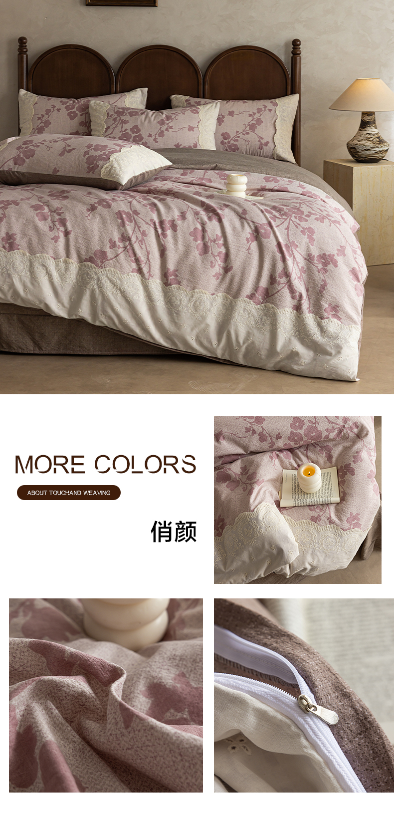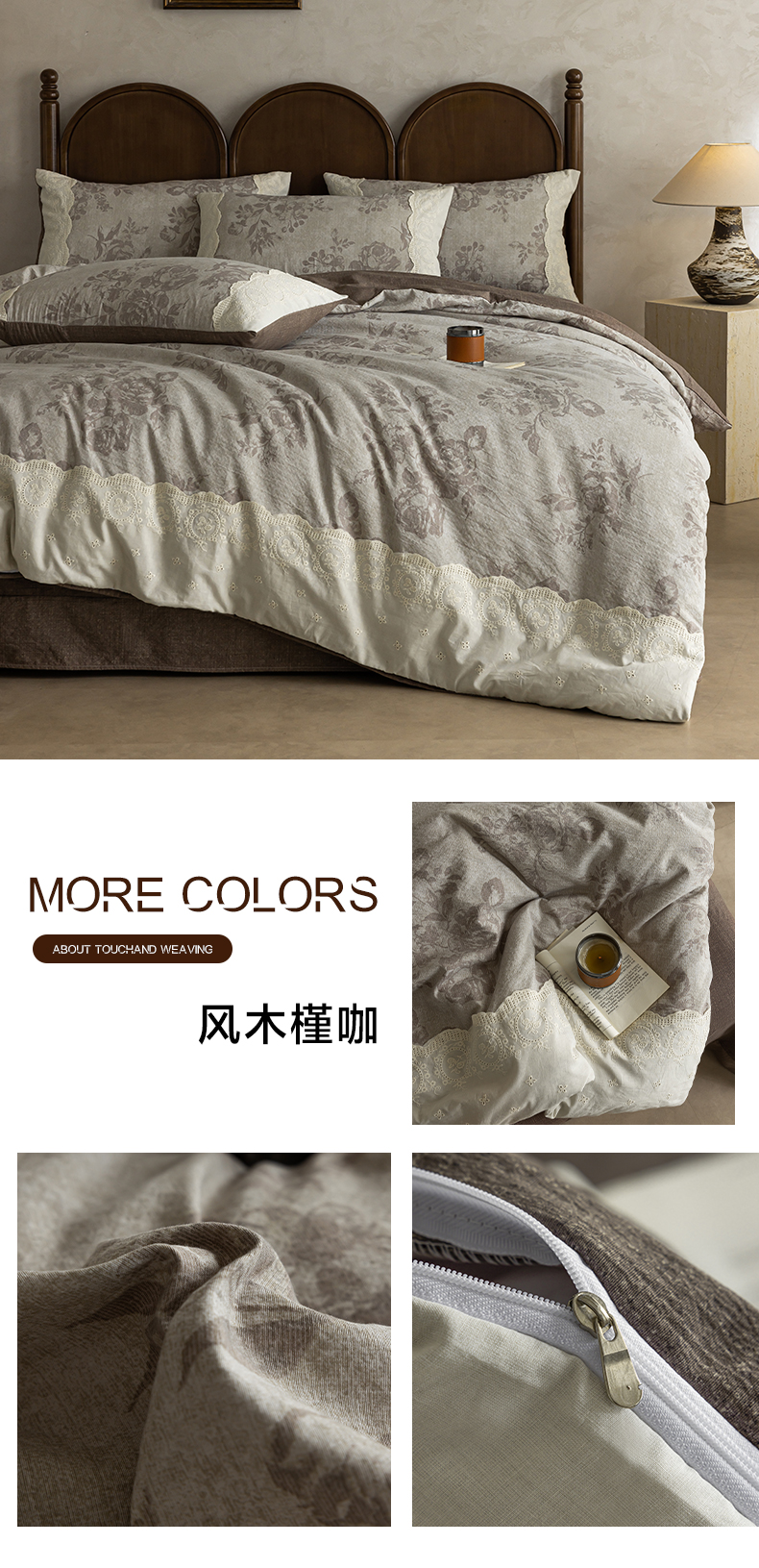 (总)迷尚家居 2025新款复古色织仿棉麻全棉花边四件套,迪奥咖-棉麻,风木槿咖-棉麻,枫林晚-棉麻,古奈绿-棉麻,锦瑟-棉麻,可颂灰-棉麻,俏颜-棉麻,秋恋红-棉麻,颂青时-棉麻,砚秋紫-棉麻,玉环-棉麻,玉茗-棉麻