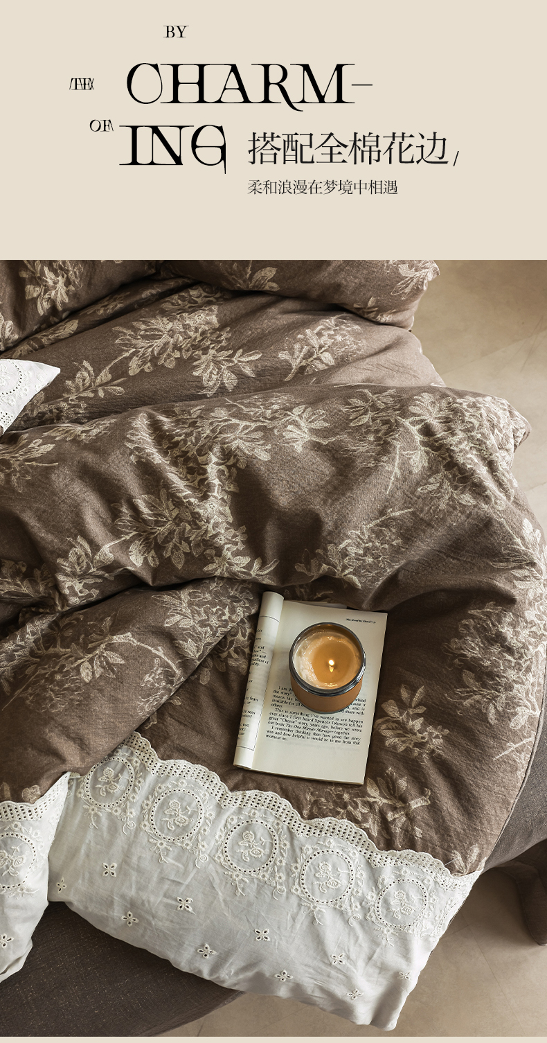 (总)迷尚家居 2025新款复古色织仿棉麻全棉花边四件套