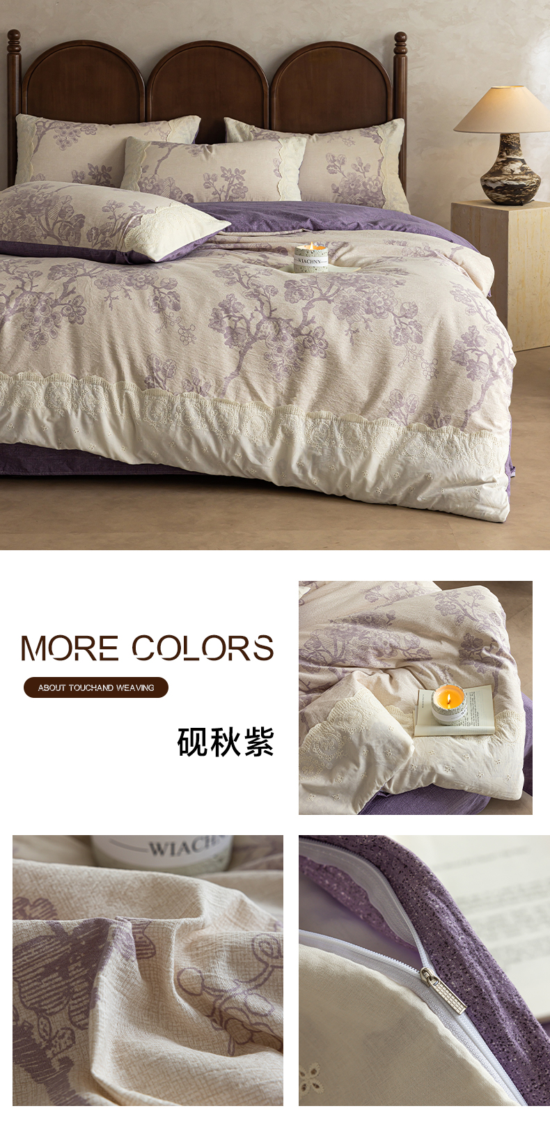 迷尚家居 2025新款复古色织仿棉麻全棉花边四件套 砚秋紫-棉麻
