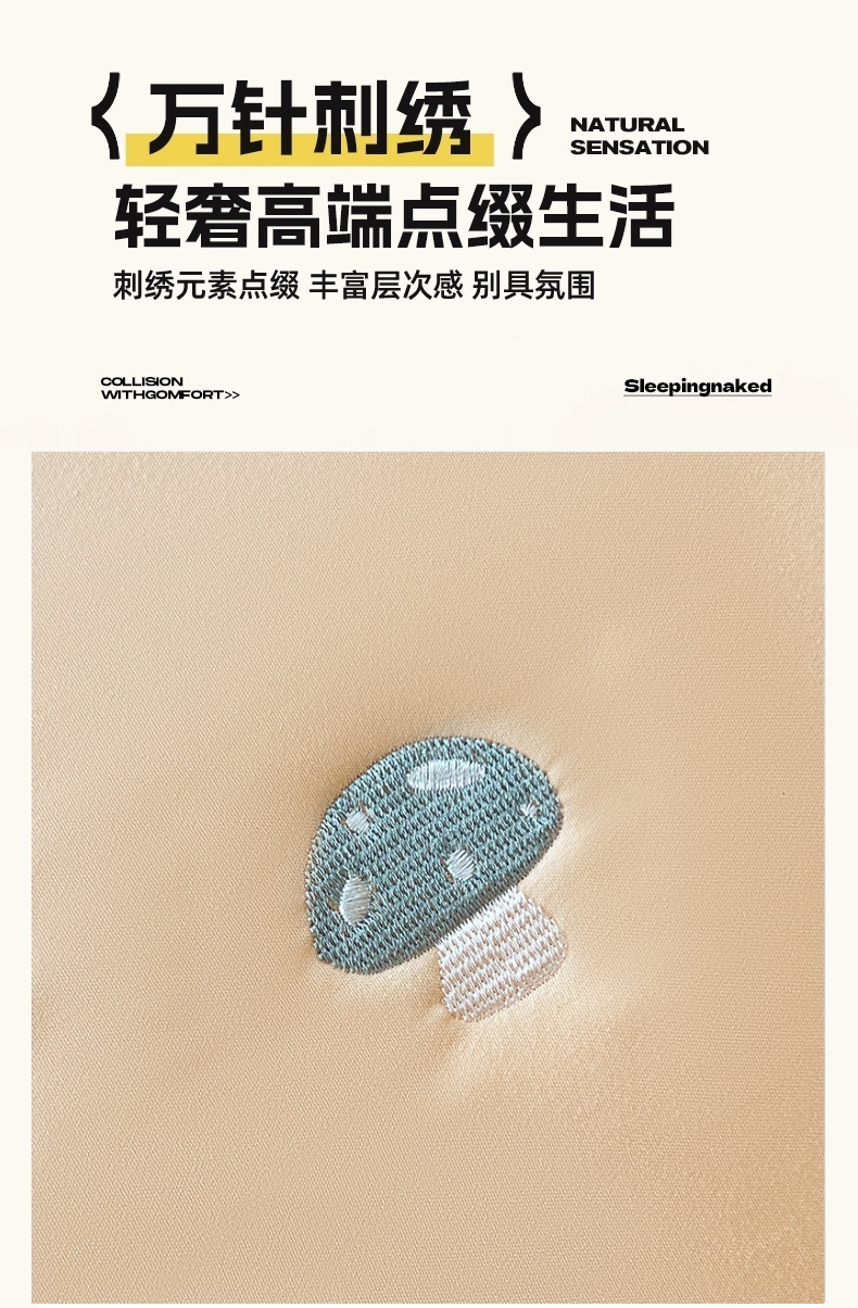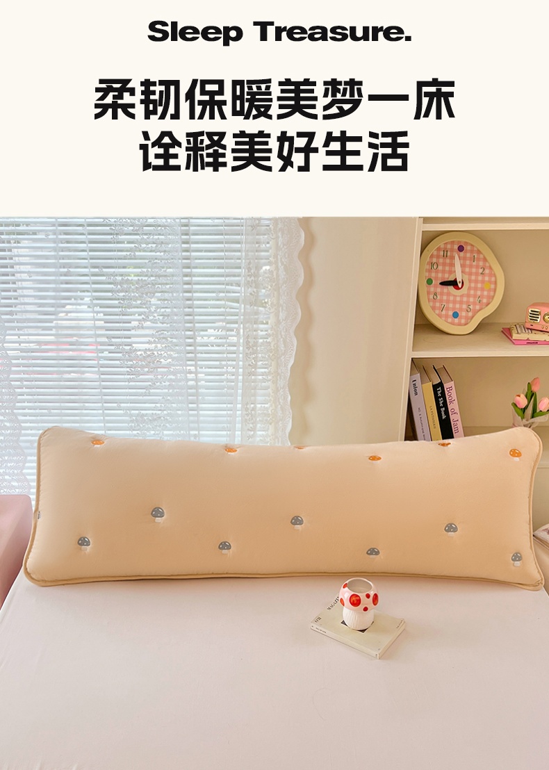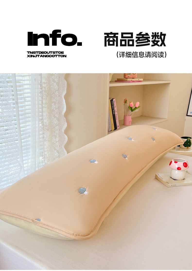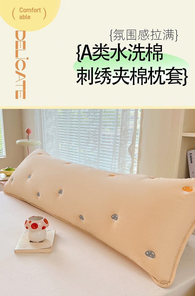 商品名称:梦舒羽 2025新款水洗棉刺绣双人夹棉枕套加厚学生情侣1.5m枕头套1.8米枕芯套 蘑菇屋-奶茶咖