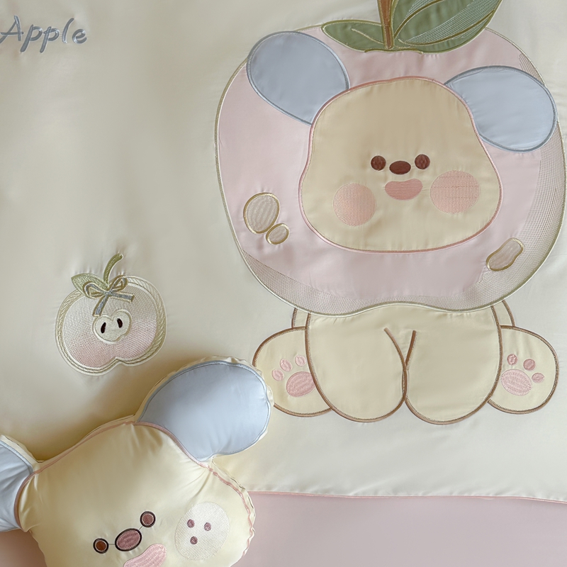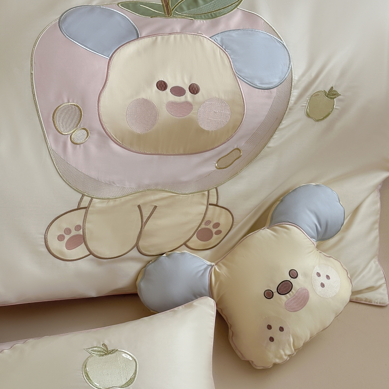 (总)紫桐2025新款长绒棉贴布绣四件套,黄油小熊 海盐蓝,黄油小熊 奶油黄,黄油小熊 芝芝粉