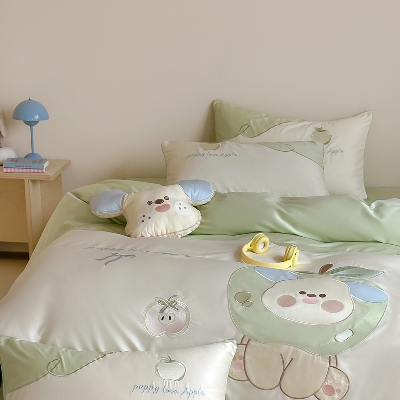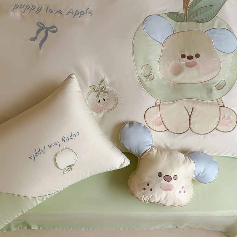 (总)紫桐 Lila lndus2025新款绣花款四件套-苹果狗