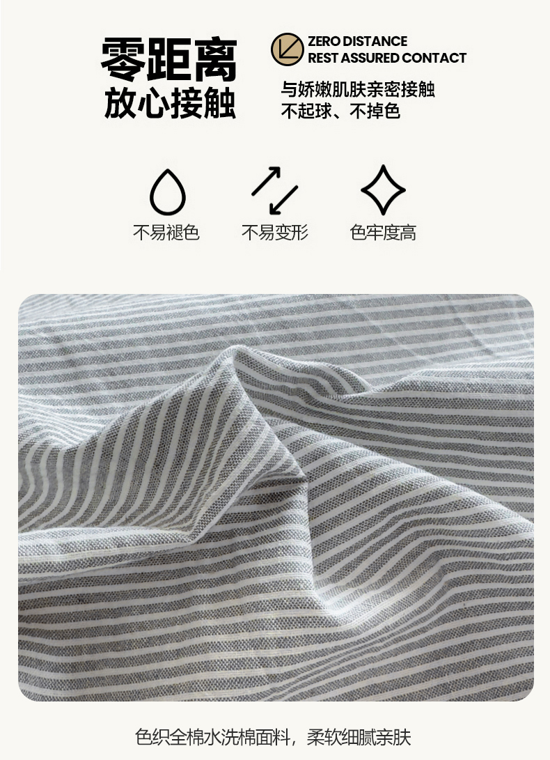 当前位置: 91家纺网 > 商品网购 > 床品套件 > 四件套 > 水洗棉四件套 > 晚依家纺 2025新款A类全棉色织水洗棉四件套纯棉格子纯色被套学生宿舍三件套定制定做 密条-浅灰