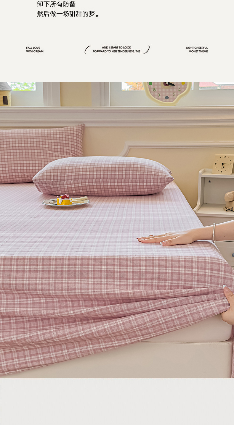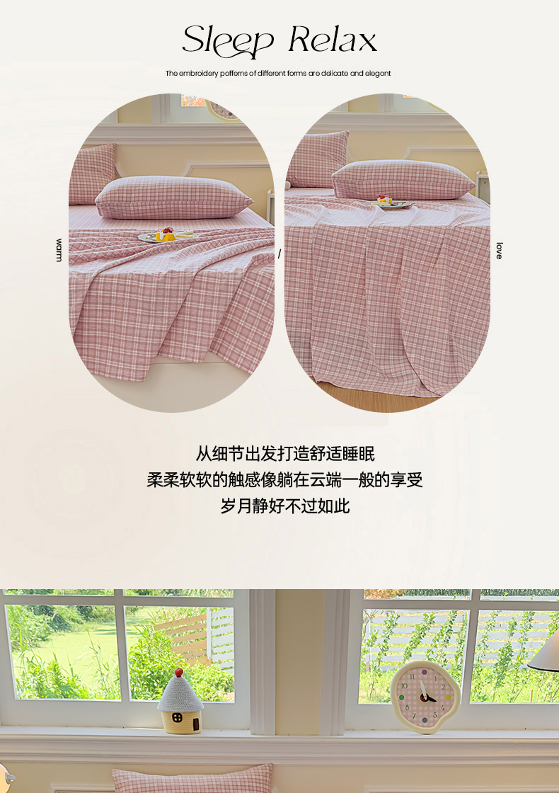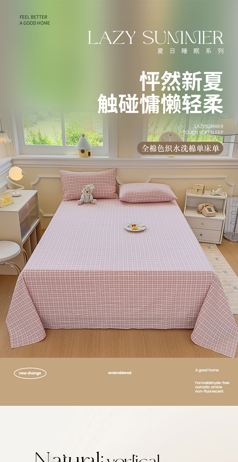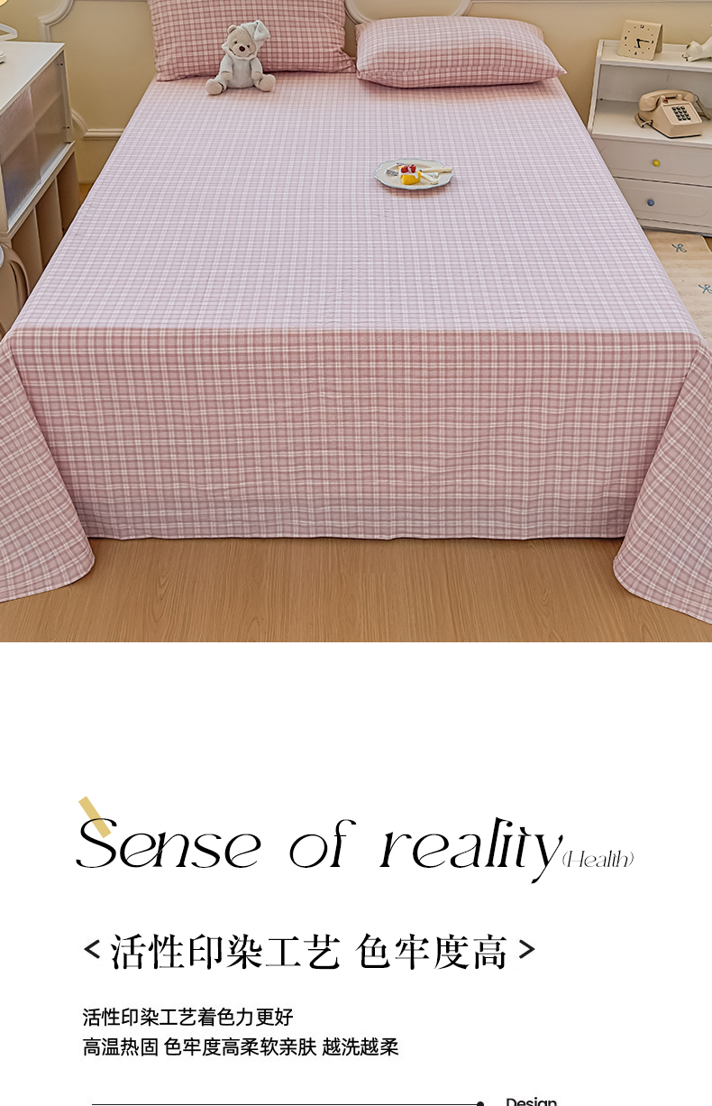 商品名称:菡宝 2025新款全棉纯棉色织水洗棉单床单 粉格调