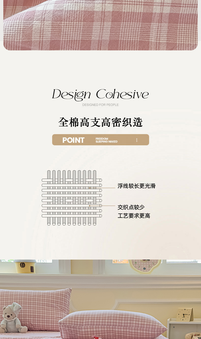 (总)菡宝 2025新款全棉纯棉色织小提花四件套支持定制定做尺寸,暴力熊卡其,暴力熊绿,大方块灰,大方块紫,千鸟格白,千鸟格灰,千鸟格绿,四叶草卡其