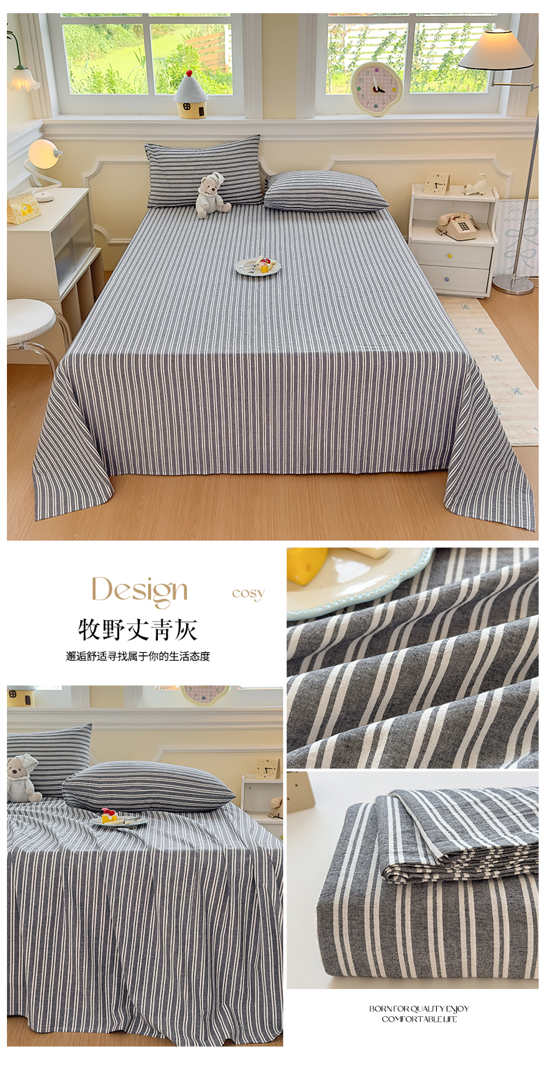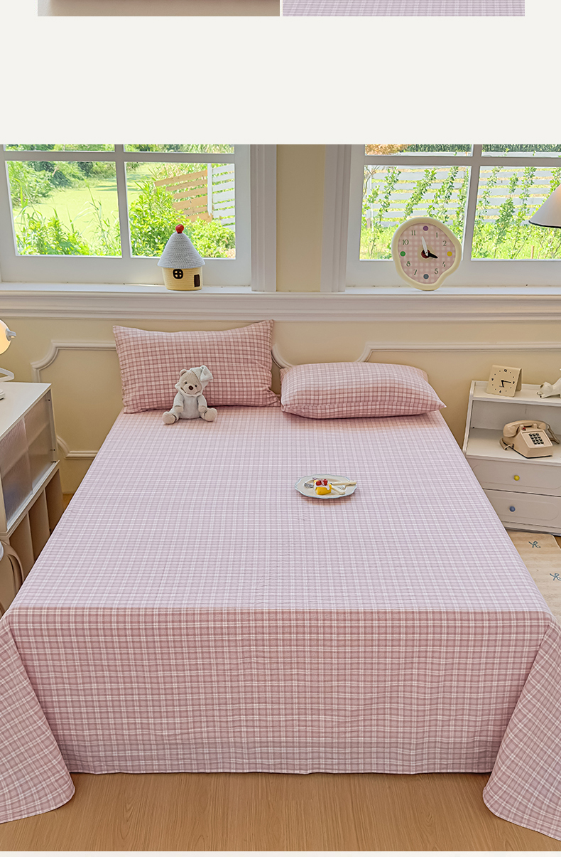 菡宝 2025新款全棉纯棉色织水洗棉单床单 粉格调