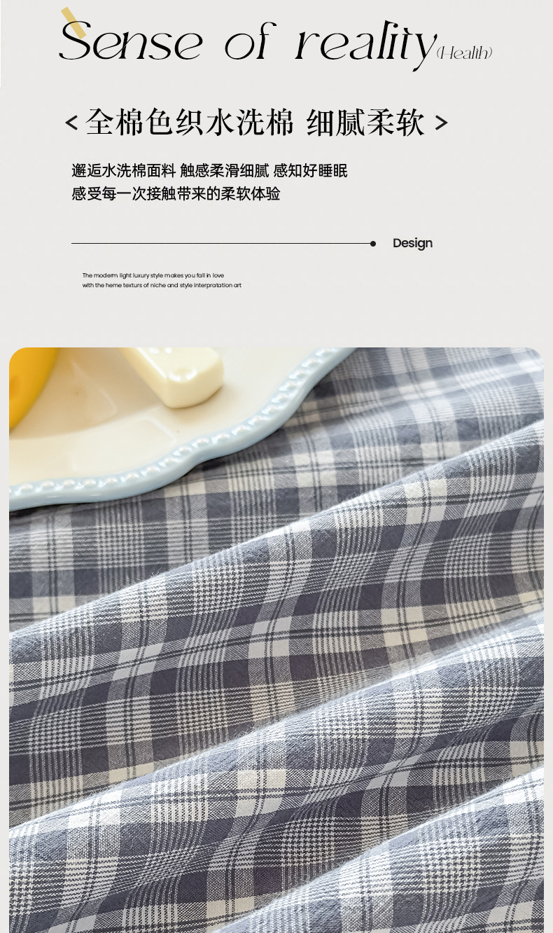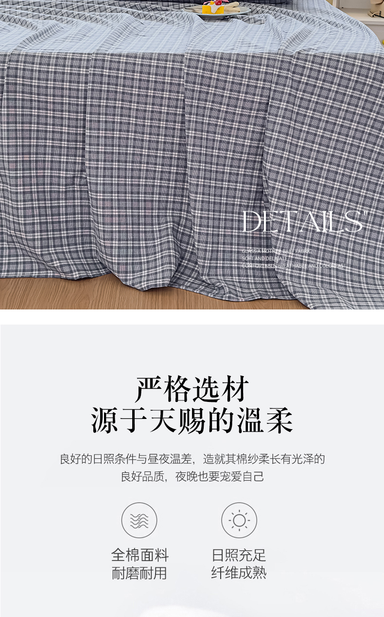 商品名称:菡宝 2025新款全棉纯棉色织水洗棉单床单 蓝格调