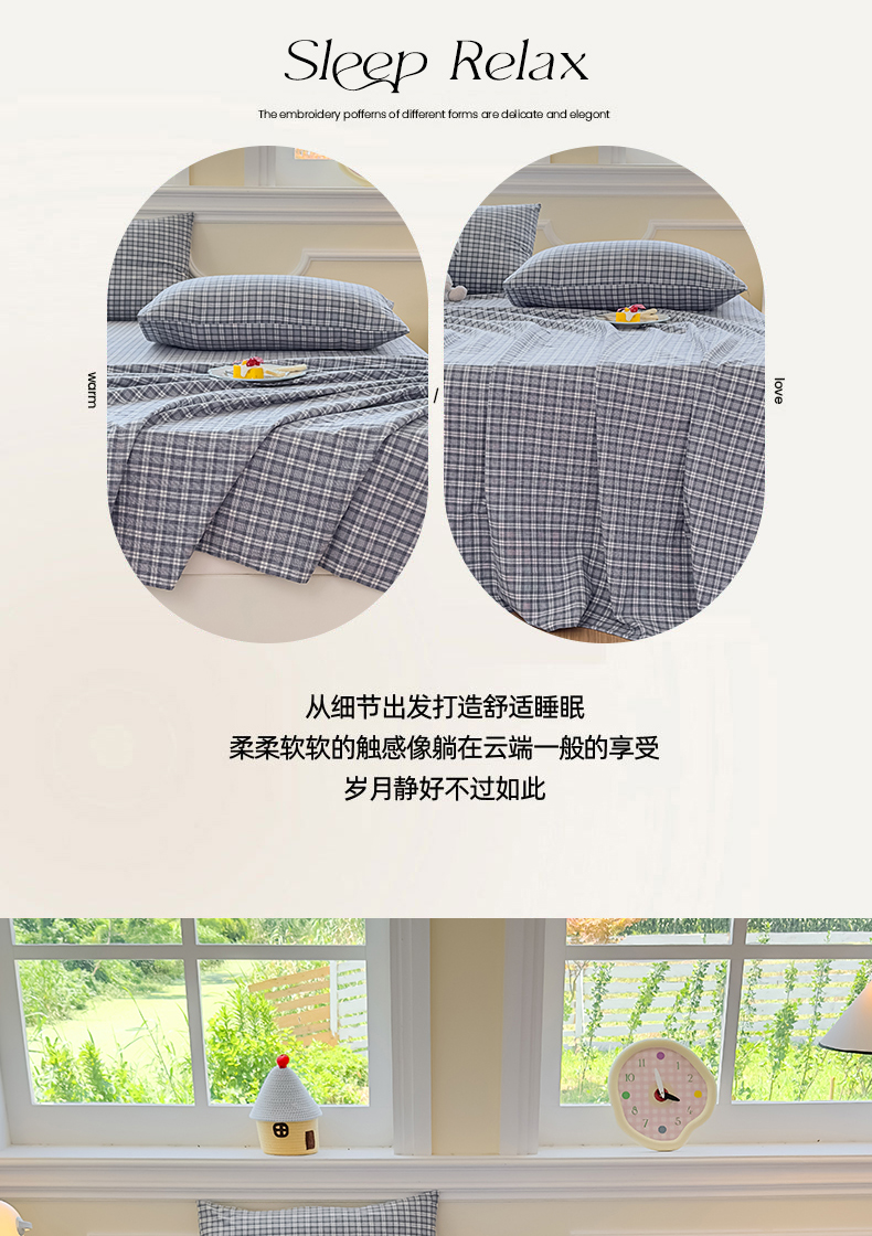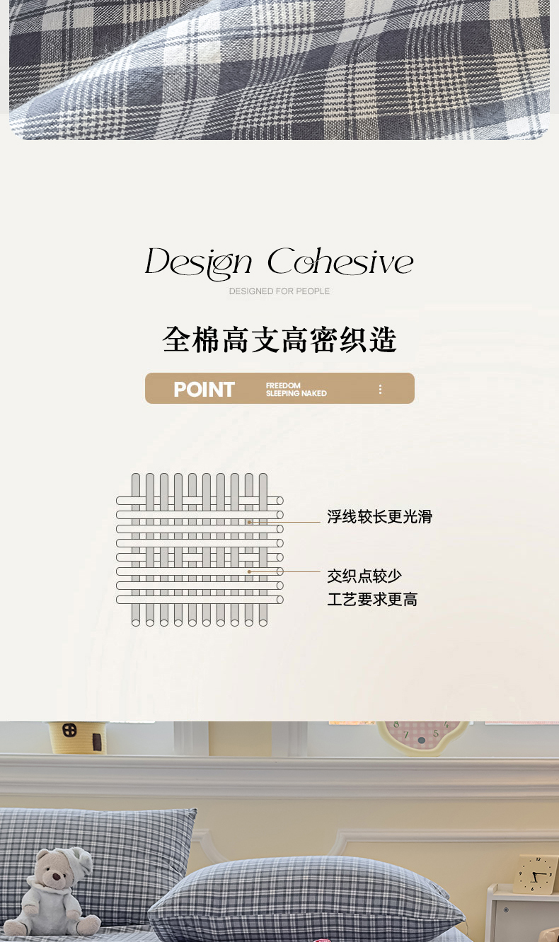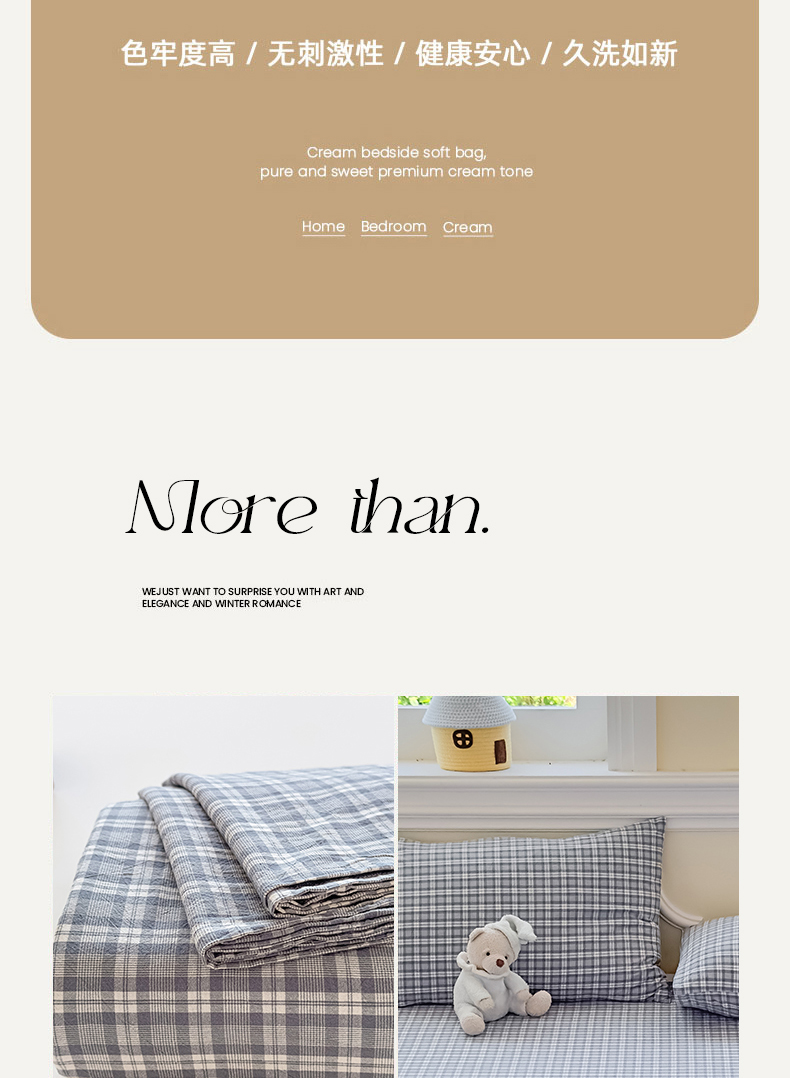 (总)菡宝 2025新款全棉纯棉色织小提花四件套支持定制定做尺寸,暴力熊卡其,暴力熊绿,大方块灰,大方块紫,千鸟格白,千鸟格灰,千鸟格绿,四叶草卡其