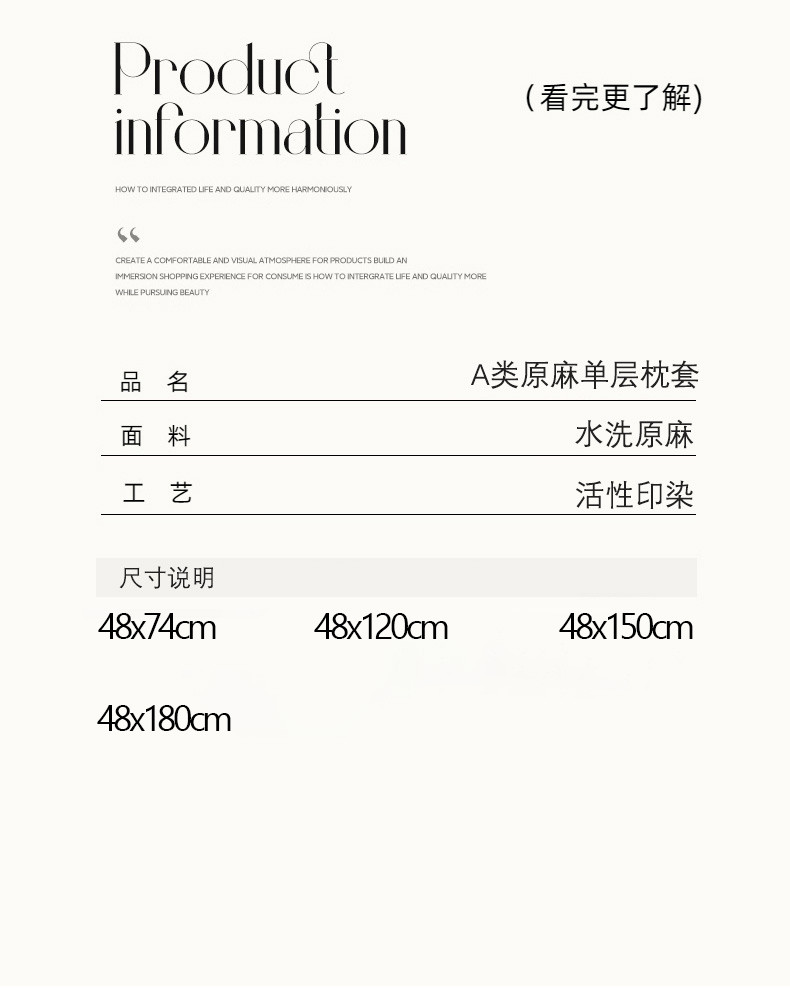 48x180cm【A类原麻单层枕套】/只