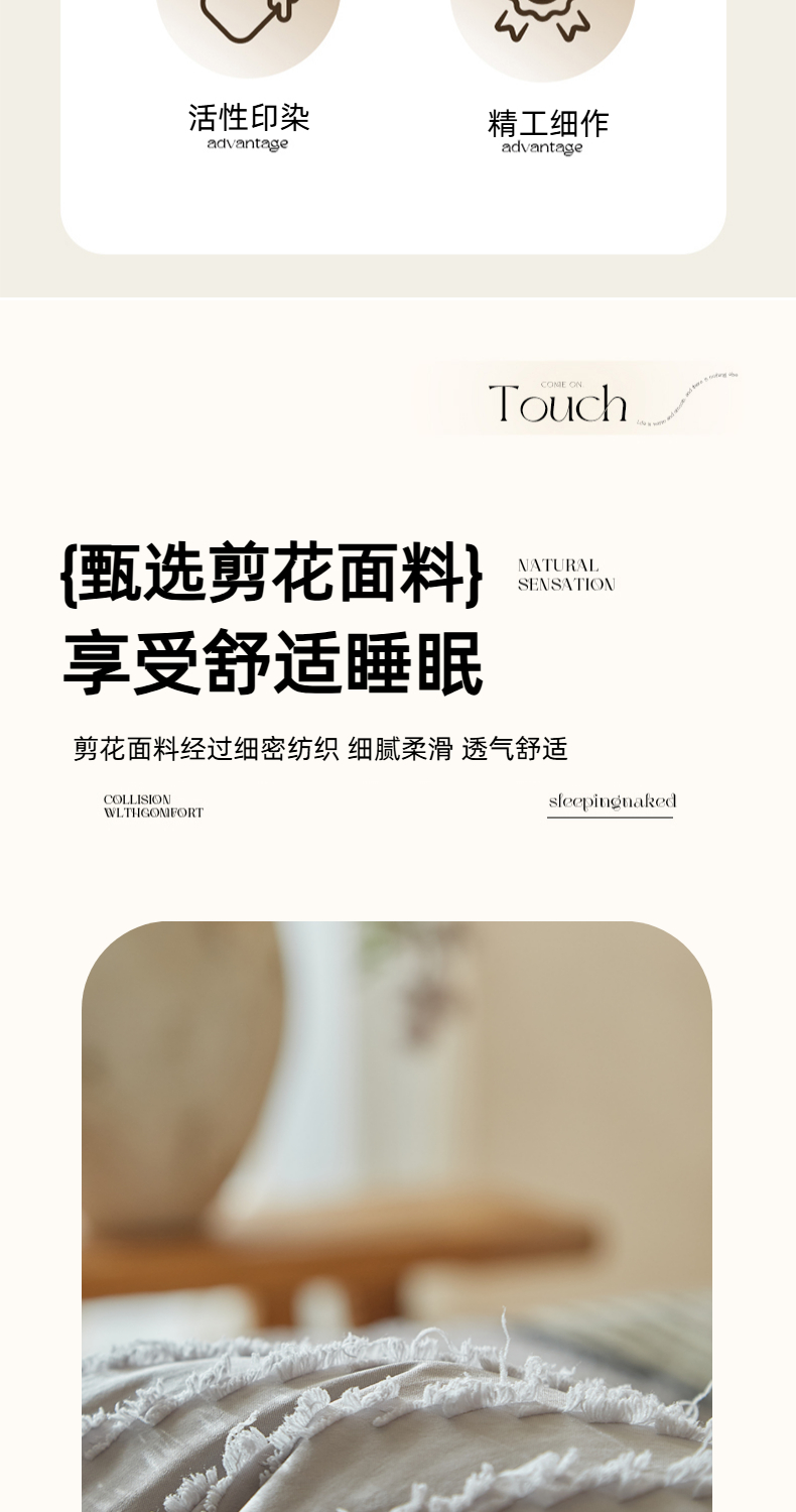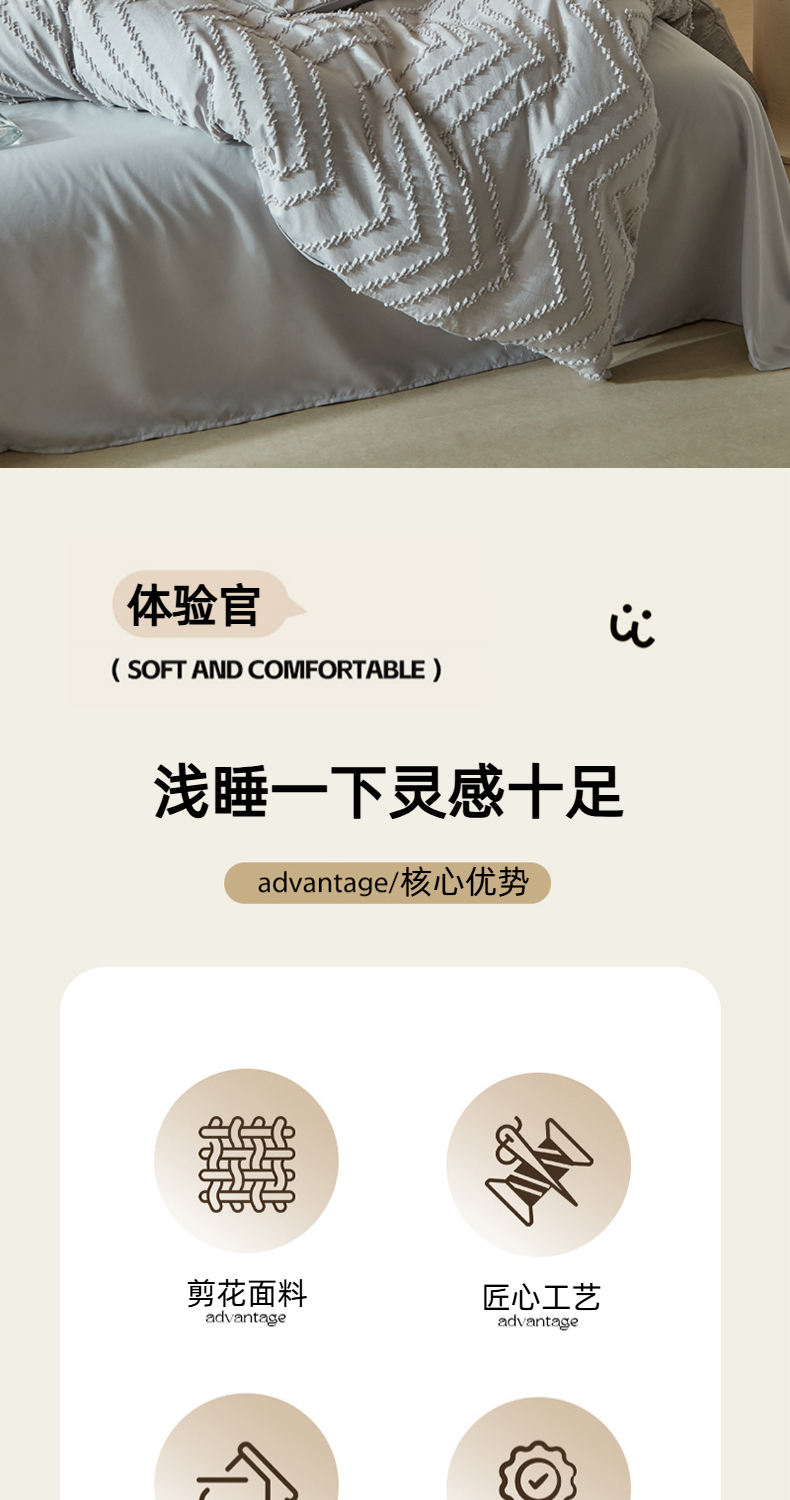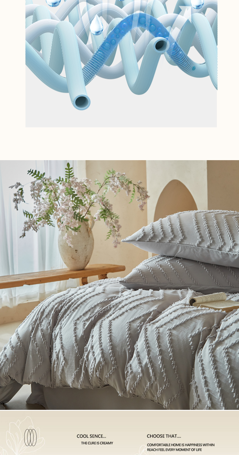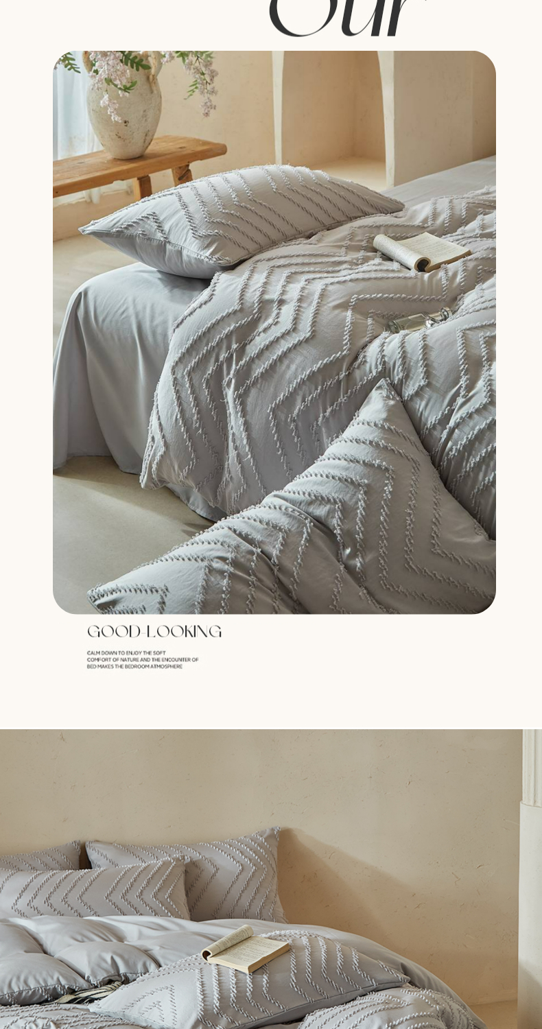 当前位置: 91家纺网 > 商品网购 > 床品套件 > 四件套 > 其它四件套 > 缘生活 2025新款立体剪花A面剪花面料B面加厚磨毛布料四件套 剪花波浪-浅灰