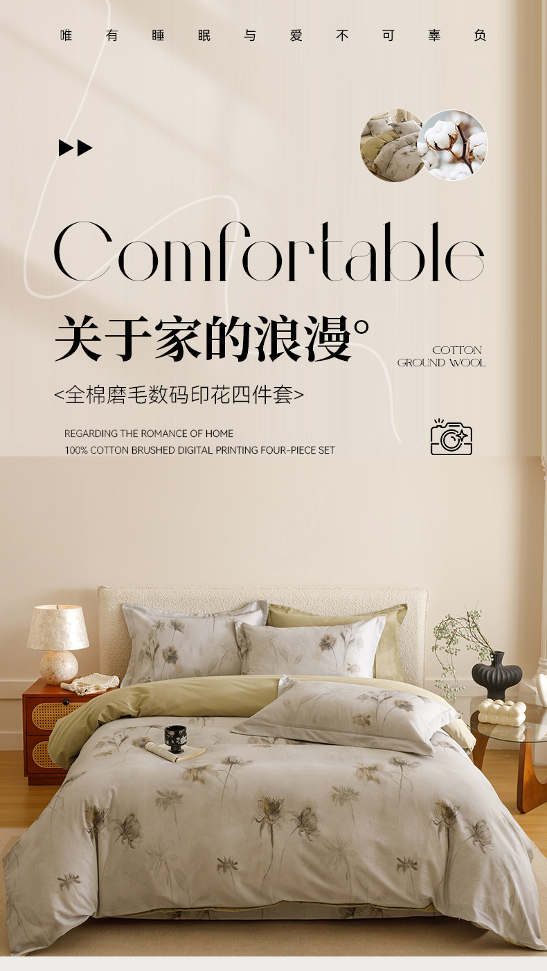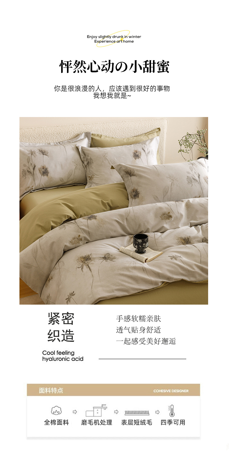 当前位置: 91家纺网 > 商品网购 > 床品套件 > 四件套 > 全棉普通四件套 > 爱思佳 2025新款加厚全棉纯棉磨毛数码印花四件套 喜秋集