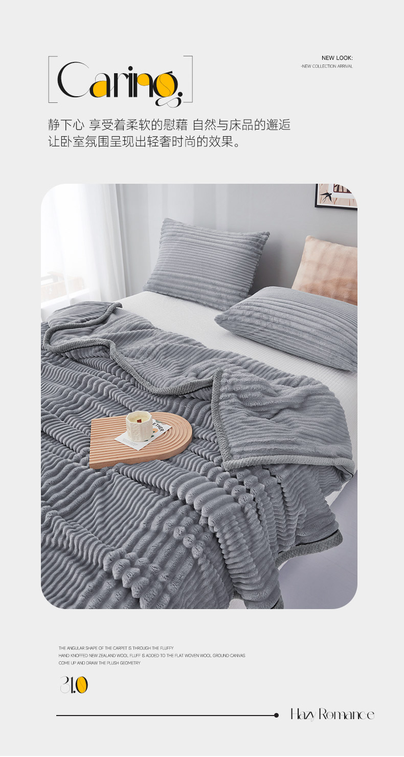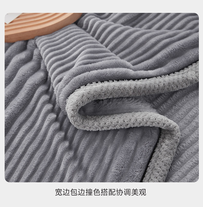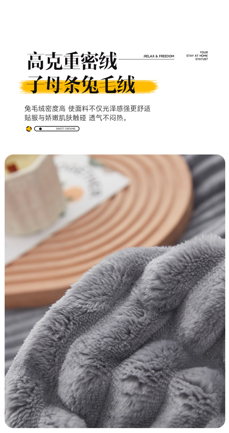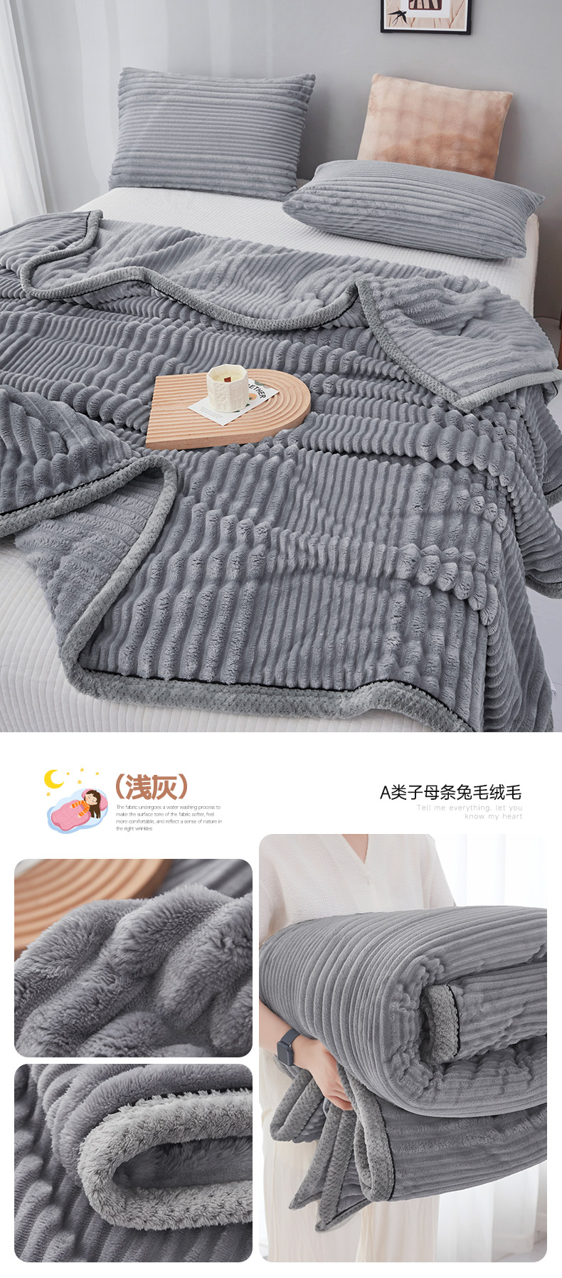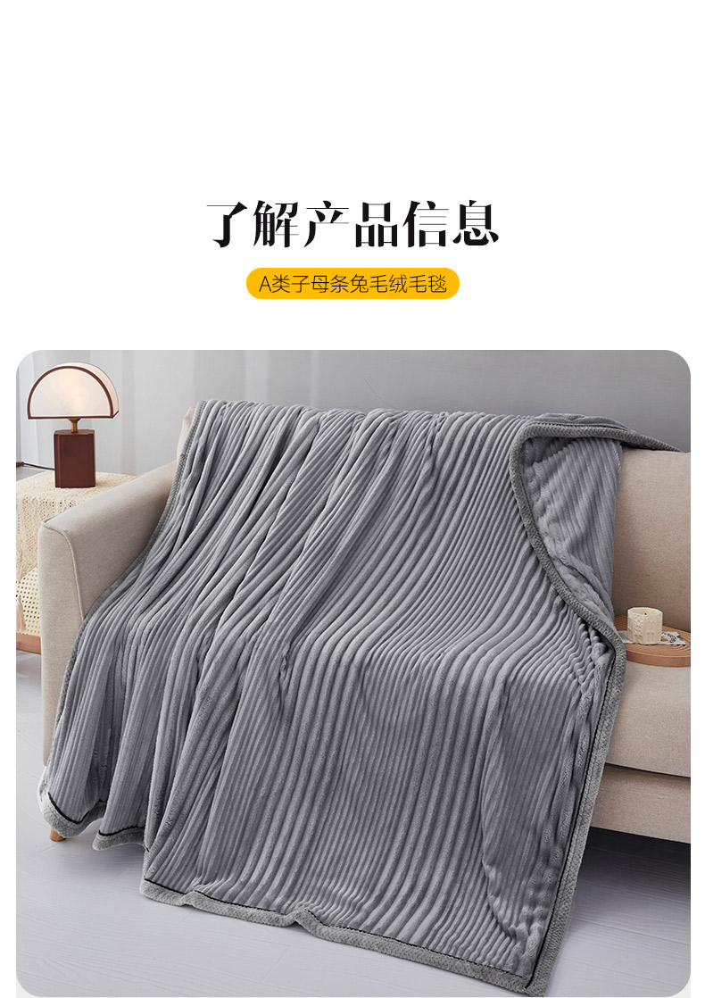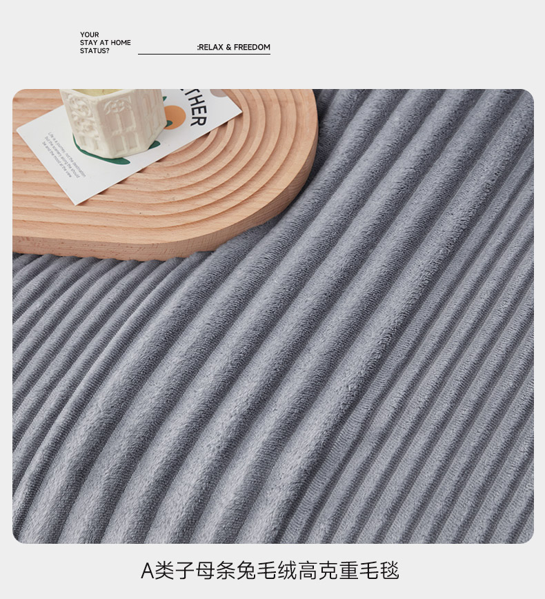 商品名称:肖恩毯业2025新款子母条兔毛绒毛毯盖毯休闲毯绒毯毯子跨境专供可打卷外贸出口可定制尺寸 子母-浅灰