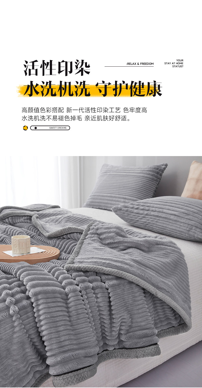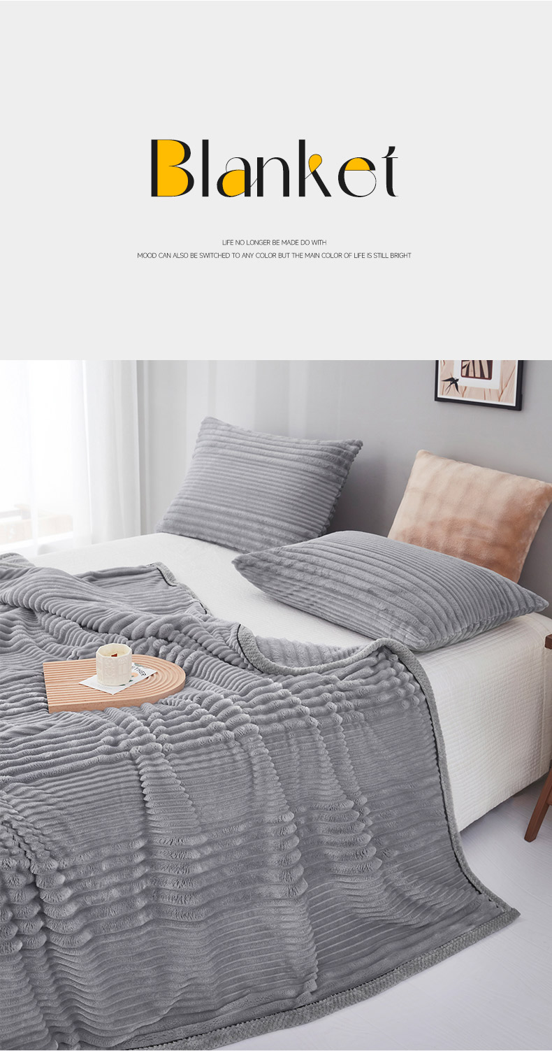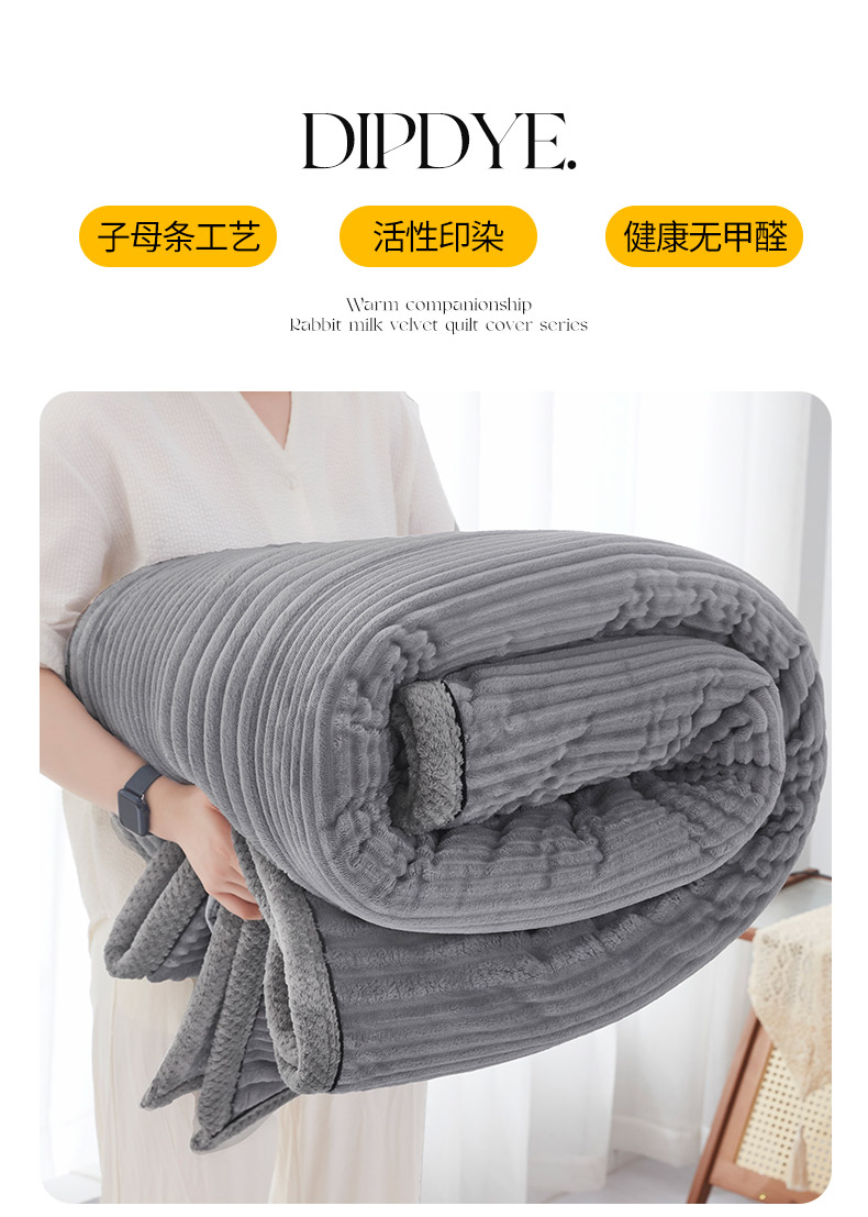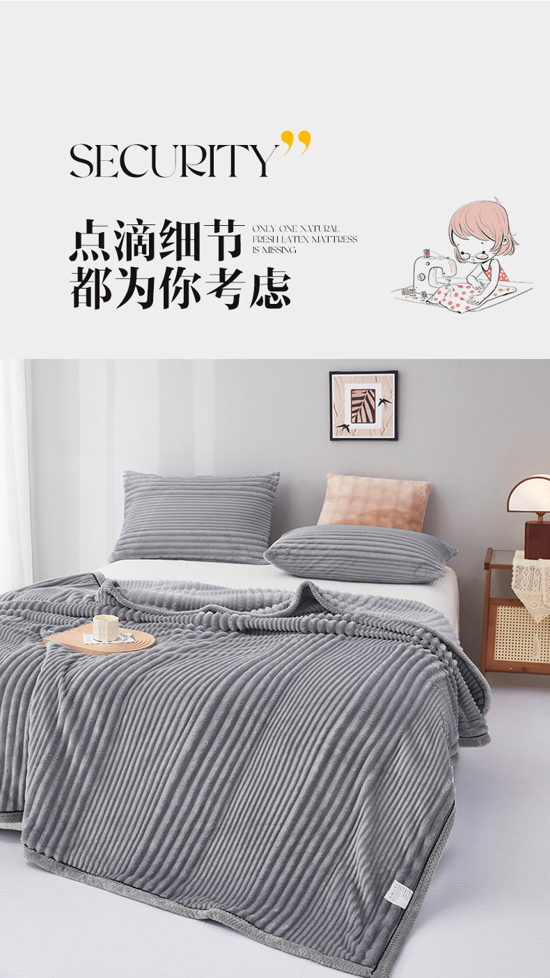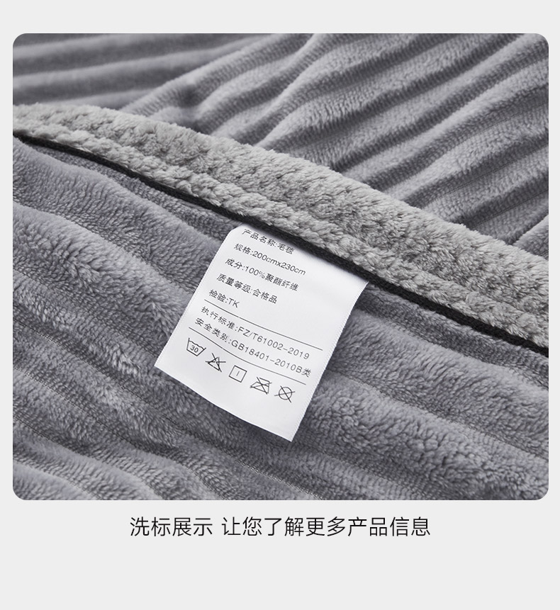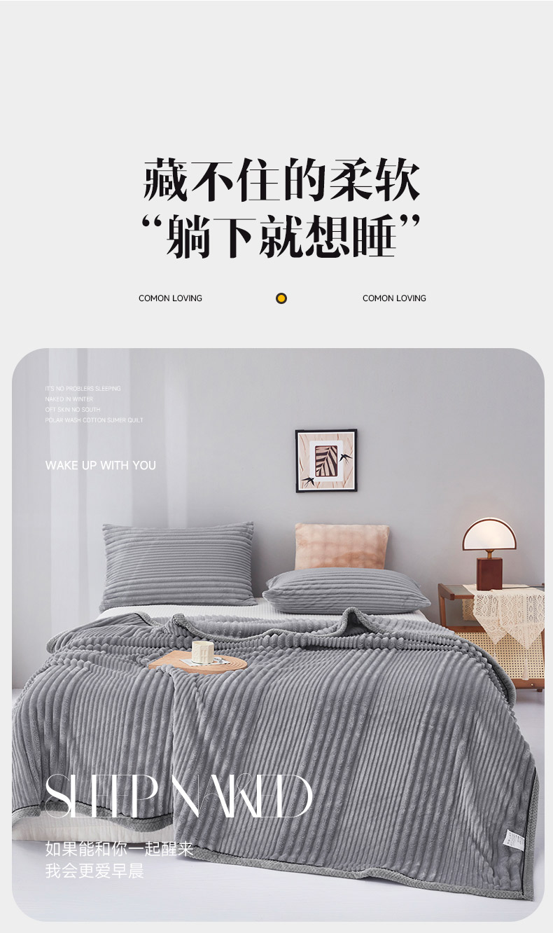 商品名称:肖恩毯业2025新款子母条兔毛绒毛毯盖毯休闲毯绒毯毯子跨境专供可打卷外贸出口可定制尺寸 子母-浅灰