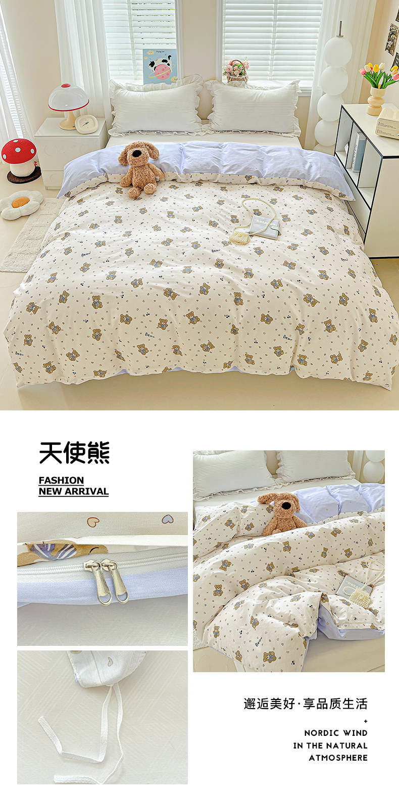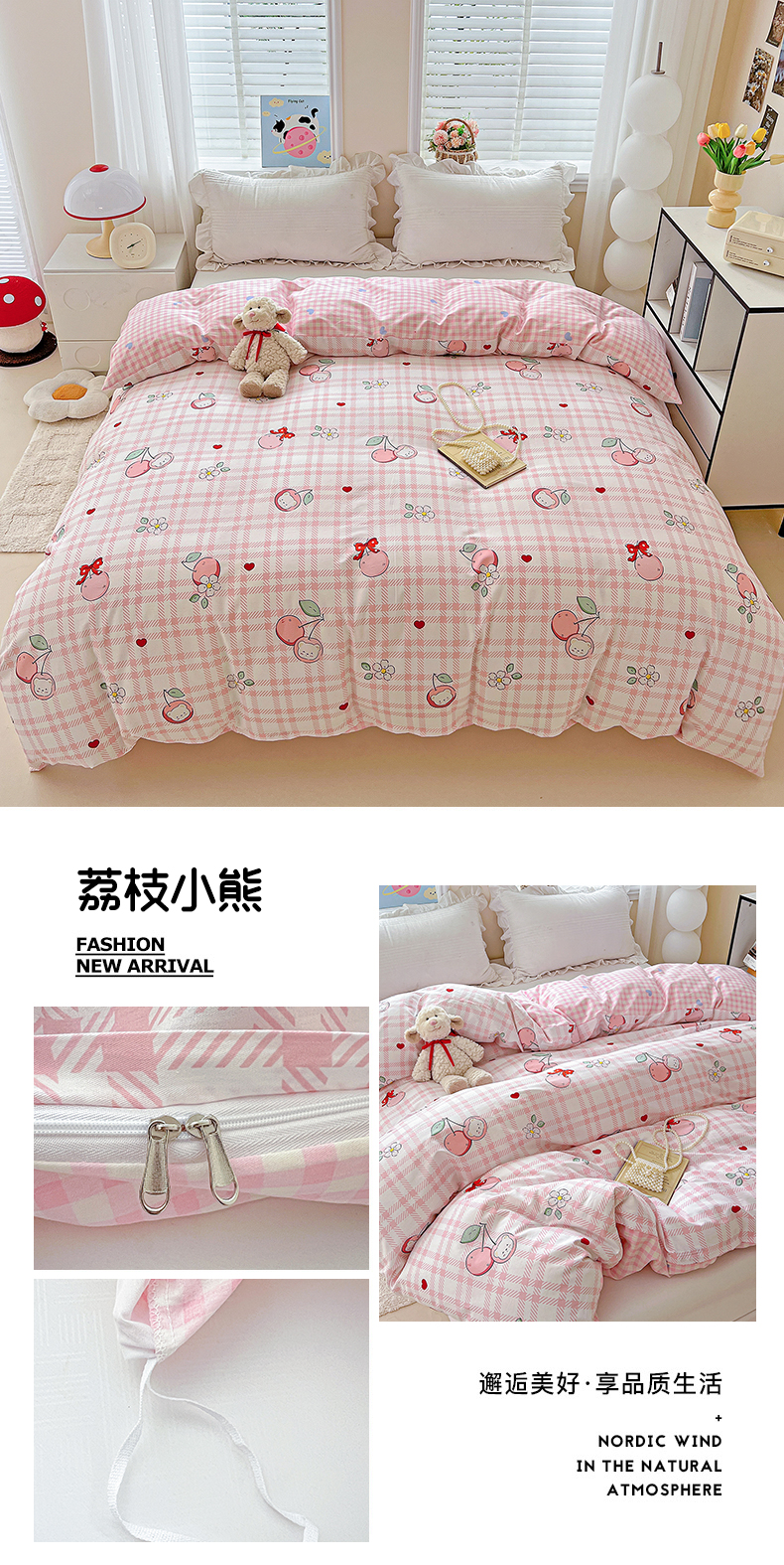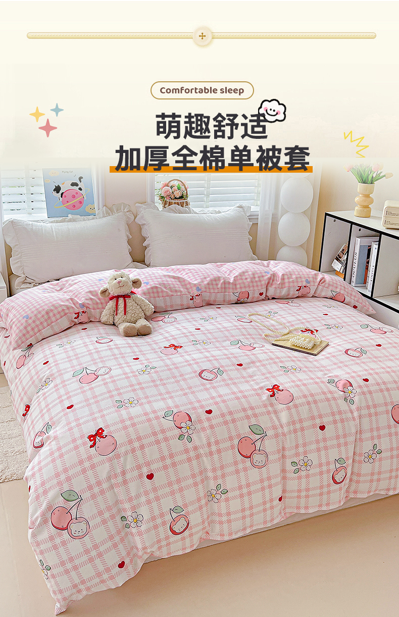 商品名称:恩泽家纺 2025新款加厚全棉纯棉印花系列被套单件-单被套 荔枝小熊