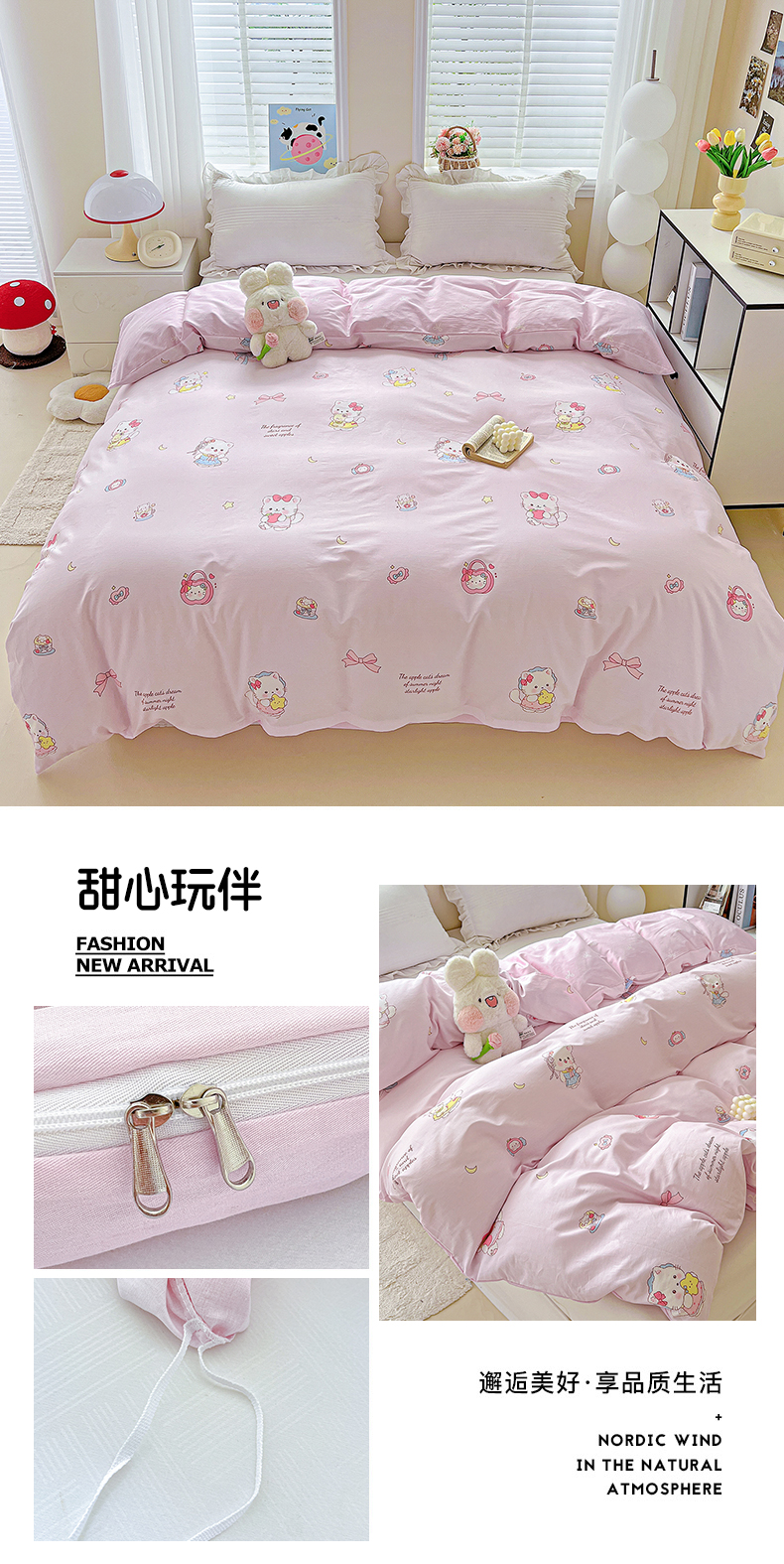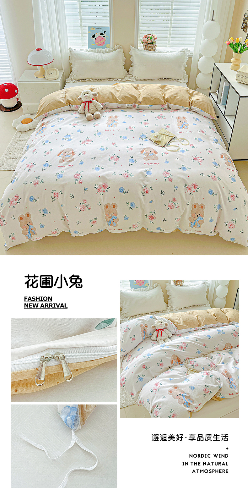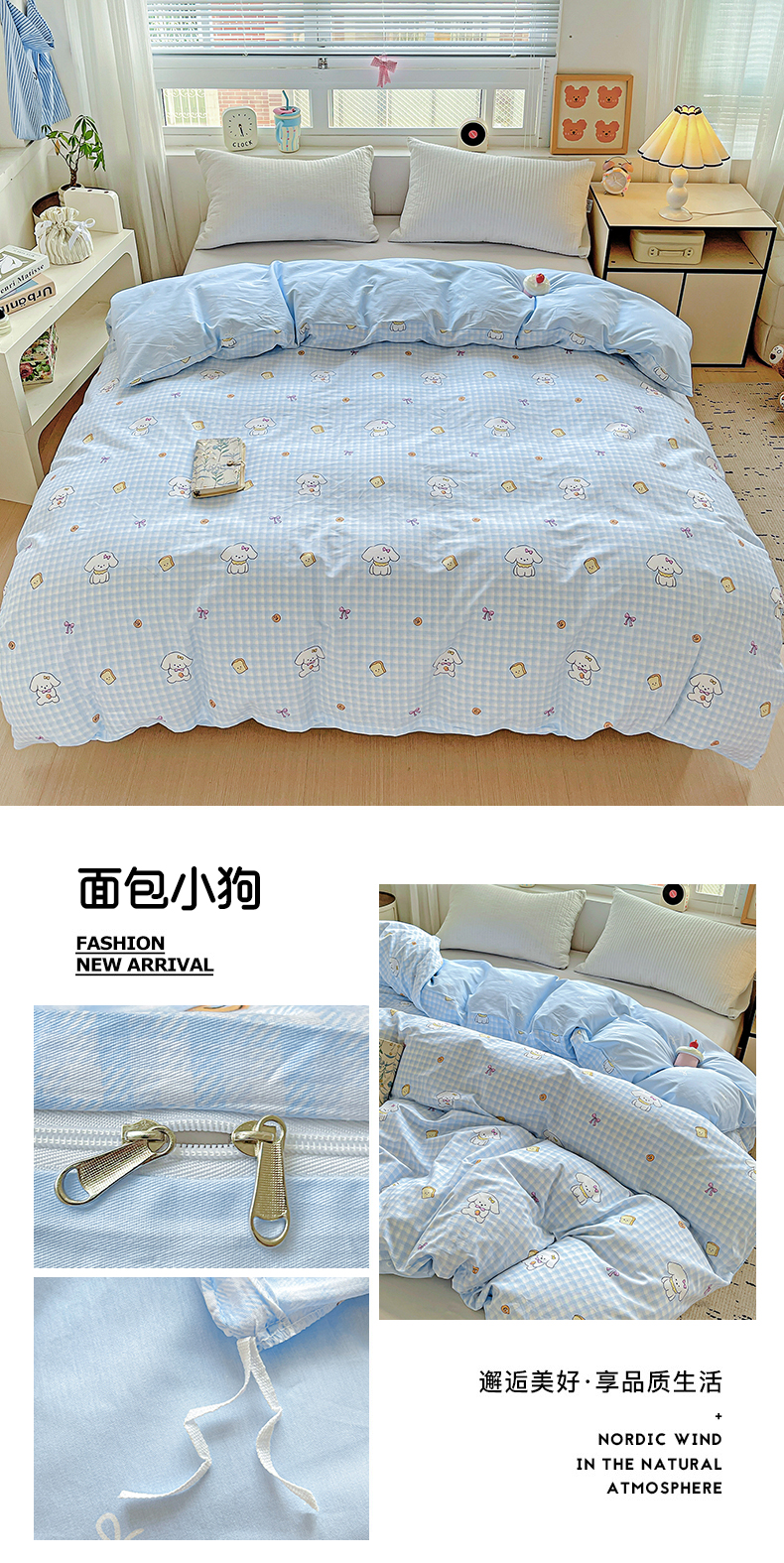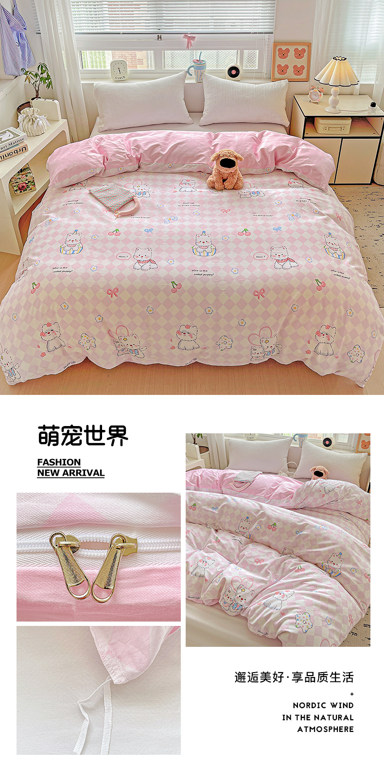 (总)恩泽家纺 2026春夏新款全棉纯棉12868印花四件套(提供买家秀,预留缩水率),花丛小兔子,草莓季,多彩世界,护花使者,花季少女,花梦间,极简主义,凯蒂宝贝,可爱喵,拉菲特,洛琳粉,绿格小熊,帽子小狗,喵喵,魔法帽,奶油阿布,派对小狗,苹果小猫咪,时尚猫咪粉,田园小花,碎花兔兔,甜小桔,甜心汪·咖,甜心汪·蓝,晚樱,小狗乐乐,小精灵,小萌物,小淘气,小甜心,小熊布丁,小熊猫,星动情节,星梦童话,星愿萌犬,熊猫与牛油果,学院风,雪纳瑞,樱桃派,樱桃兔,樱桃小熊,宅宅女孩
