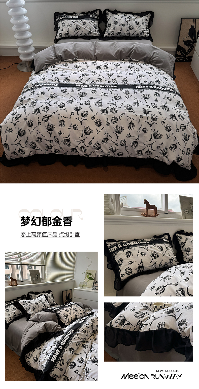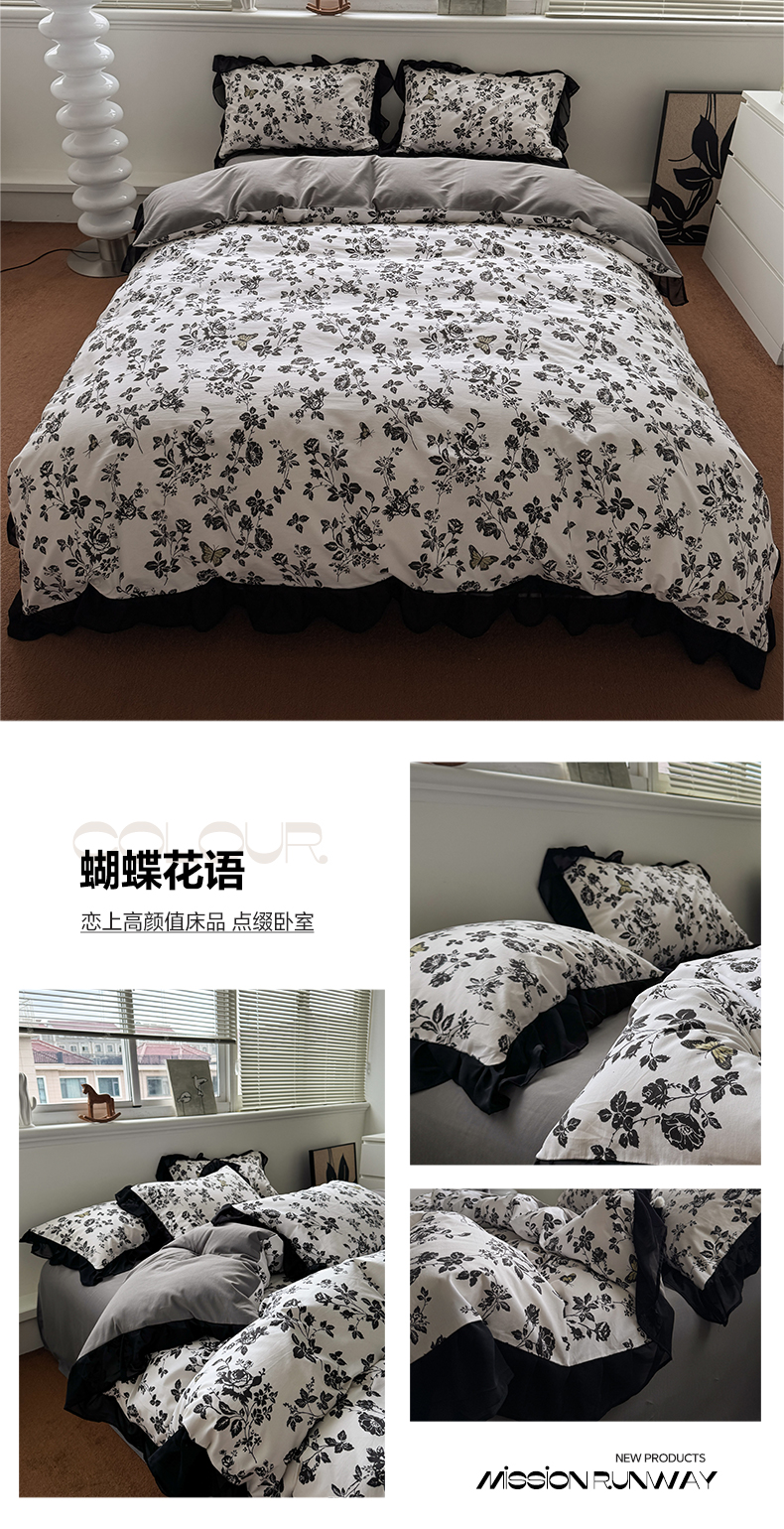 当前位置: 91家纺网 > 商品网购 > 床品套件 > 四件套 > 全棉普通四件套 > 雅居纺家纺 2025新款全棉纯棉赫本风磨毛蕾丝花边四件套-风格二 宝格丽-灰