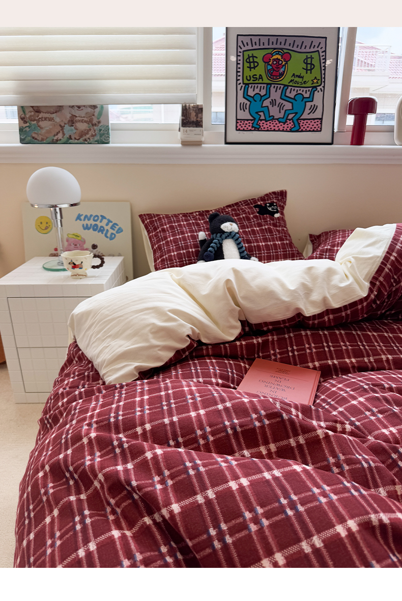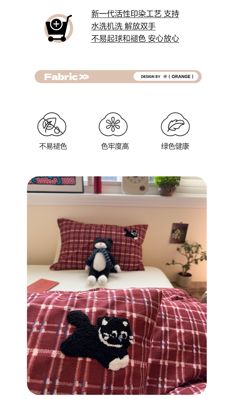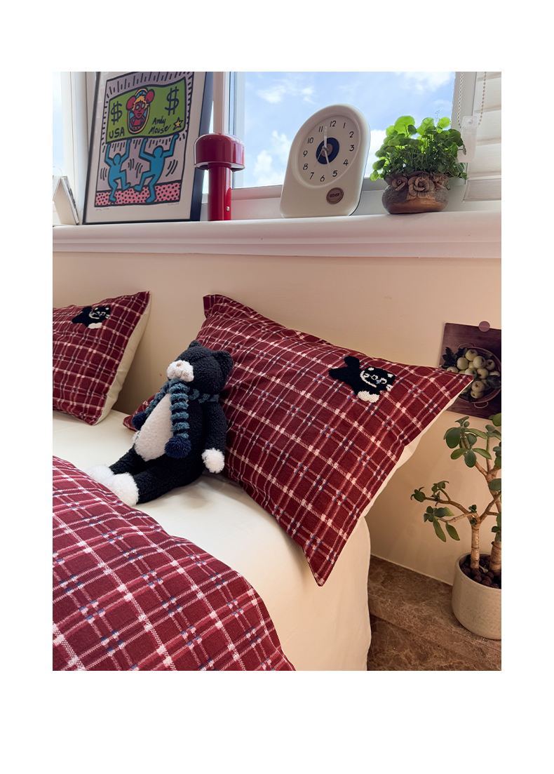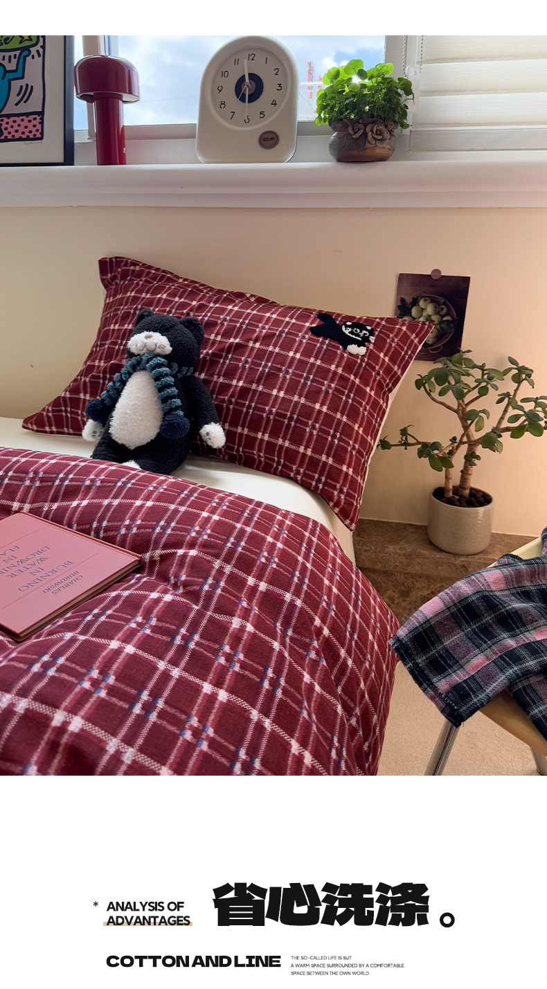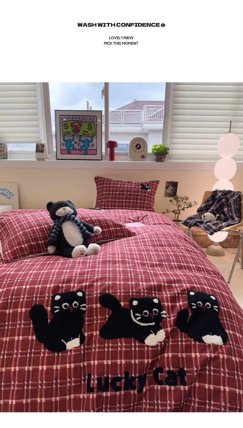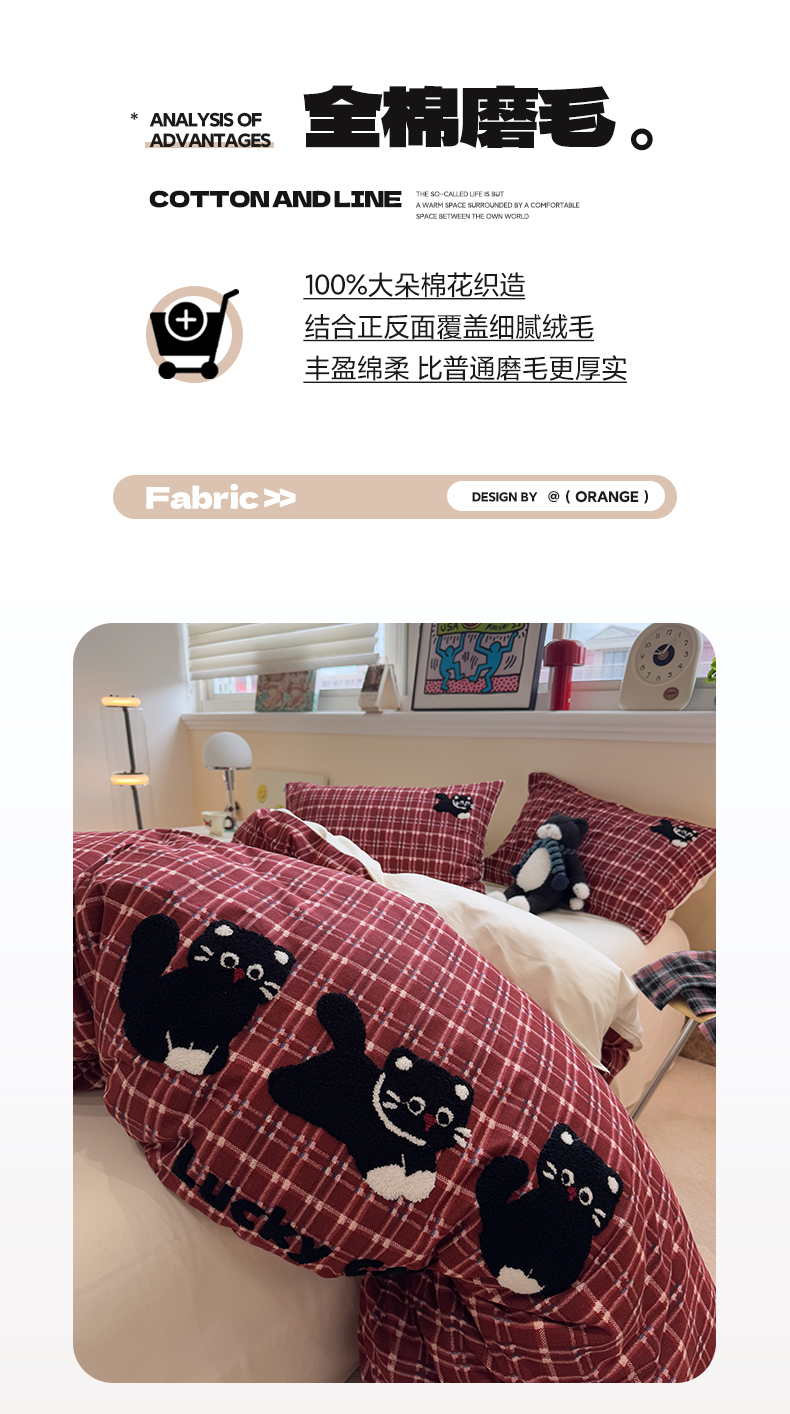 当前位置: 91家纺网 > 商品网购 > 床品套件 > 四件套 > 全棉普通四件套 > 雅居纺家纺 2025新款全棉纯棉磨毛毛巾绣四件套 红格幸运猫
