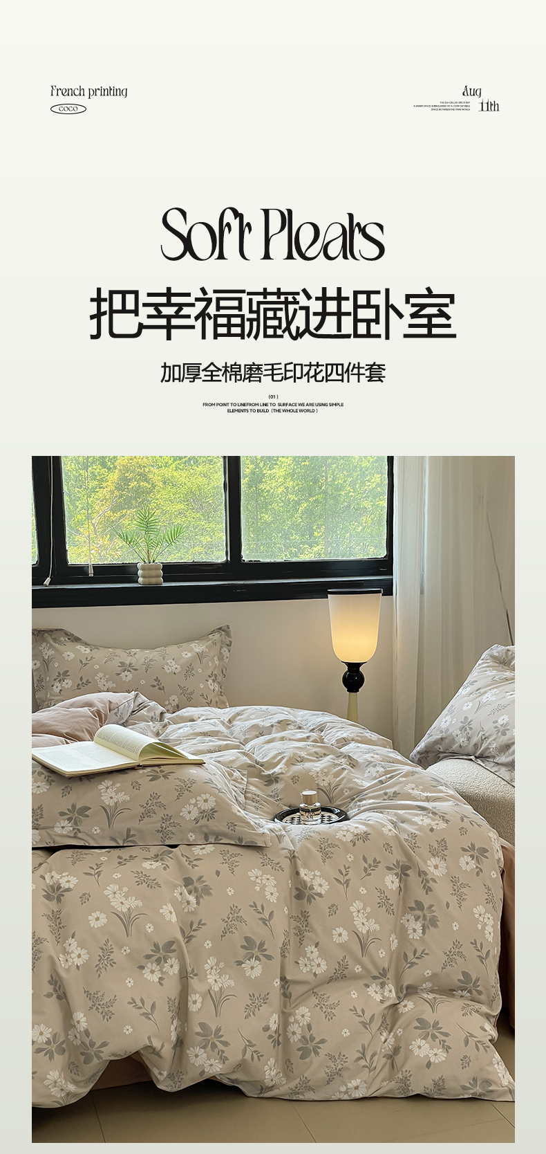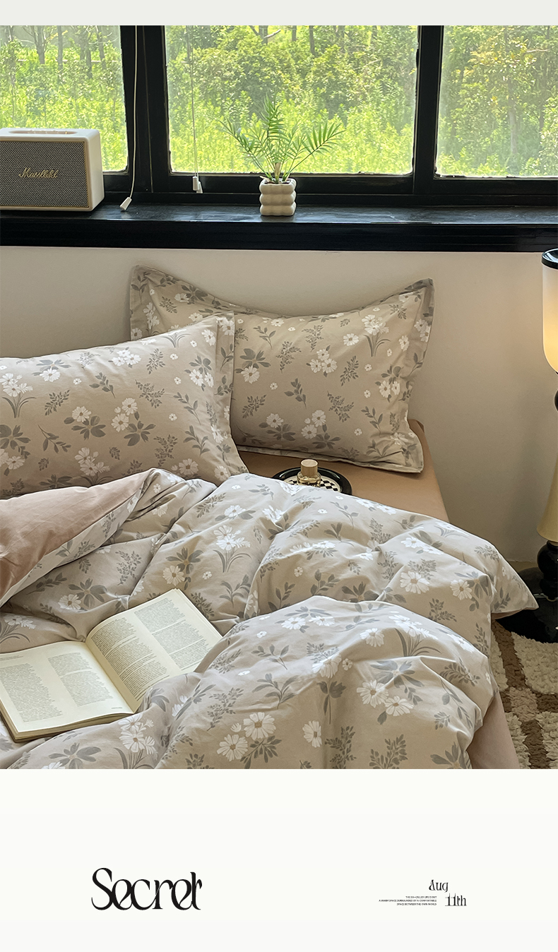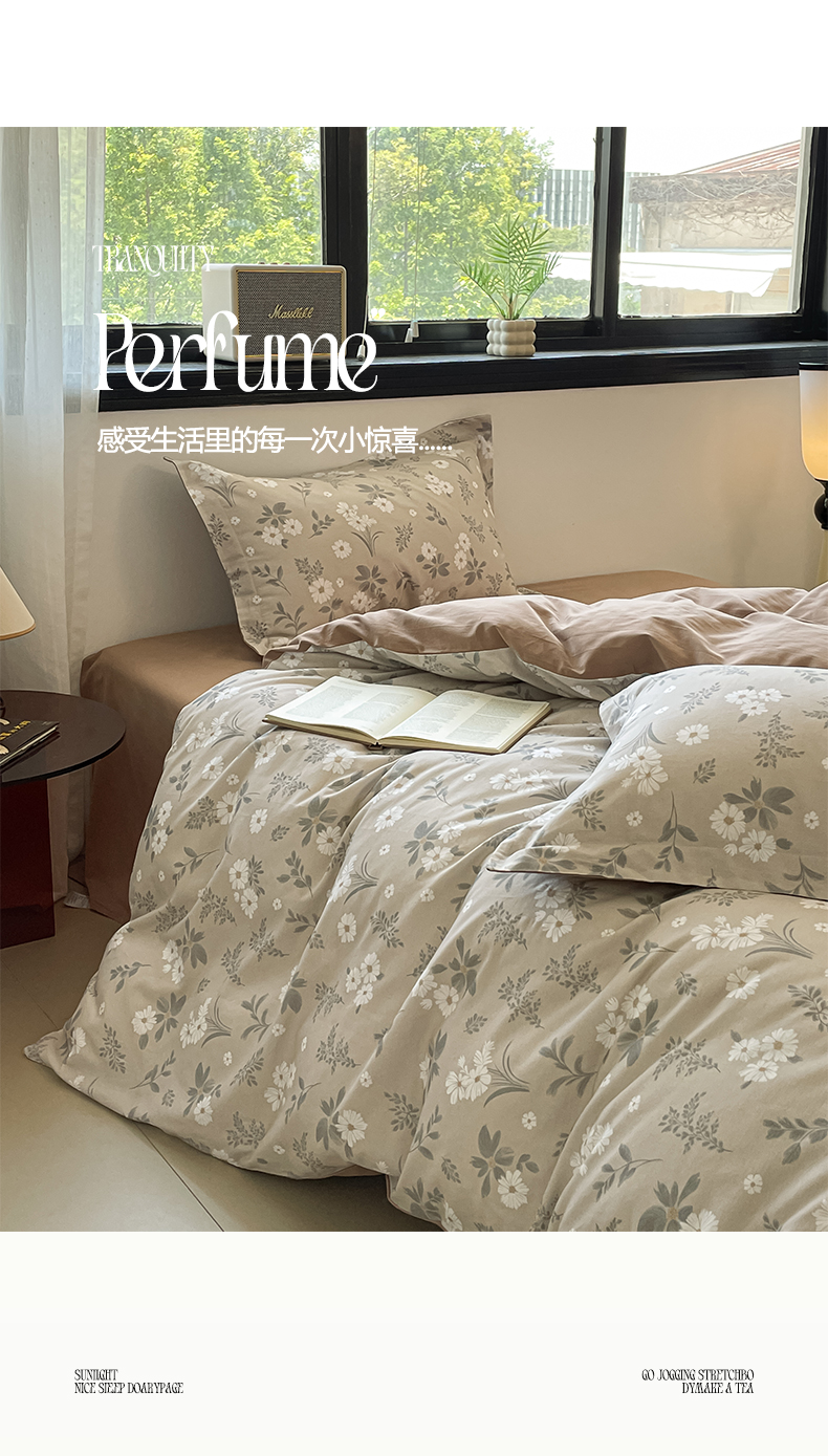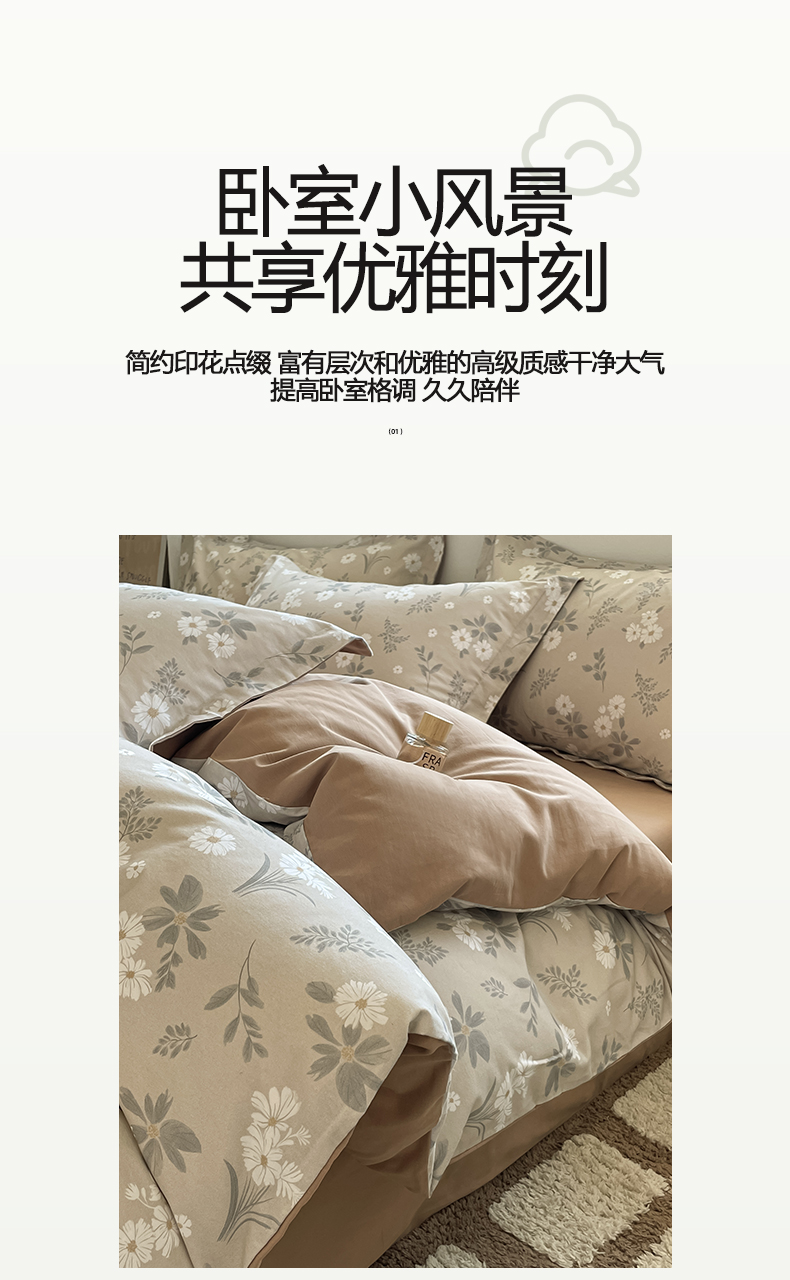 当前位置: 91家纺网 > 商品网购 > 床品套件 > 四件套 > 磨毛活性四件套 > 涵宸家纺 2025新款加厚全棉磨毛印花四件套--罗马系列 场景二 F花间梦影
