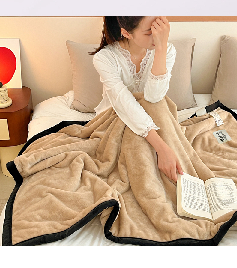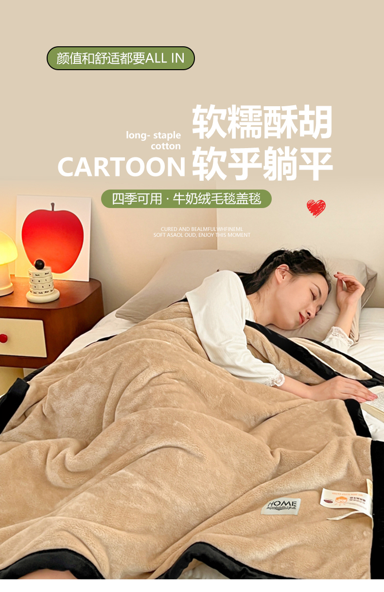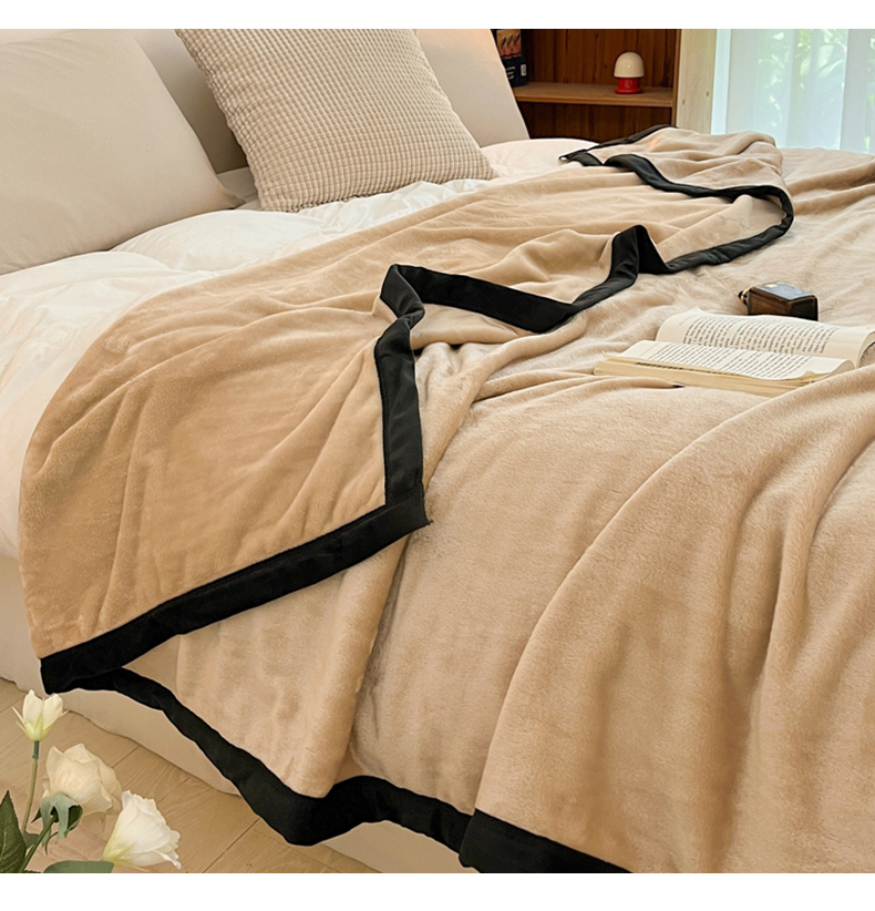 穆琪 2025年新款牛奶绒盖毯 400克高克重云貂绒毛毯宽包边法莱绒毯子 卡其