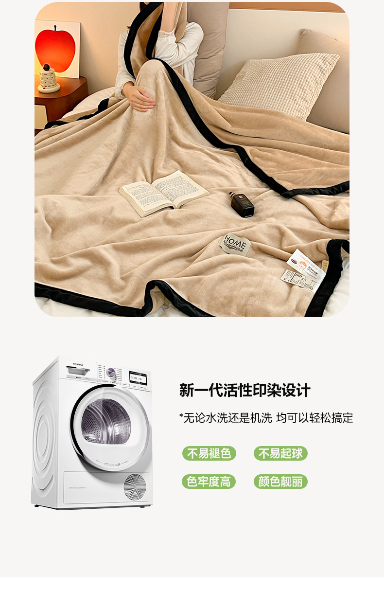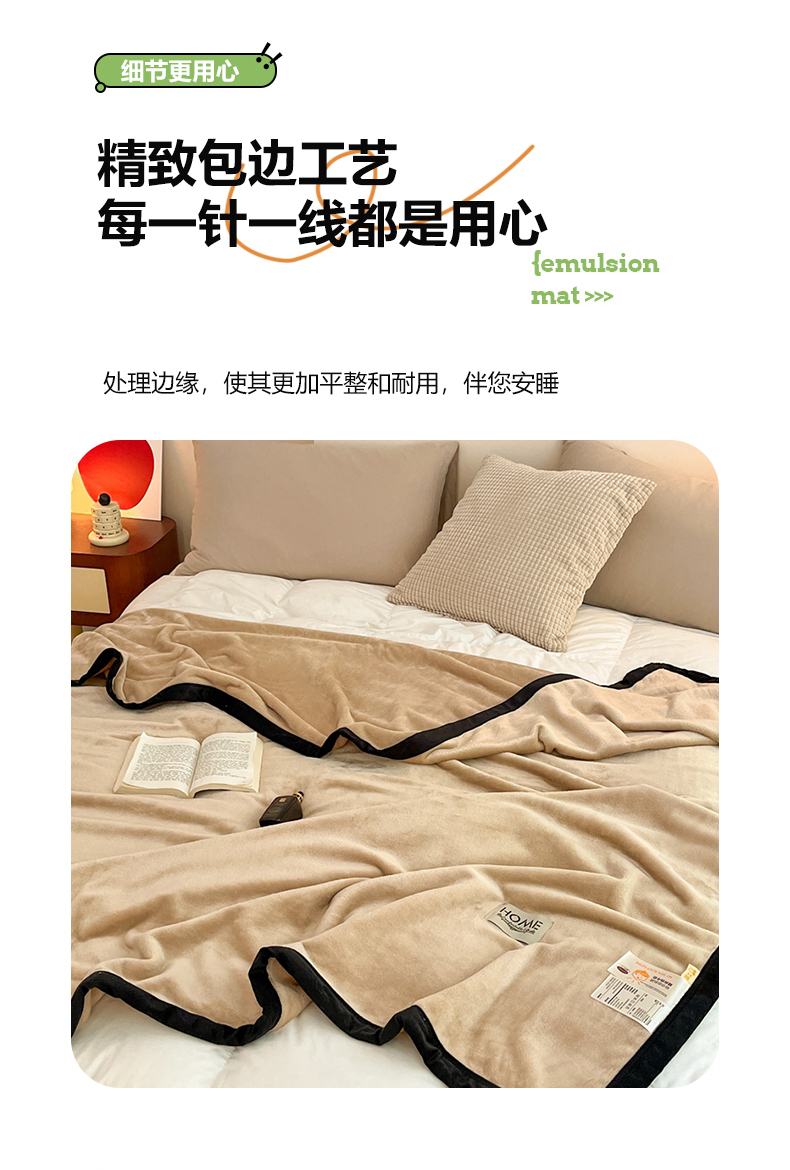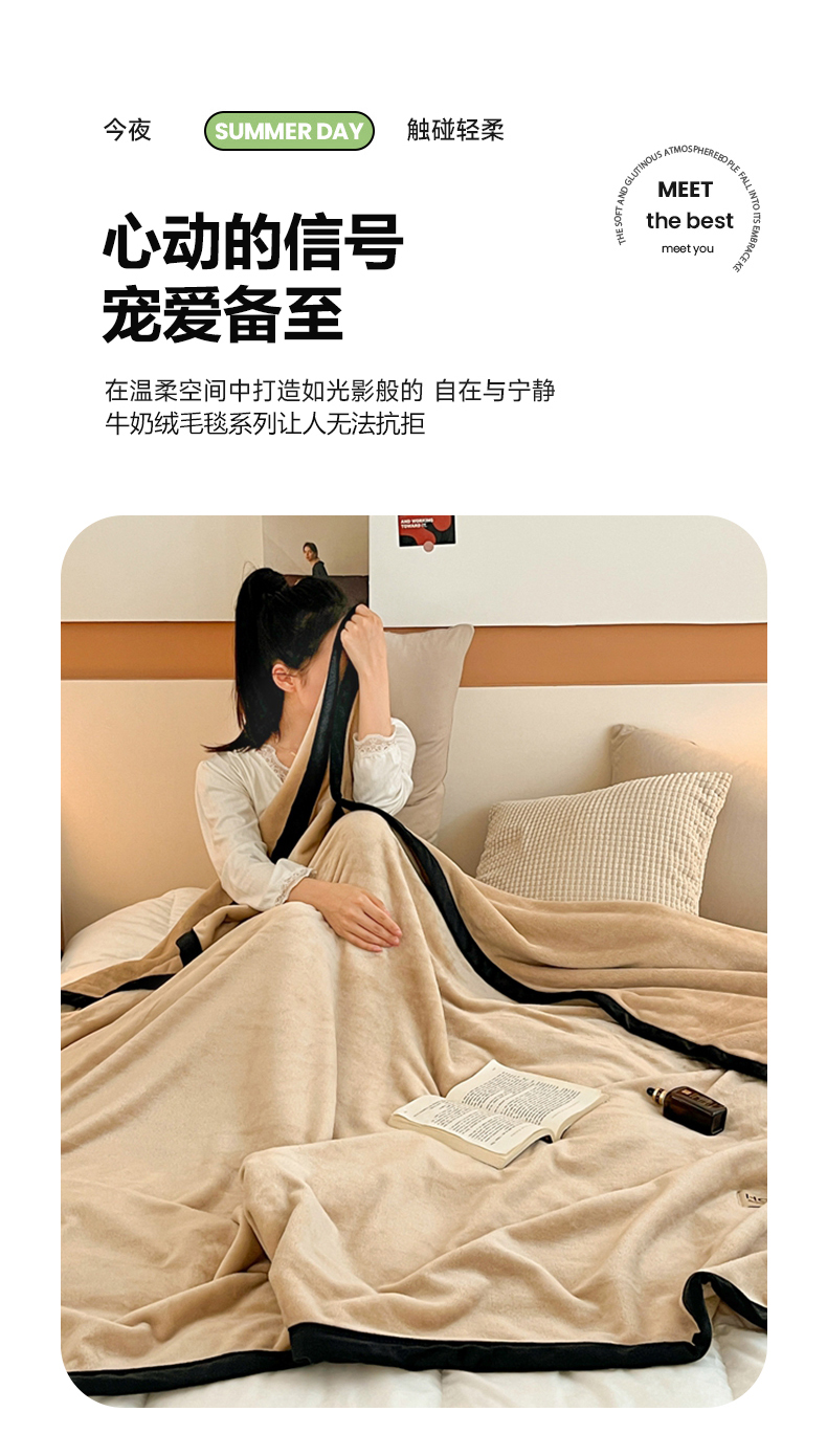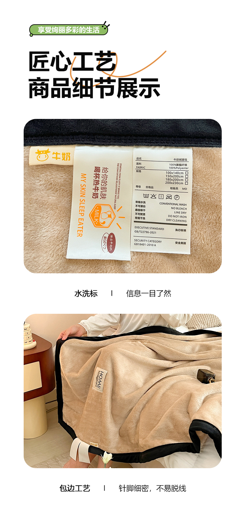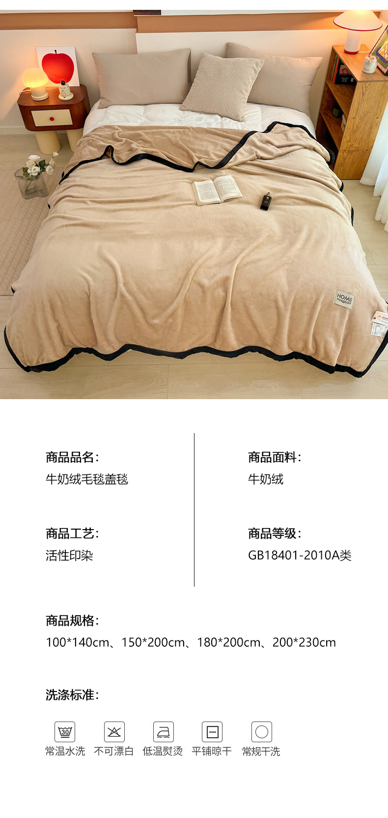 商品名称:穆琪 2025年新款牛奶绒盖毯 400克高克重云貂绒毛毯宽包边法莱绒毯子 卡其