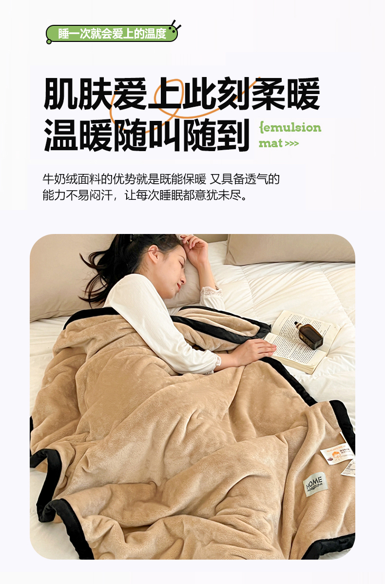 (总)穆琪 2025年新款牛奶绒盖毯 400克高克重云貂绒毛毯宽包边法莱绒毯子,薄荷绿,冰雪蓝,布丁黄,卡其,蓝灰,莫兰迪绿,天空蓝,烟灰,樱桃粉