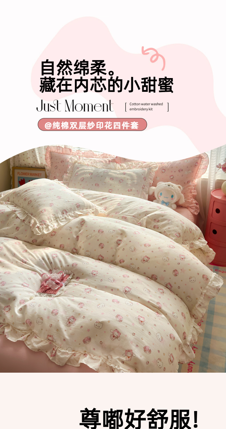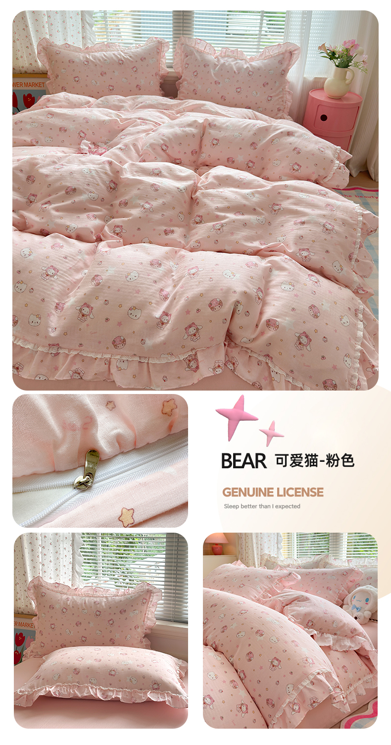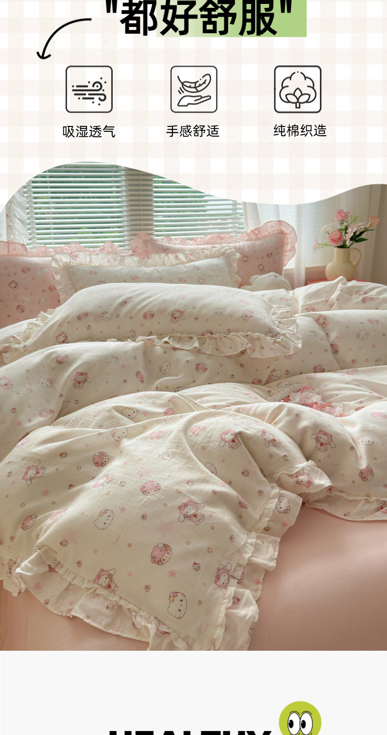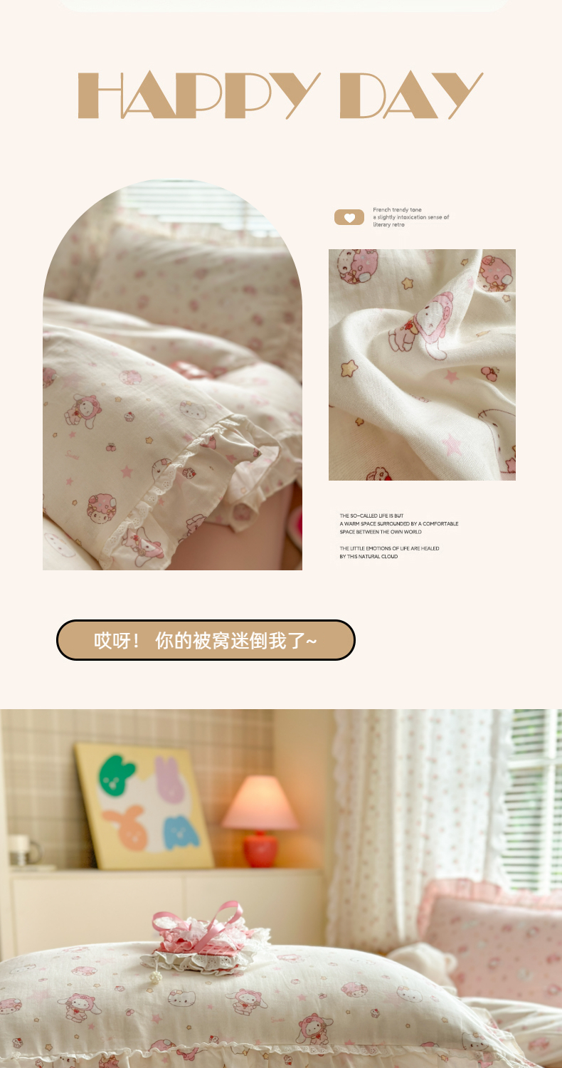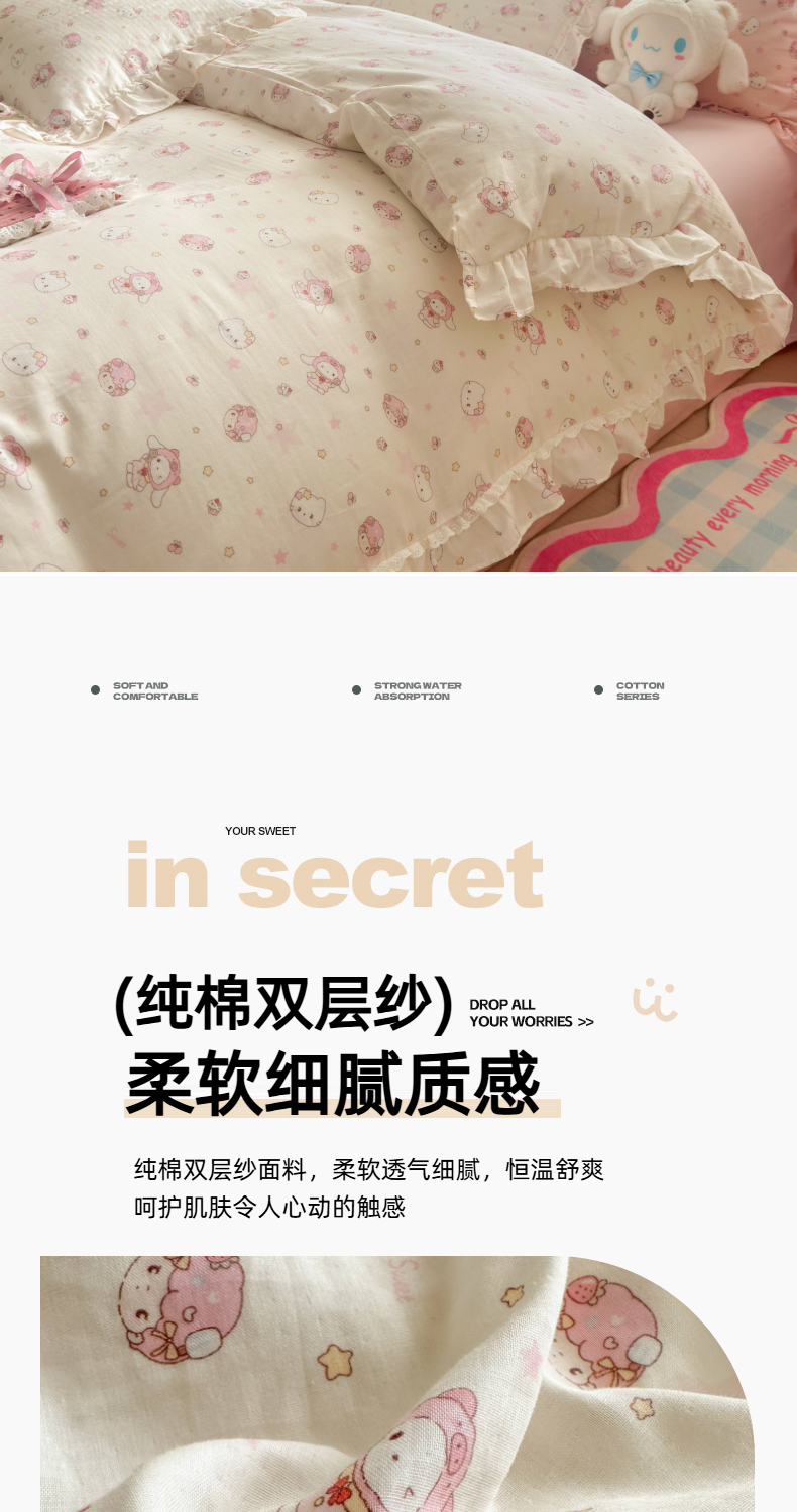 当前位置: 91家纺网 > 商品网购 > 床品套件 > 四件套 > 双层纱四件套 > 淑女公社家纺 2025新款全棉纯棉双层纱四件套-可爱猫 可爱猫 白色