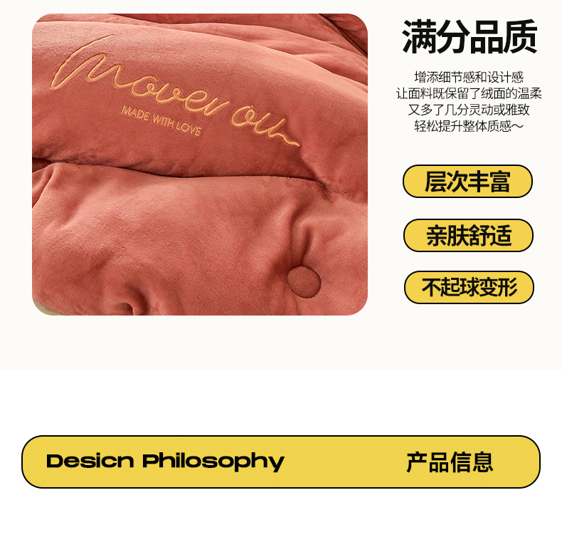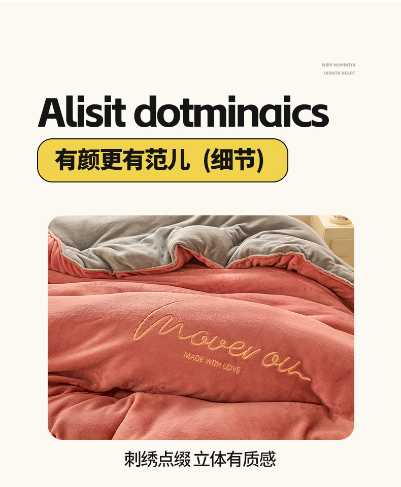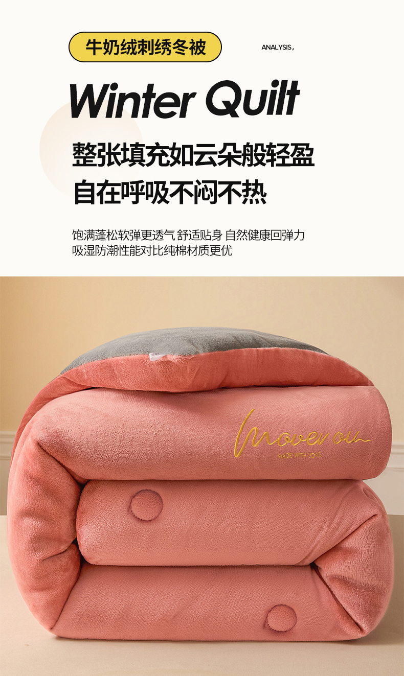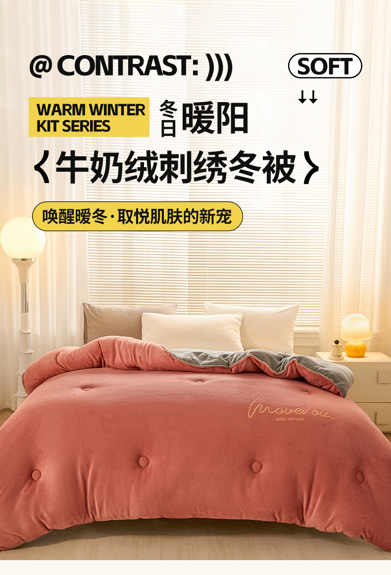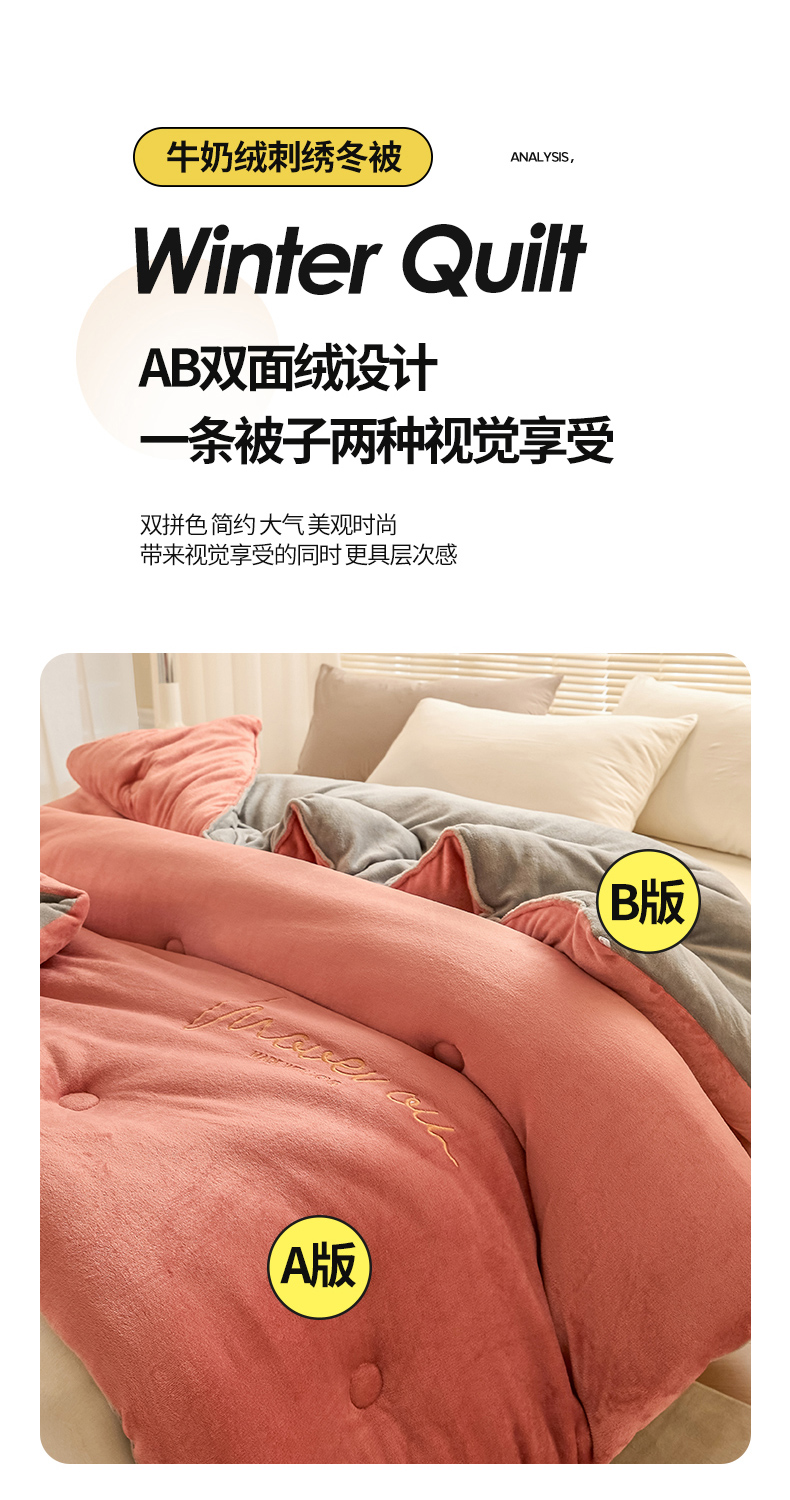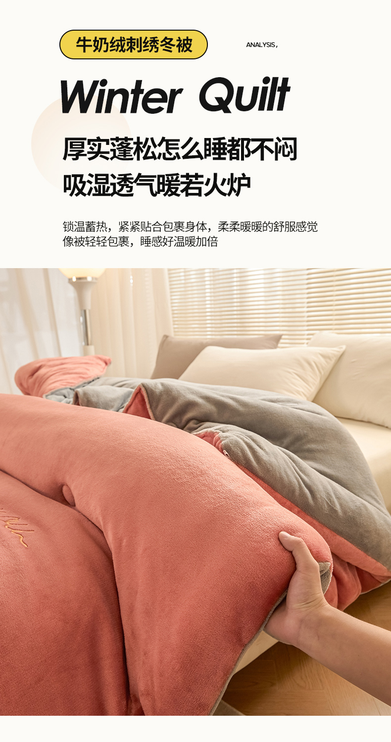 商品名称:暖芯家纺 2025新款双拼色绣花牛奶绒冬被被子被芯 深豆沙