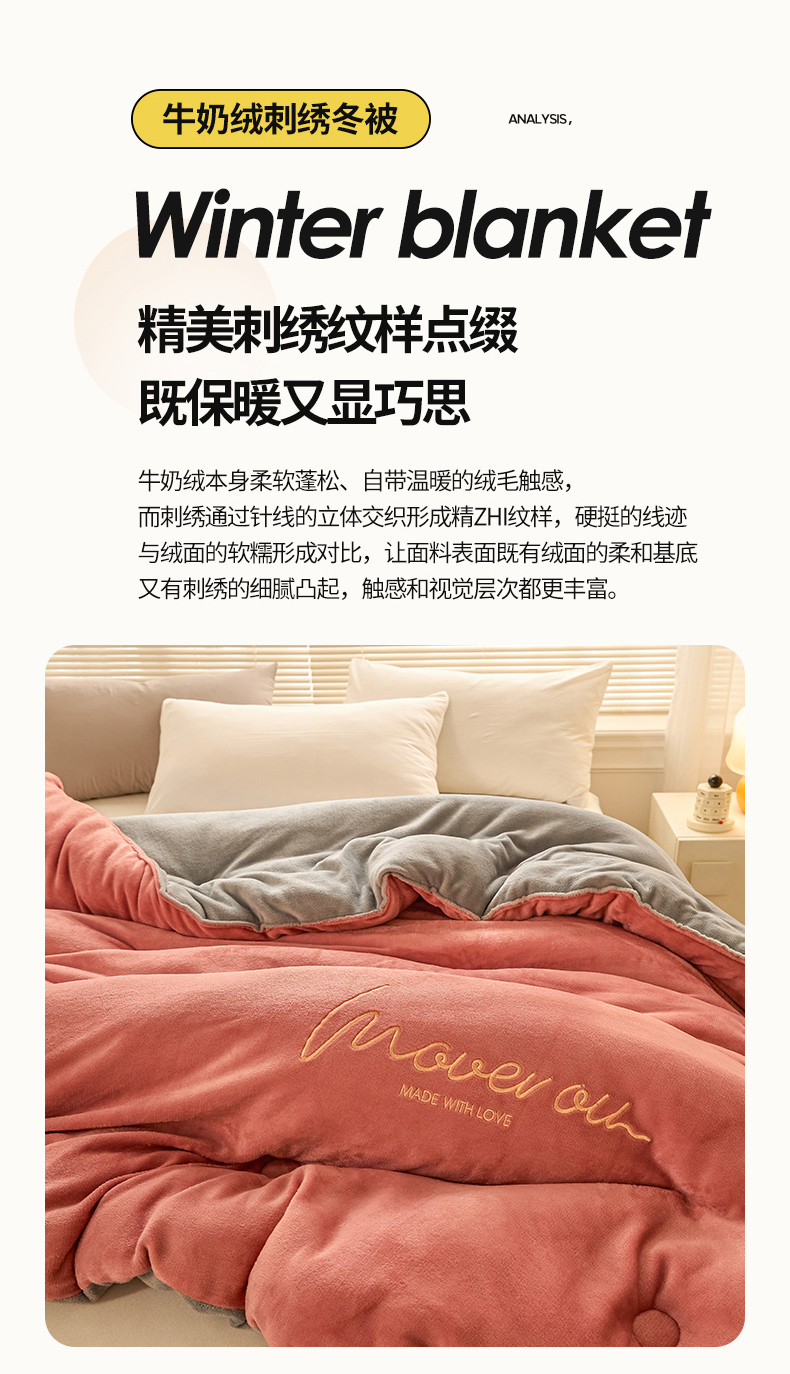 (总)暖芯家纺 2025新款加厚保暖牛奶绒冬被,宾利蓝,豆沙,粉玉,橘色,浅灰