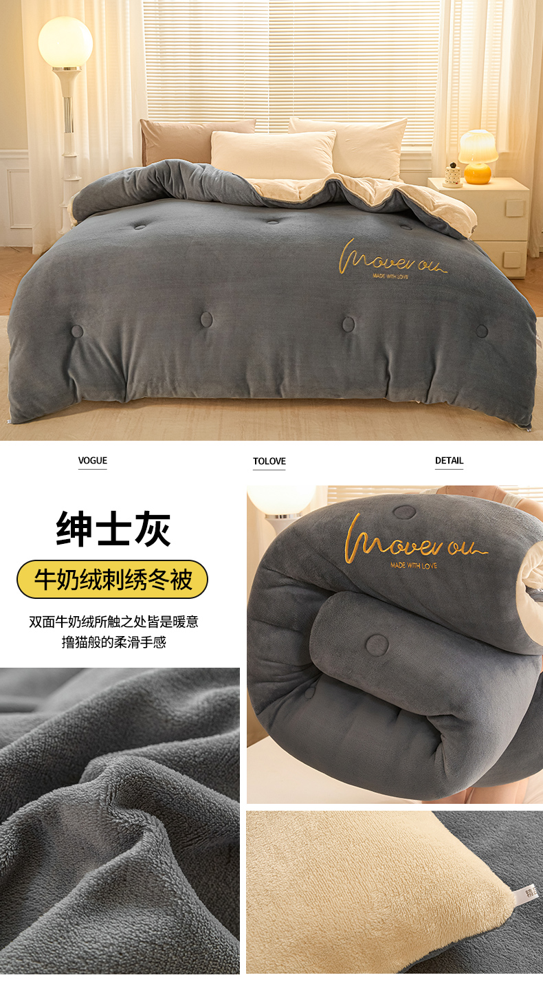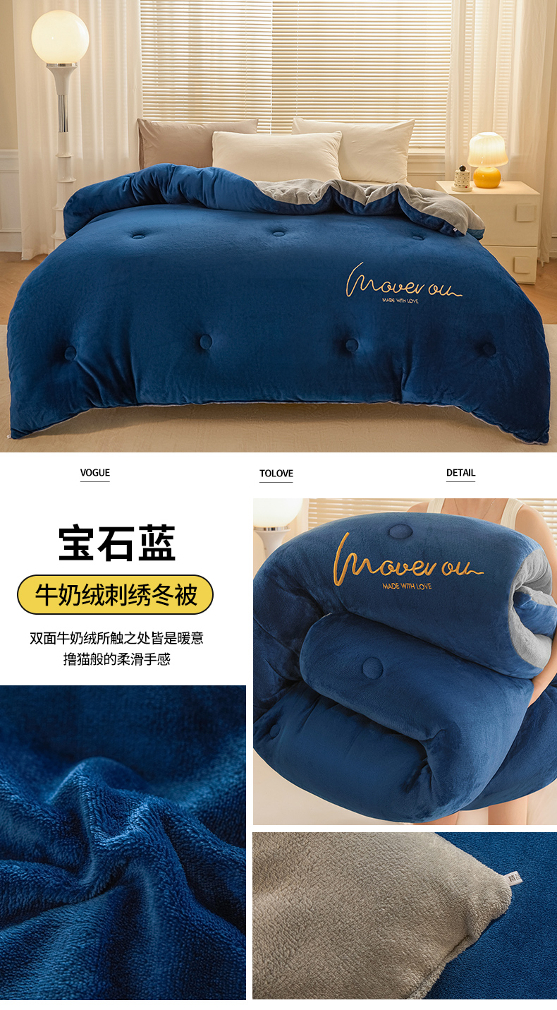 (总)暖芯家纺 2025新款双拼色绣花牛奶绒冬被被子被芯,宝石蓝,绅士灰,深豆沙,太妃咖