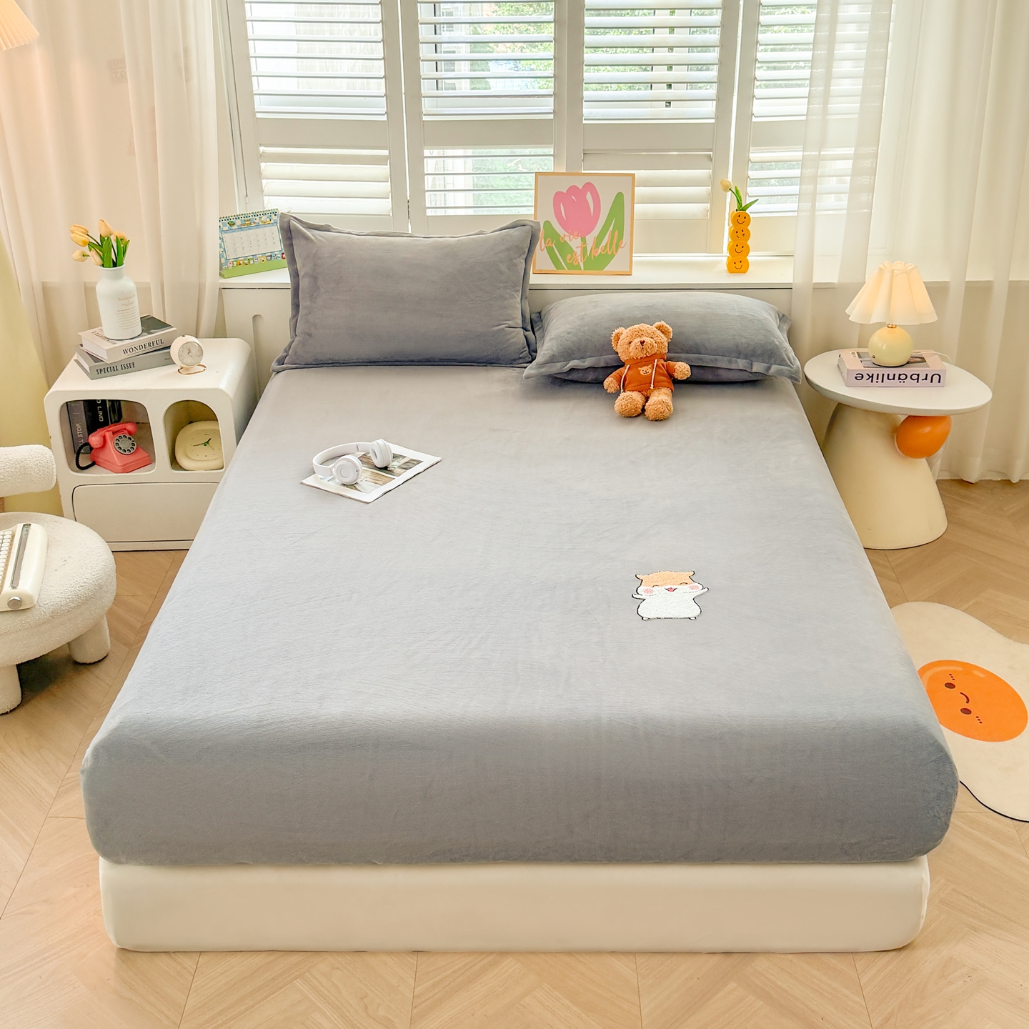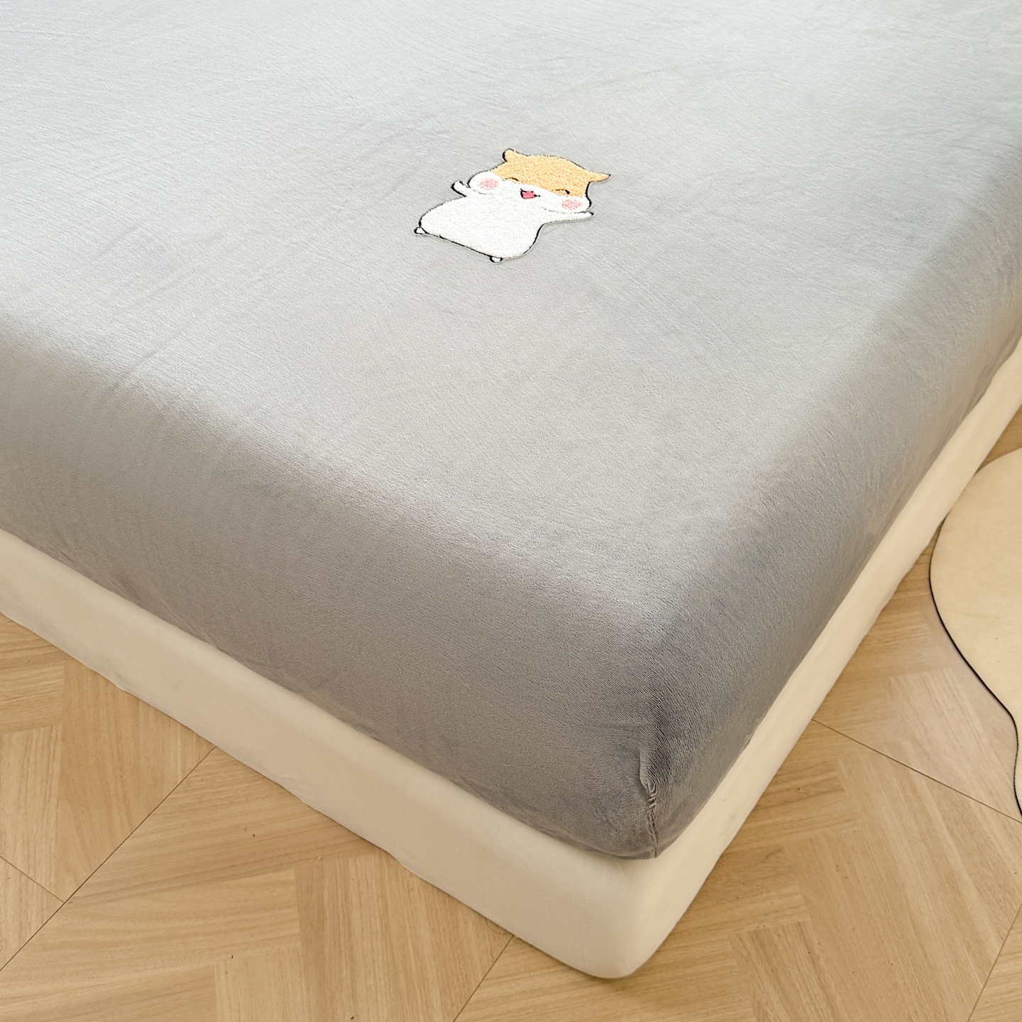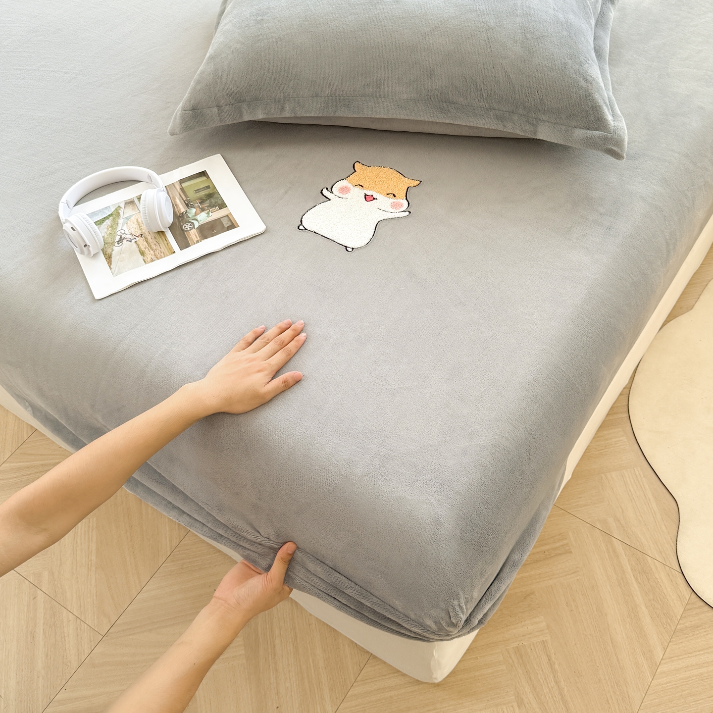 湘之帛 2025新款牛奶绒印花床笠 小松鼠-灰色