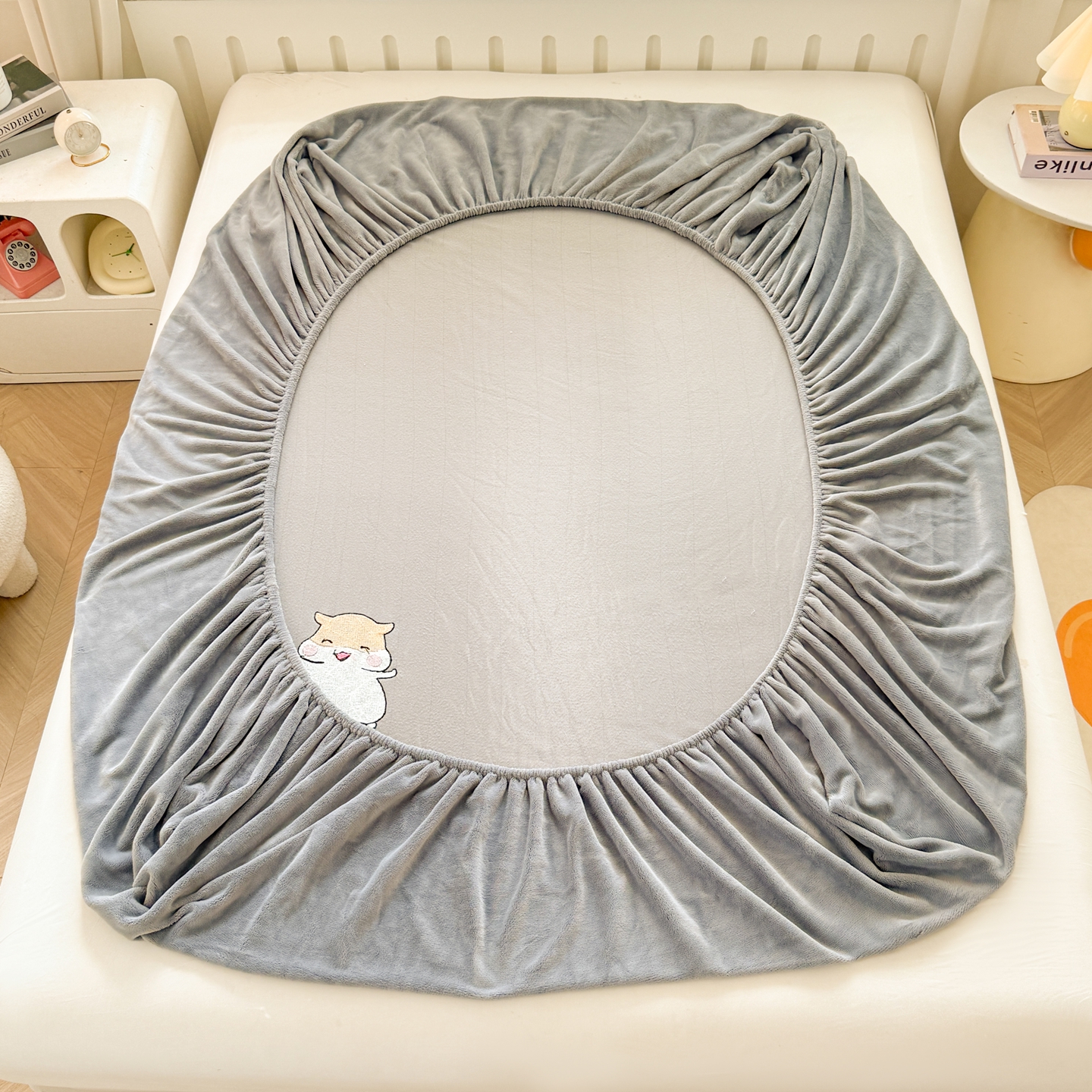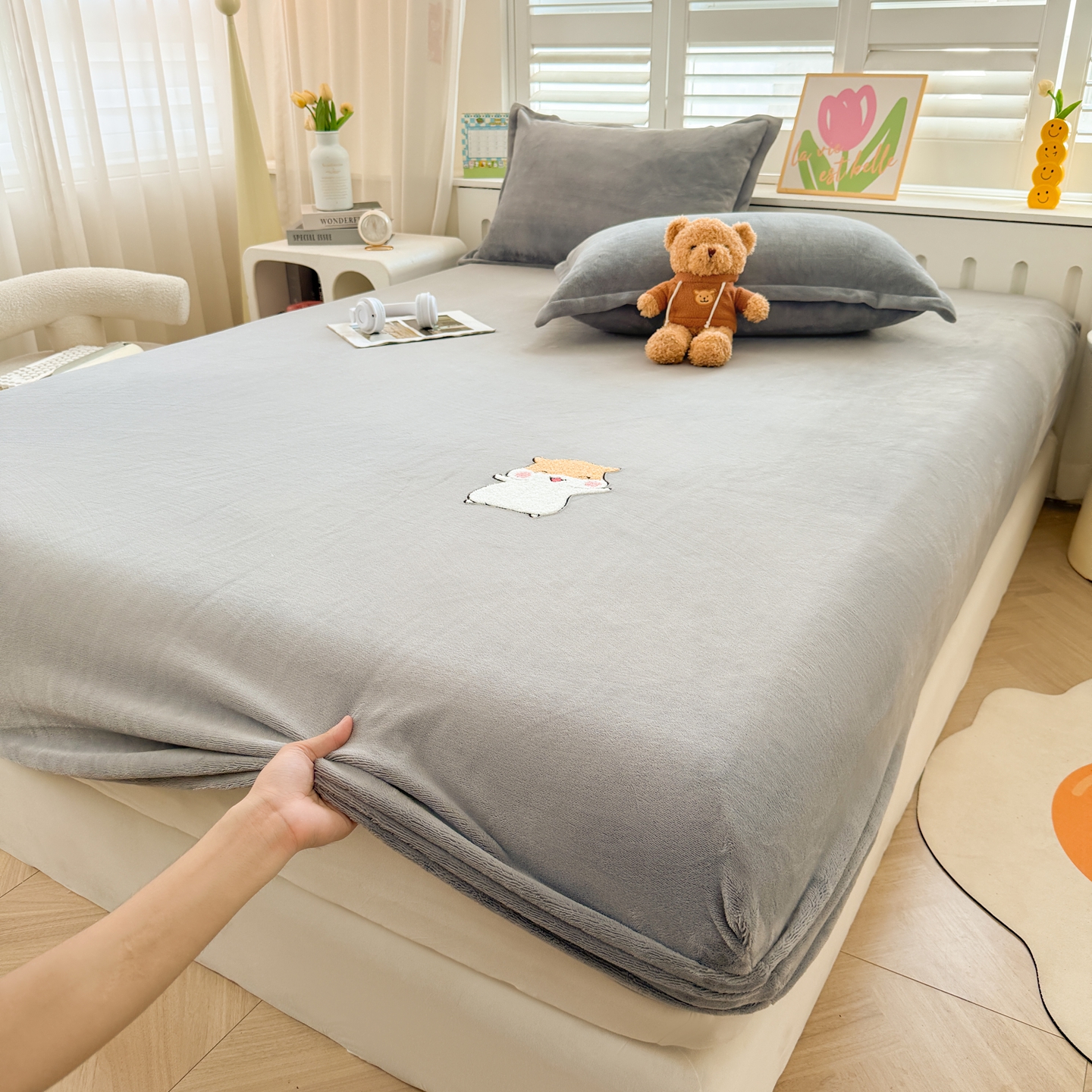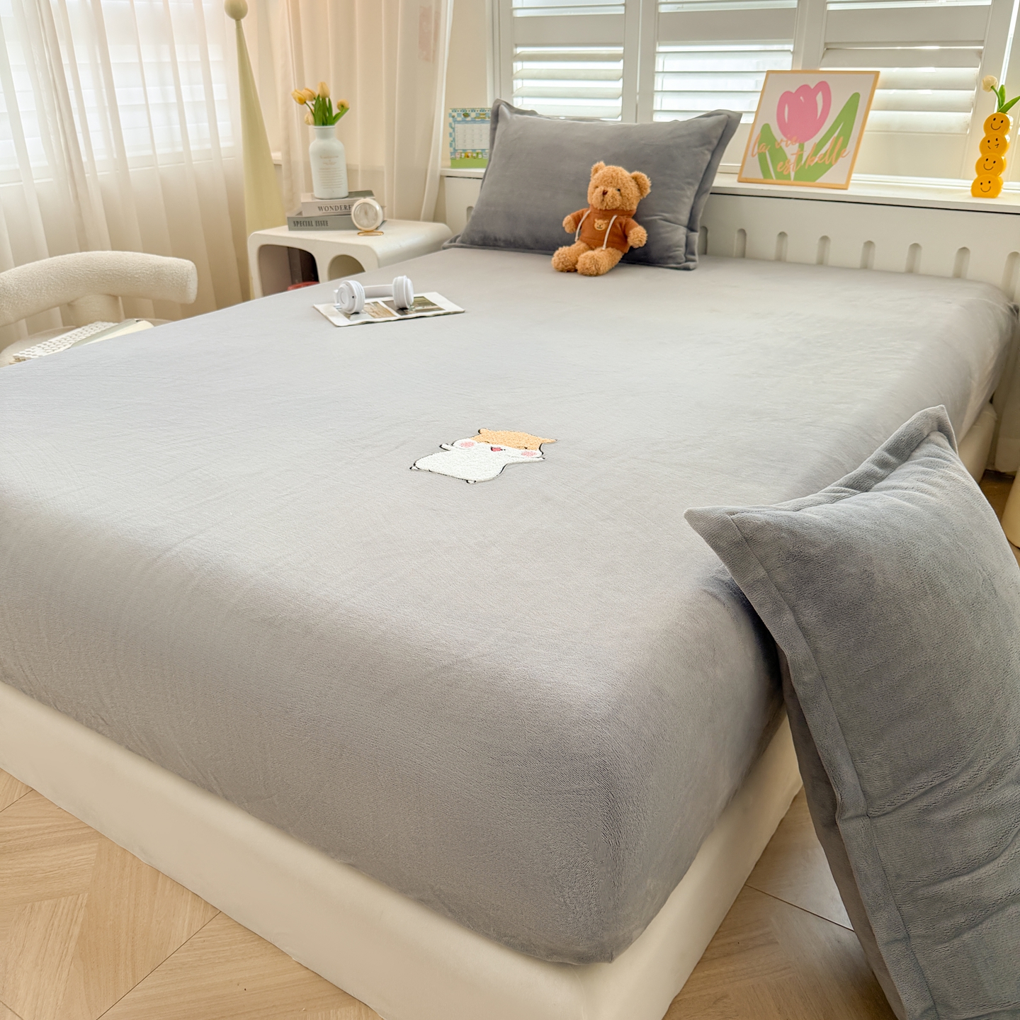 湘之帛 2025新款牛奶绒印花床笠 小松鼠-灰色
