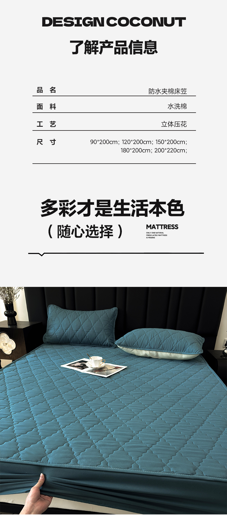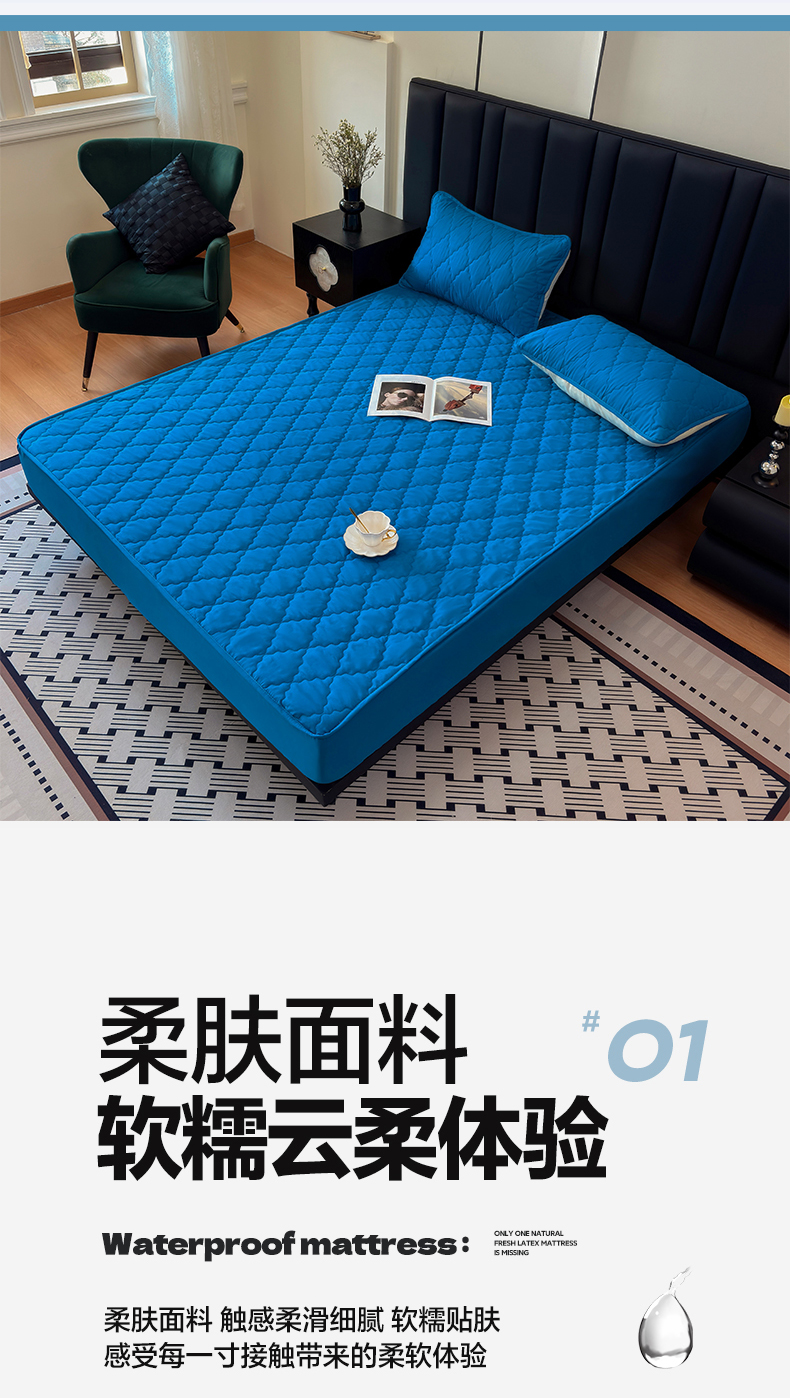 (总)美洲琳 2025新款防水夹棉床笠单床笠床笠单品,浅灰,天蓝,豆粉,黑灰,奶白,卡其,深绿