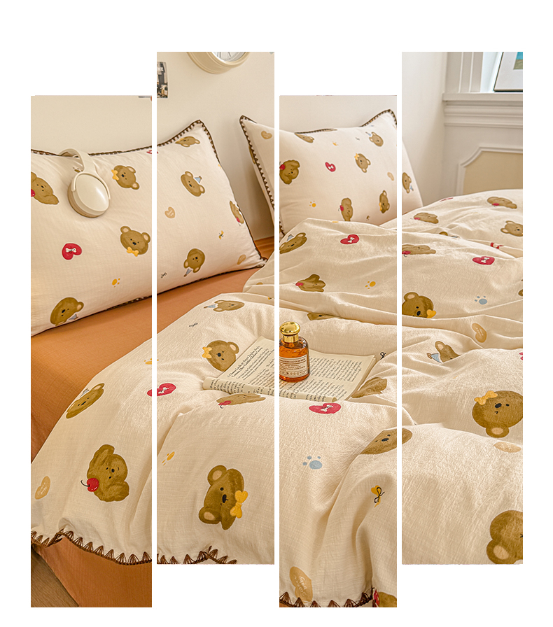 (总)晚爱家纺(原晚安家居) 2025新款超柔水洗棉四件套卡通小清新学生宿舍三件套,爱心熊,冰淇淋,波点咖,粉色猫咪,卡皮巴拉,腊肠狗,蓝色波点,萌宠,晚安熊,粉色狗狗,复古小熊,蝴蝶结,幸福狗狗,芝士碎,紫韵