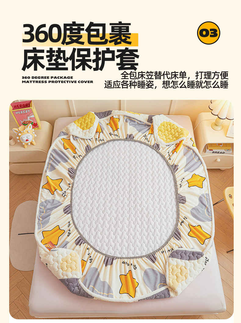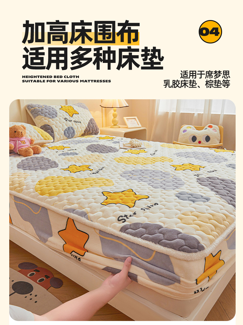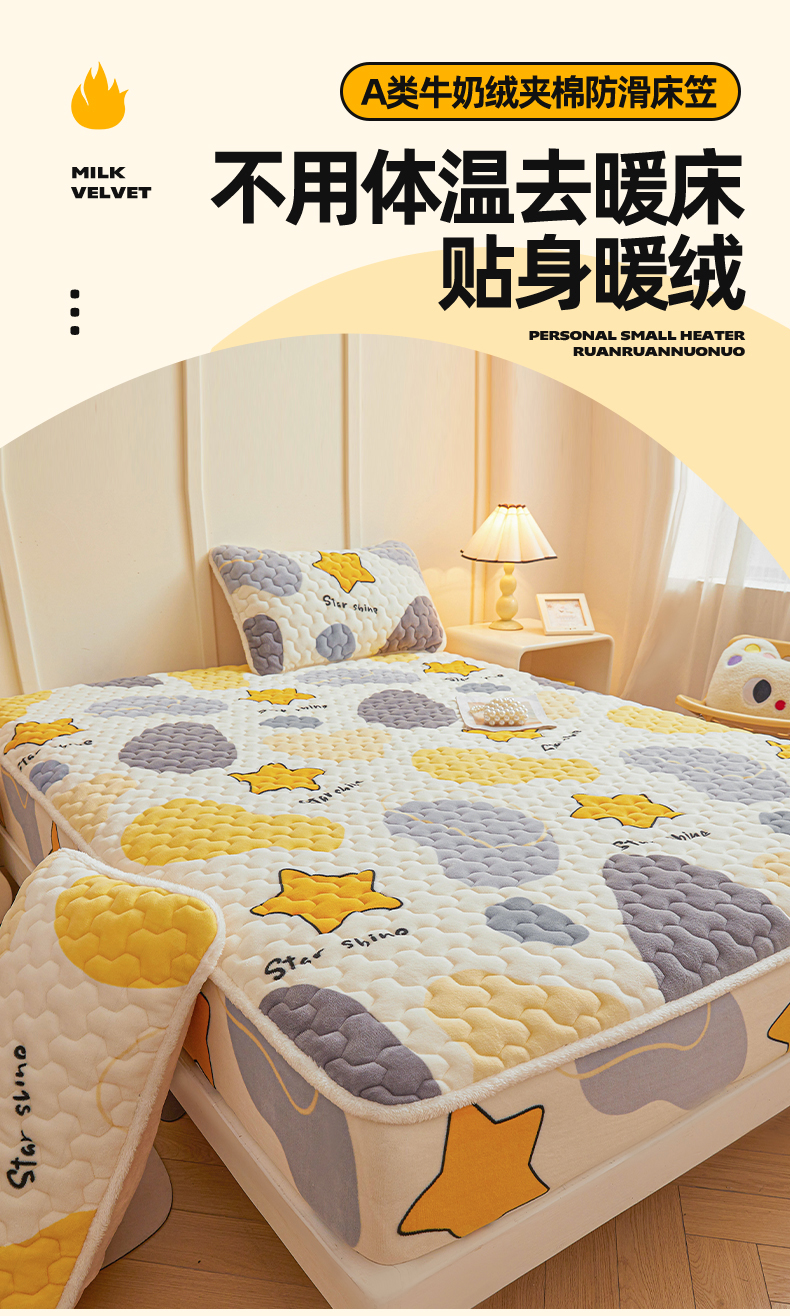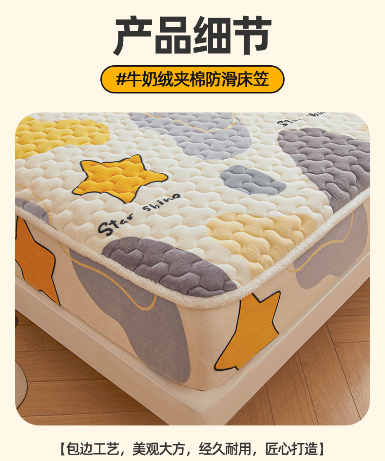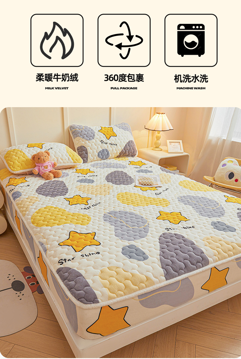 当前位置: 91家纺网 > 商品网购 > 床上用品 > 床垫套 > 雯豆家纺 2025新款牛奶绒夹棉床笠印花款床垫保护套秋冬保暖床罩 牛奶绒夹棉床笠-斑点星星