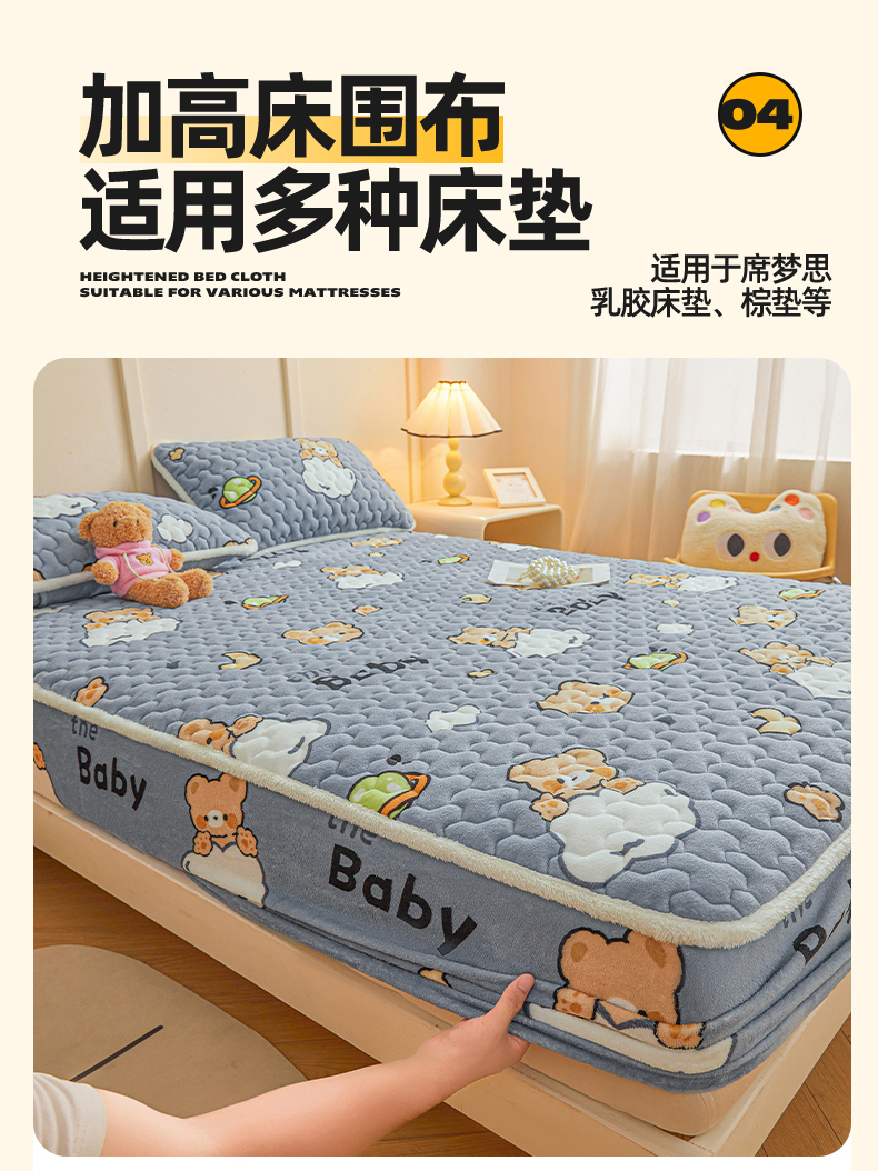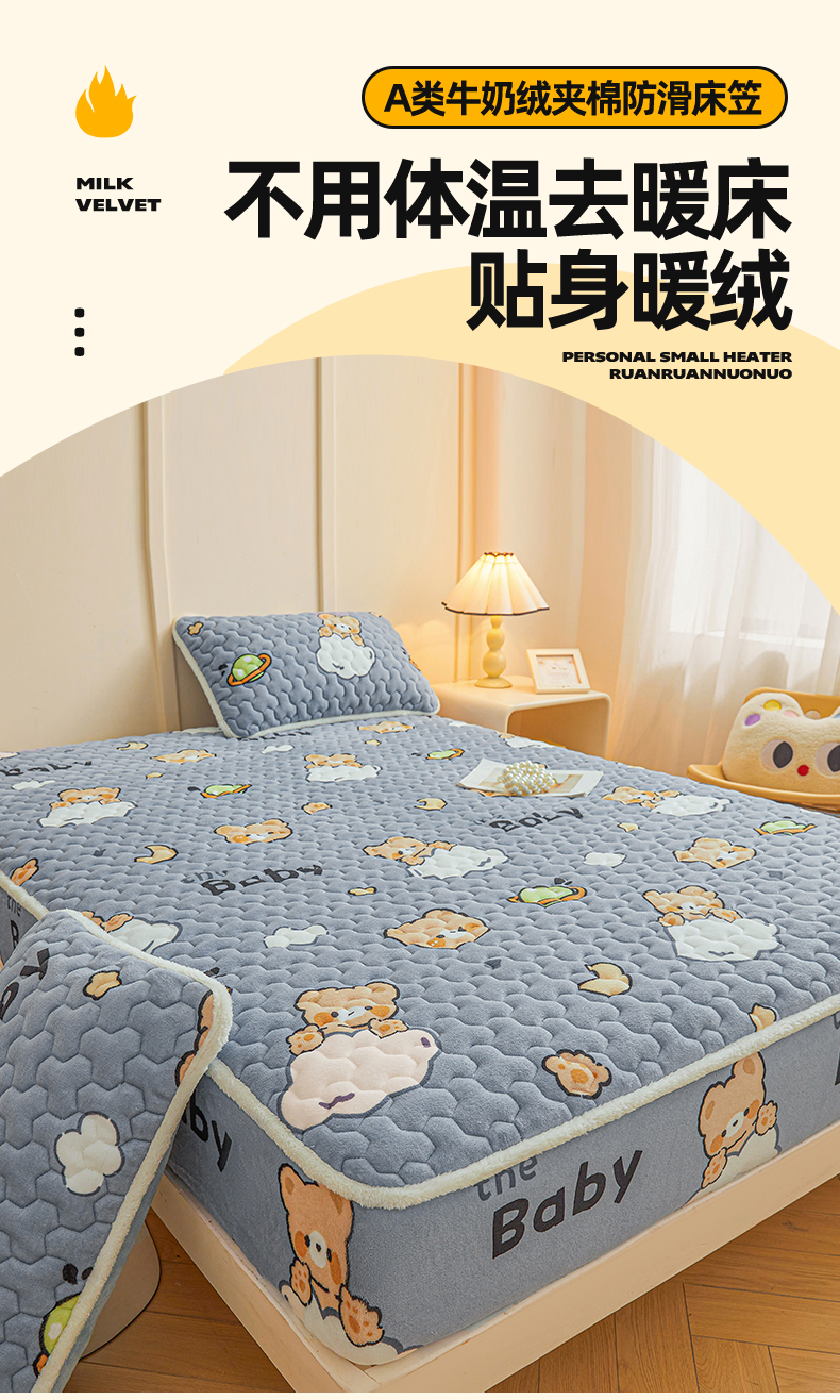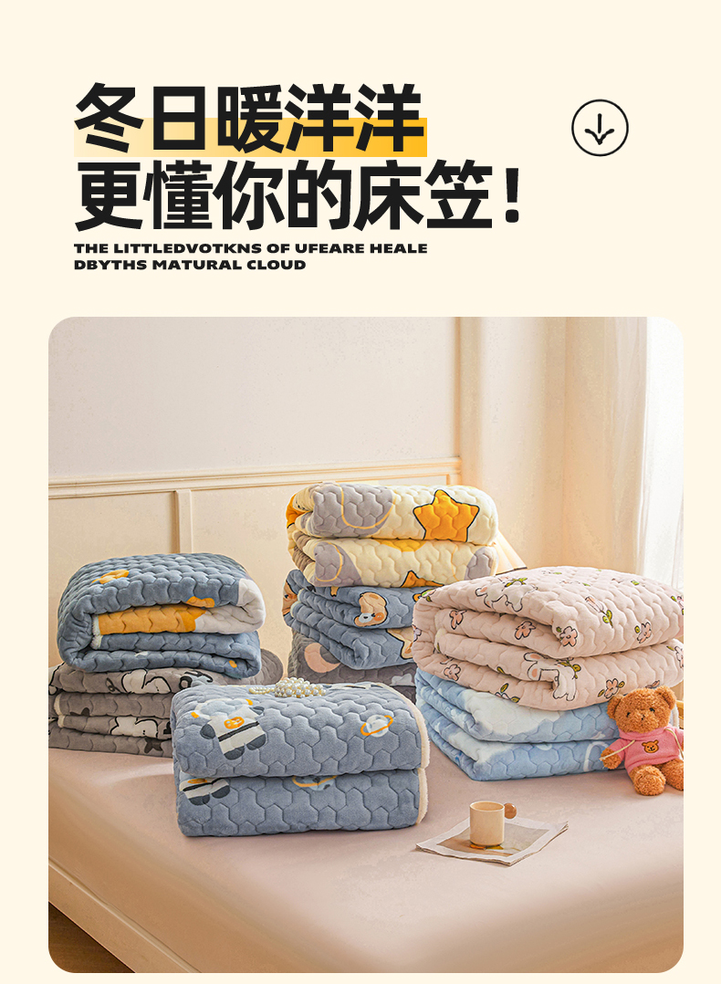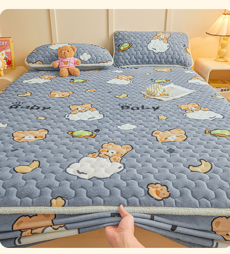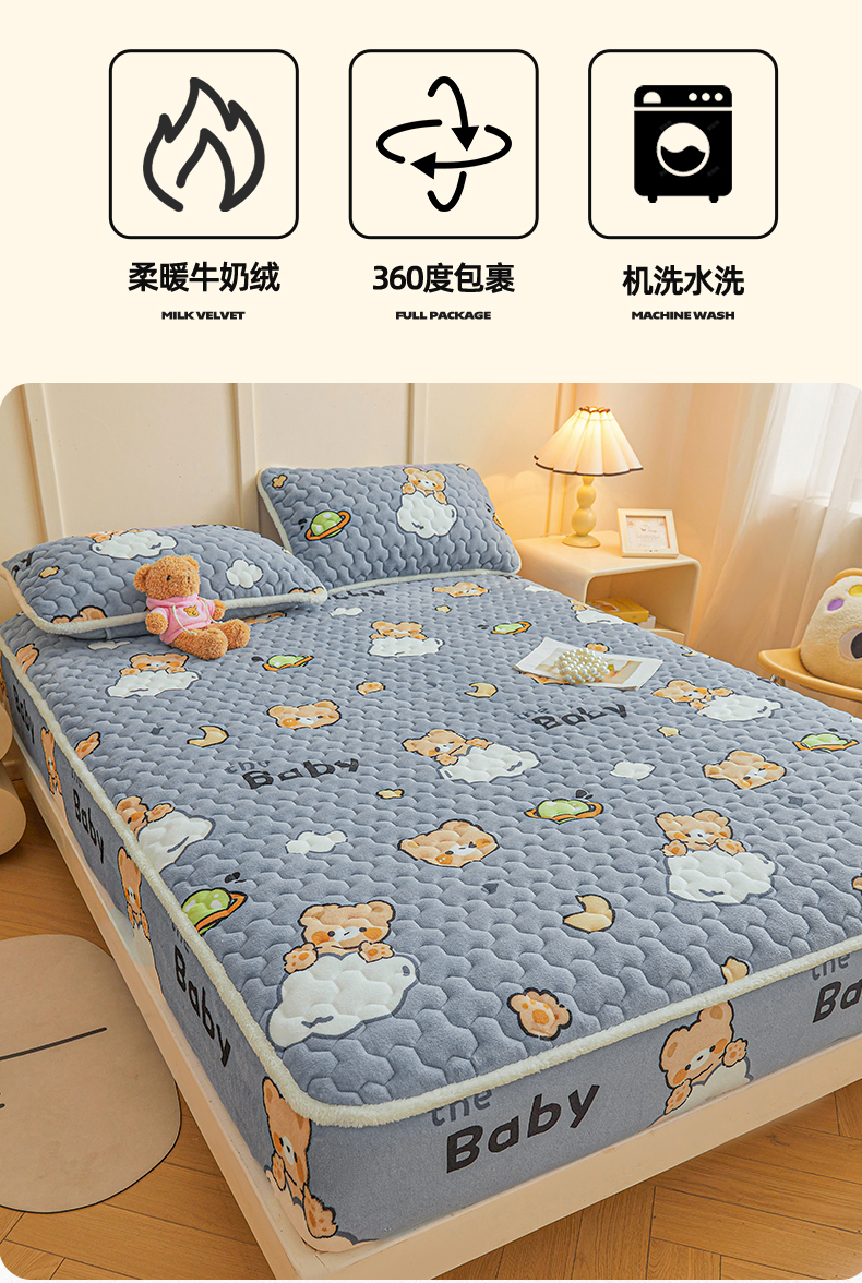 当前位置: 91家纺网 > 商品网购 > 床上用品 > 床垫套 > 雯豆家纺 2025新款牛奶绒夹棉床笠印花款床垫保护套秋冬保暖床罩 牛奶绒夹棉床笠-云朵熊