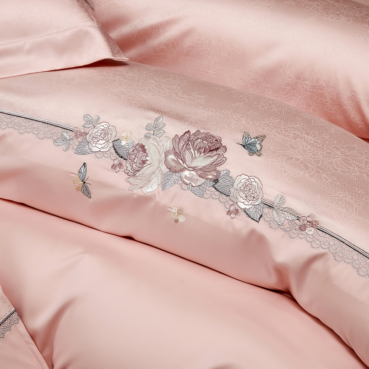 (总)U品汇 2025新款60S双股120支贡缎长绒棉提花纯棉全棉刺绣花四件套高端礼盒工艺款-夕颜