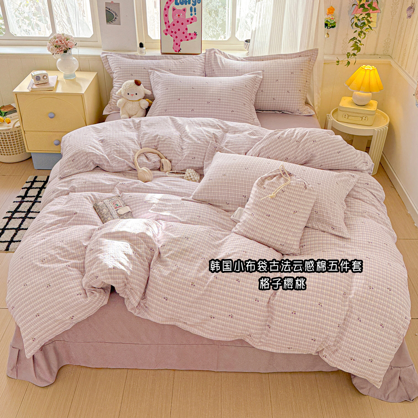 商品名称:梦莱斯 2025新款韩国小布袋古法云感棉四件套 格子樱桃