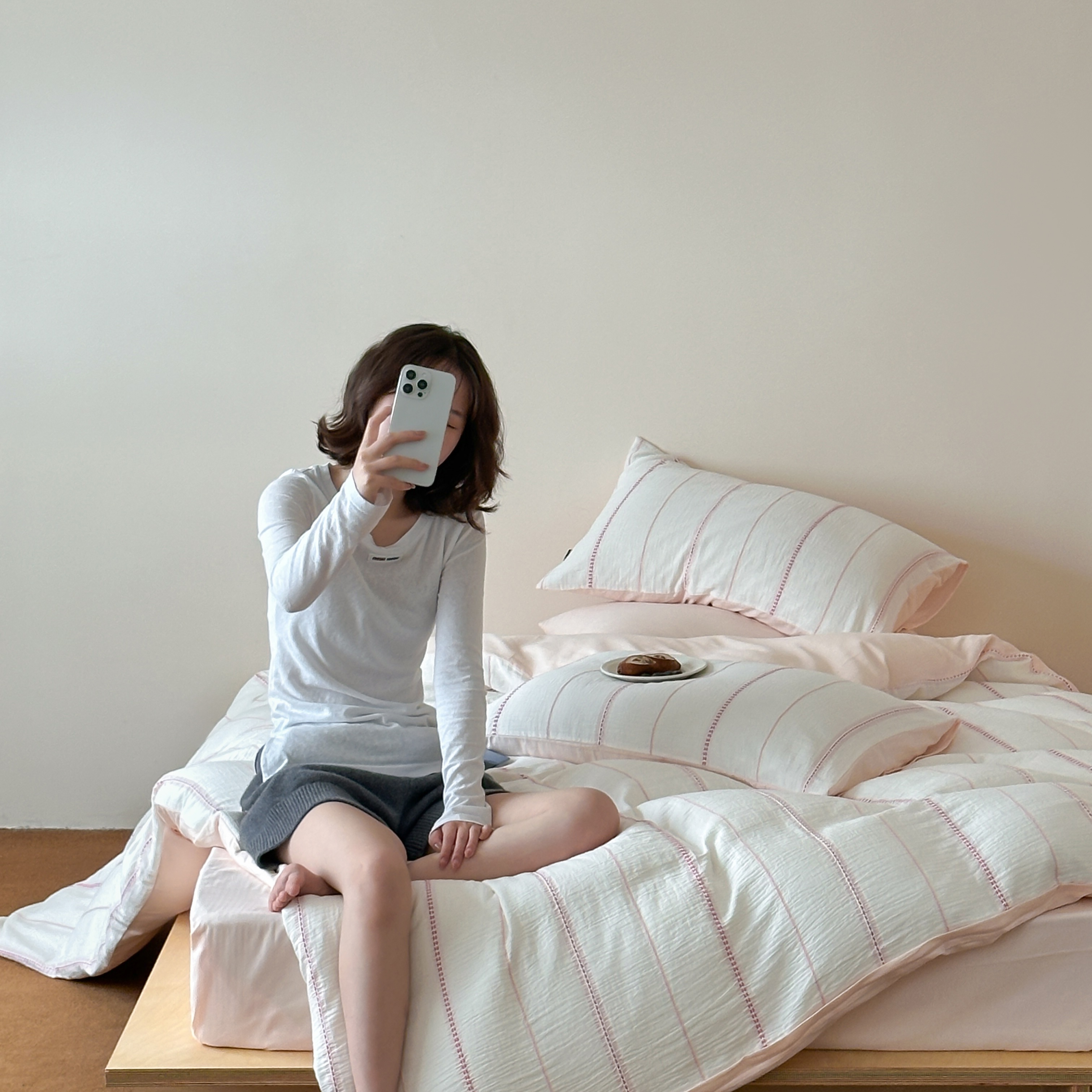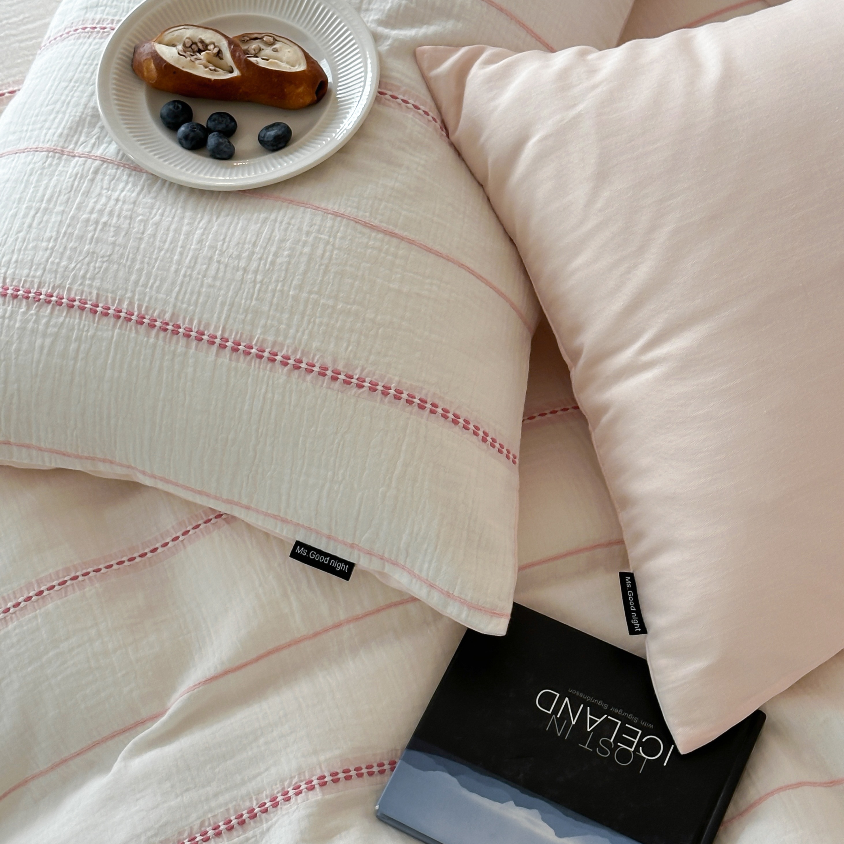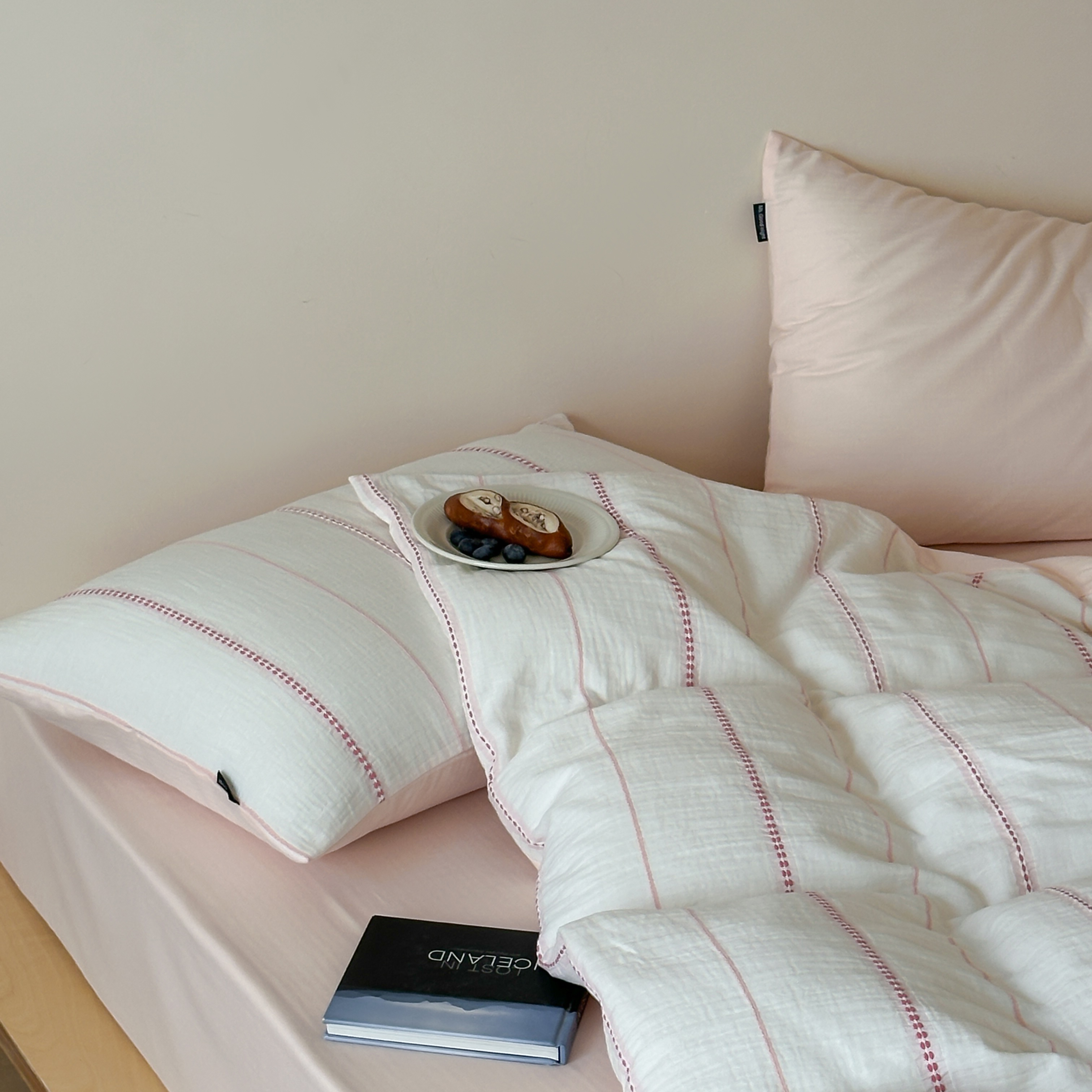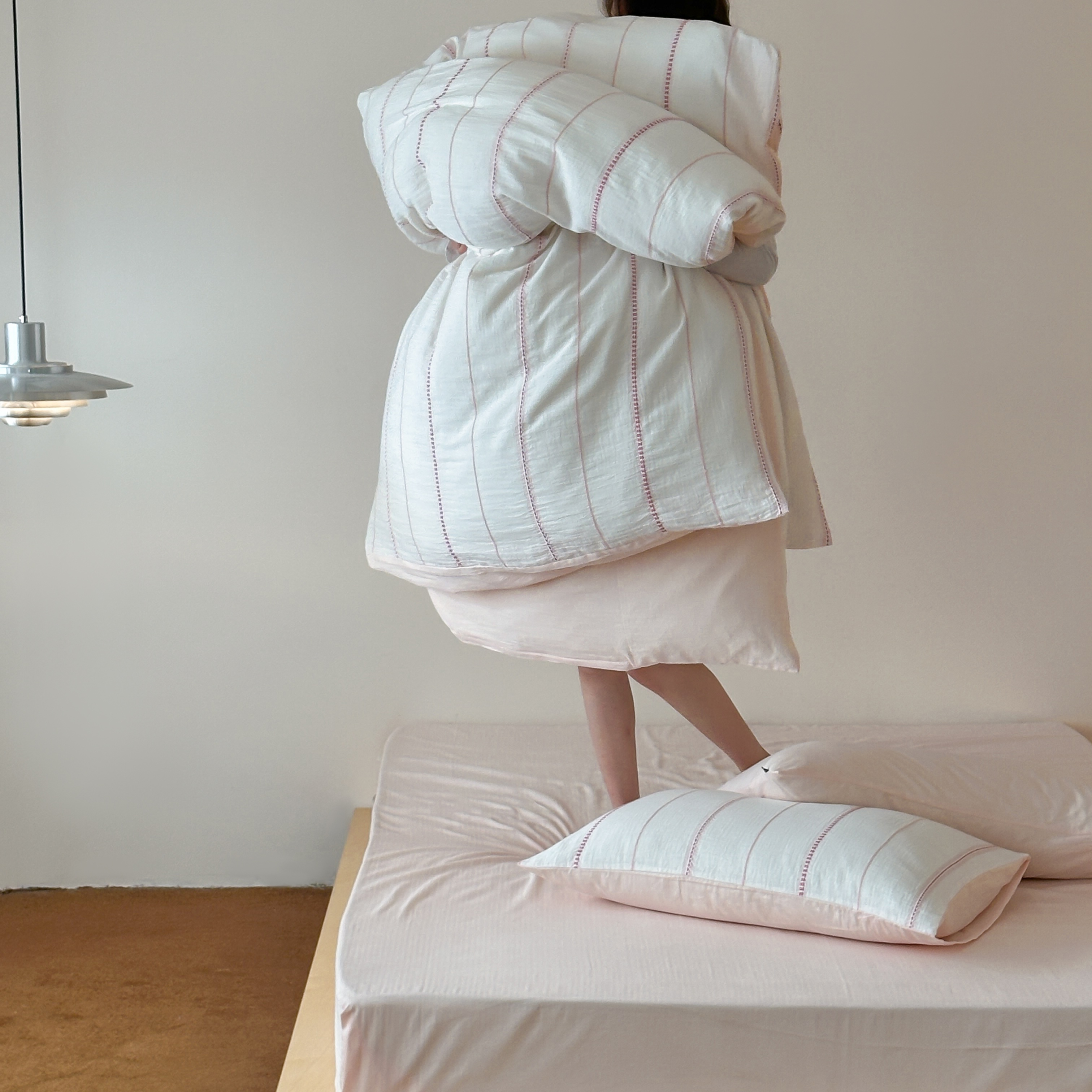 当前位置: 91家纺网 > 商品网购 > 床品套件 > 四件套 > 全棉普通四件套 > 蜜宿 2025新款全棉纯棉水洗双层纱穿线提花四件套 梨白-粉