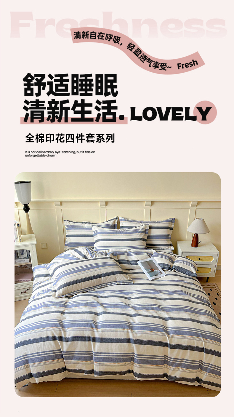 当前位置: 91家纺网 > 商品网购 > 床品套件 > 四件套 > 全棉普通四件套 > 文黛家居 2025新款全棉喷气印花全棉纯棉印花系列四件套 乐芙生活